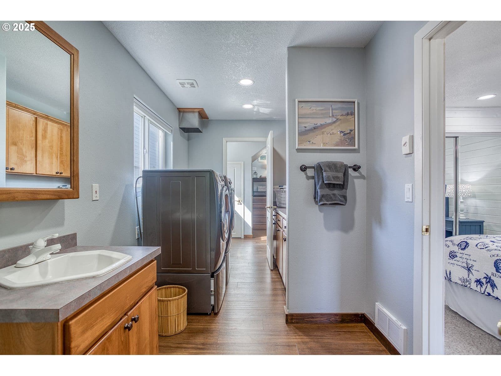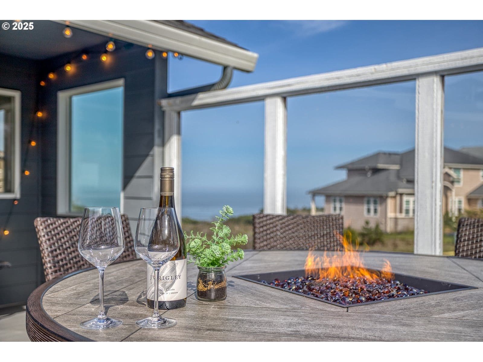 Welcome to this beautifully updated ocean-view home in Newport, where luxury meets coastal charm. Offering sweeping views of the Pacific Ocean, enjoy watching whales, fishing boats, and vibrant sunsets from this meticulously maintained 3-bedroom, 2.5-bathroom retreat. The open-concept great room is filled with natural light, featuring vaulted ceilings, skylights, and a wall of windows, all complemented by built-in surround sound speakers. Vinyl plank flooring adds both elegance and durability throughout the home, while a partially enclosed glass windbreak on the upstairs deck ensures year-round enjoyment for relaxing or entertaining. The deck is also plumbed for a gas grill, ideal for coastal dining. A chef-inspired kitchen boasts rich walnut cabinets, a convection oven and microwave, instant hot water, and a convenient pantry. The primary suite is a true sanctuary, featuring a Jacuzzi tub, walk-in closet, laundry chute to the nearby laundry room, and is plumbed for a gas fireplace, allowing you to create the ultimate retreat. Both bathrooms offer luxurious dual shower heads, elevating your everyday experience. For added convenience, this home is equipped with central vacuum, and the garage is plumbed for a gas crab pot, perfect for your coastal culinary adventures. Additional storage in the daylight basement provides ample space for all your outdoor gear, from kayaks to bicycles. With deeded beach access via the 'Beach Path,' you'll be just steps away from the stunning Yaquina Head Lighthouse. This home offers the perfect blend of comfort, luxury, and location, making it an unparalleled opportunity for oceanfront living in Newport.