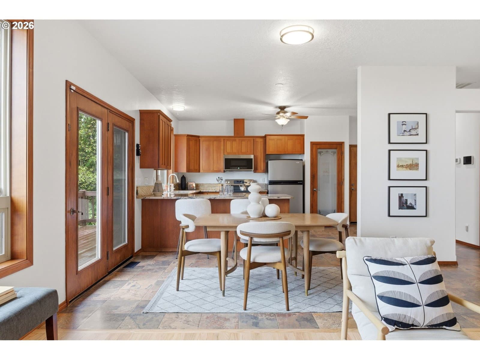 Come and live in this private retreat with spectacular territorial, river, and mountain views rain or shine. Sitting on 5 acres, with its own trail through the trees for outdoor adventures. Raised bed gardens, a fenced yard, double garage plus a detached shop with its own half bath, perfect for anyone craving a self-sufficient, outdoor lifestyle. This home offers flexible everyday living with a primary en-suite on the main level featuring a soaking tub and walk-in shower, access to the deck to enjoy the seasonal changes of the landscape. The main floor includes a well-appointed kitchen with pantry, open dining area, and access to an expansive deck, the perfect spot to take in the views over morning coffee or while entertaining. Generous natural light throughout with many living options. In the lower level, features additional 3 bedrooms, a spacious family room, and a versatile flex space ideal for a hobby and/or in-homes office. Rainier, Oregon, sits along the Columbia River, a beautiful scenic drive less than an hour from Portland, Beaverton, Hillsboro or just across the bridge from Longview giving you rural peace and an acquaintance of small-town feel.
