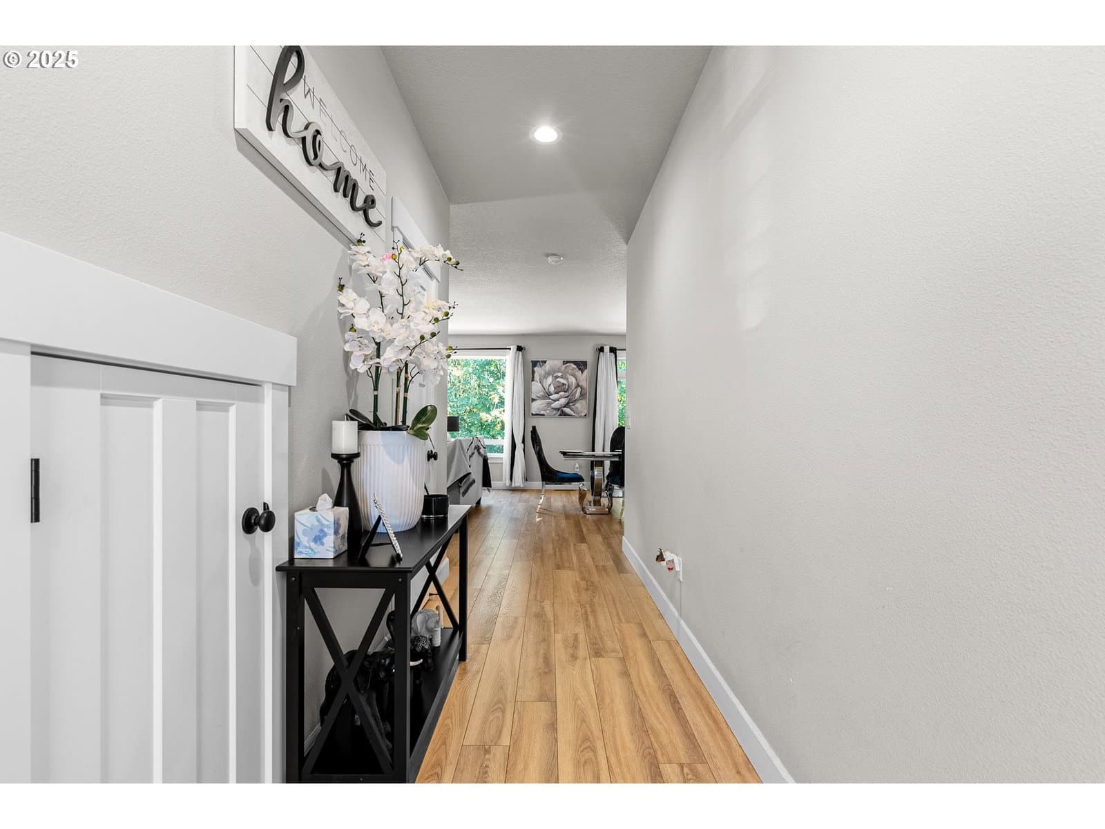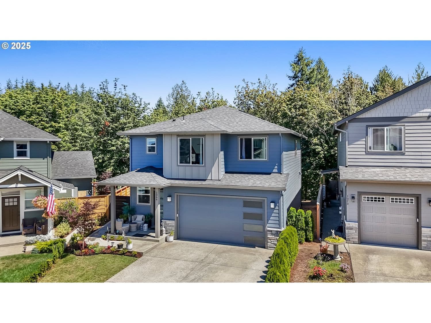 Welcome to this stunning, like-new home located in the charming town of Estacada, Oregon. With over 2,000 square feet of thoughtfully designed living space, this 4-bedroom, 2.5-bath home offers the perfect blend of modern comfort and small-town charm. Step inside to a bright, open floor plan featuring a stylish modern flooring throughout the main level. The spacious living area centers around a cozy propane fireplace, ideal for cool Oregon evenings. The large kitchen is a chef’s dream—complete with a generous island, pantry, sleek countertops, and ample cabinetry. A convenient half bath on the main level adds functionality for guests. Upstairs, you’ll find a spacious primary suite featuring vaulted ceilings, dual vanities (his & hers sinks), a walk-in closet, and plenty of natural light. Also on the upper level is a dedicated laundry room, three additional generously sized bedrooms, and a full second bath. Enjoy outdoor living year-round with a covered patio overlooking the oversized lot. The fully fenced backyard offers privacy, room to garden, entertain, or just let pets and kids play freely. Located in Estacada, you'll love the peaceful, scenic setting while still enjoying convenient access to shopping, dining, and outdoor recreation. Nestled at the gateway to the Mount Hood National Forest, Estacada is known for its strong community spirit, arts scene, and endless opportunities for hiking, kayaking, and exploring the Clackamas River. Don’t miss your chance to own this modern gem in one of Oregon’s most inviting small towns!