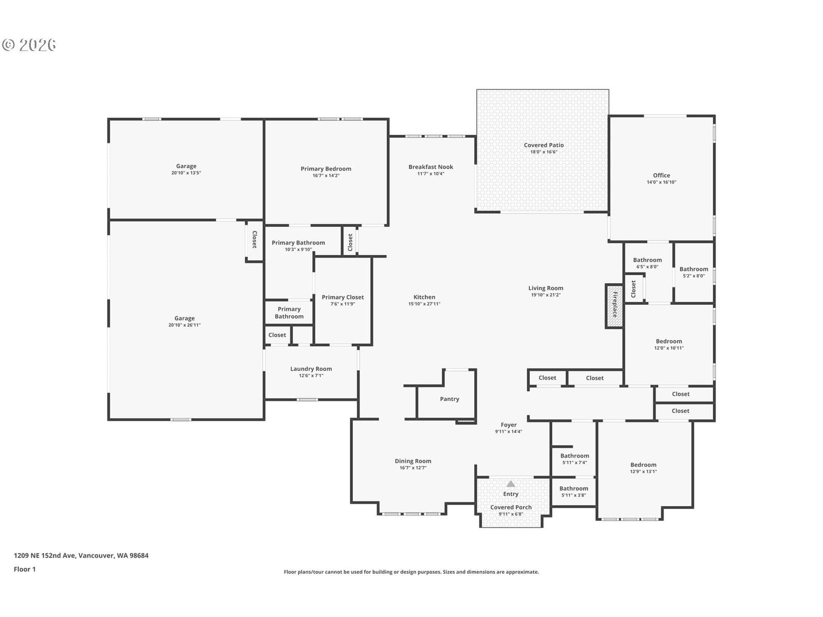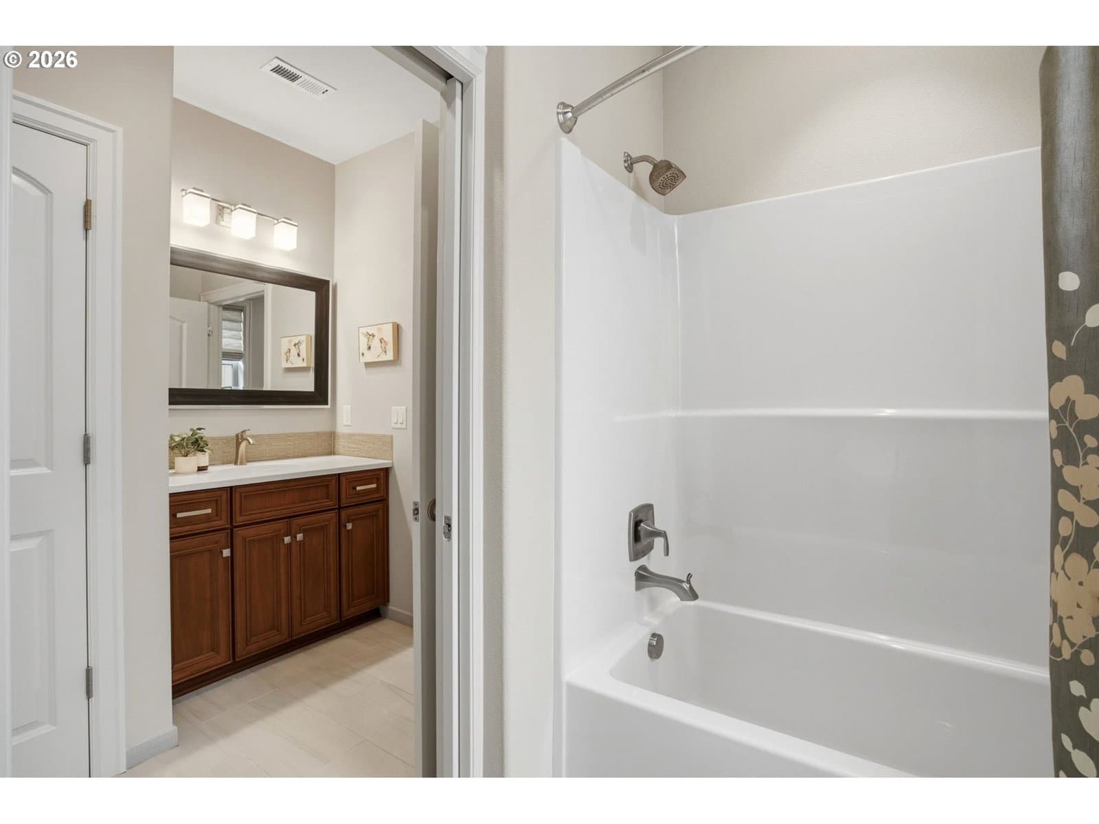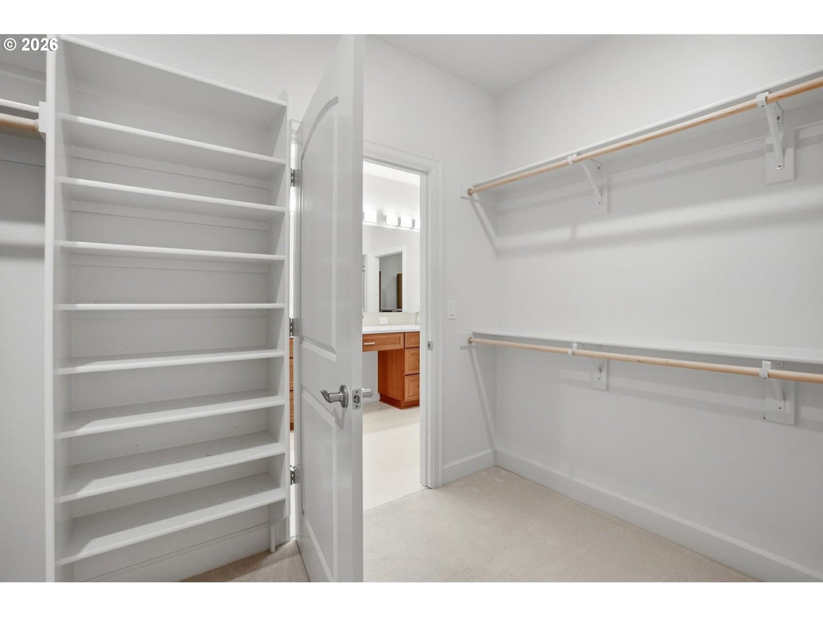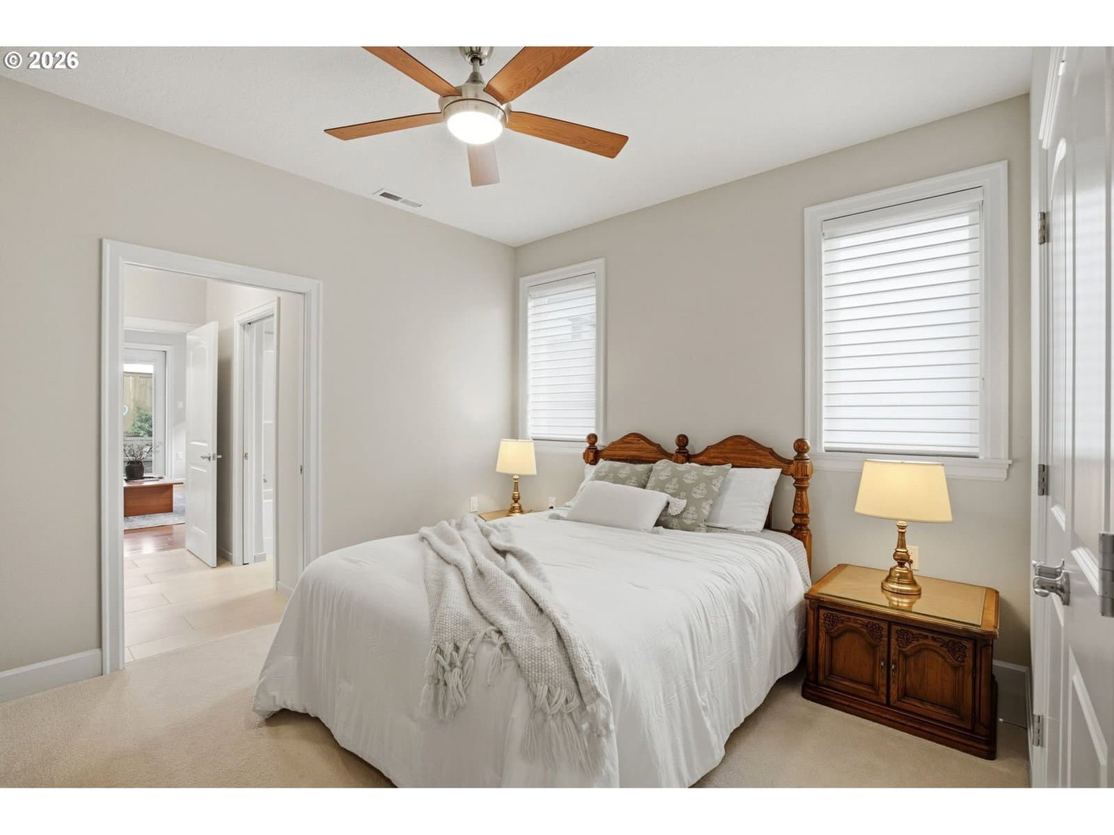 No-step home! This custom built one owner single-story in popular First Place is tailored for aging in place. Experience refined living with exceptional functionality. 3 BD + office + 3 full BA. Designed for gathering, the spacious great room and well-appointed kitchen feature an impressive island that becomes the natural centerpiece of the home. The split bedroom layout provides separation between the primary suite and secondary bedrooms for increased privacy and quieter living spaces. Bdrm 2 has full bath just down the hall; bdrm 3 has adjoining full bath. Additional accessibility features include wide hallway, wide entrances, extra wide doors, roll in shower in primary, walk-in shower in hall bathroom. All rooms are large with most closets having motion sensor lighting including the walk-in pantry. Solar tubes bring in bright, diffused natural lighting. More highlights include: heated floors in primary bathroom, huge primary walk-in closet, generously sized laundry, slab granite and quartz, soft-close drawers/cabinets, two tankless water heaters, impeccable 3/4” hardwood flooring, abundant storage/closet space, built-in features, high ceilings, butlers pantry, under cabinet lighting, under eve lighting. Office/den with custom full-wall built-in desk designed for two. The large covered patio has remote/motorized shades, wood slat vaulted ceiling, skylights, fans, heaters and built-in fire pit (gas). Also featuring an outdoor entertaining station with built-in BBQ (propane), prep space, storage plus under counter refrigerator. 3 car garage with storage cabinets. Kitchen/patio refrigerators stay, Sonos sound system in great room included, 1-year home warranty included. Near the 3.5 acre neighborhood park featuring paved paths, benches, garden, gazebo, playground and open grass area. There are numerous resident-focused activities too. Conveniently located near groceries, restaurants, medical facilities, vet and easy access to I-205. Truly a standout home!