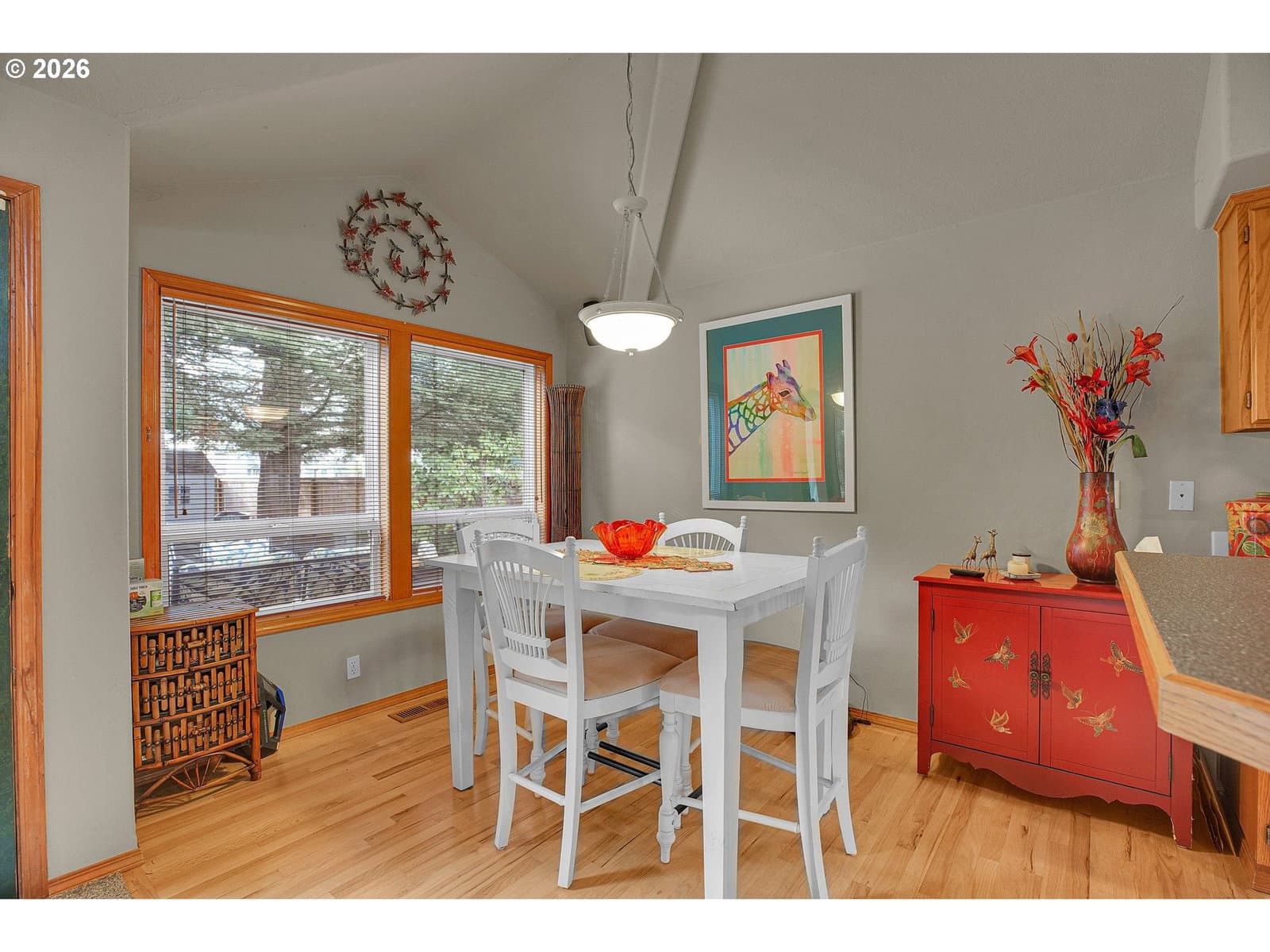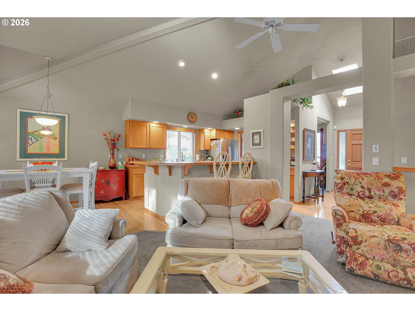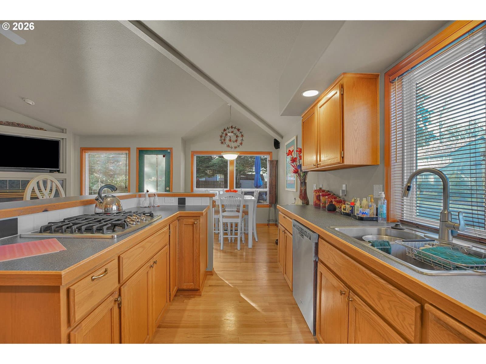 Welcome to this beautifully crafted one-level home, thoughtfully designed with comfort in mind. Recent updates include a newer roof (2019), furnace, hot water heater and recent exterior and interior paint. The kitchen offers both style and functionality with a large kitchen island and built-in appliances. The rooflines create vaulted ceilings, and large, high-quality double-pane windows fill the home with natural light. The sizeable, deep backyard is perfect for gatherings, featuring a large patio and a newer storage shed. Located in a welcoming neighborhood with wide streets, this home blends small-community allure with easy access to all of Hillsboro. Close by, you will find Noble Woods Park, a 40-acre natural oasis with paved trails, forests, and plenty of wildlife. Nearby you will find top employers, shopping, restaurants, and all Hillsboro has to offer. Asking for highest and best offer by February 9 at 1 PM. [Home Energy Score = 7. HES Report at https://rpt.greenbuildingregistry.com/hes/OR10244215]