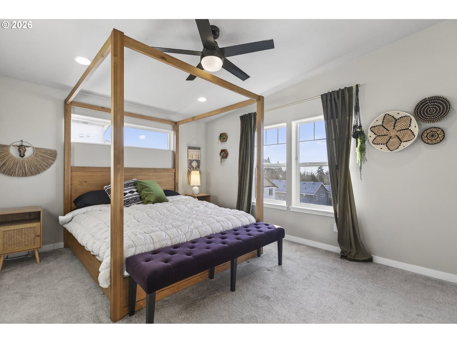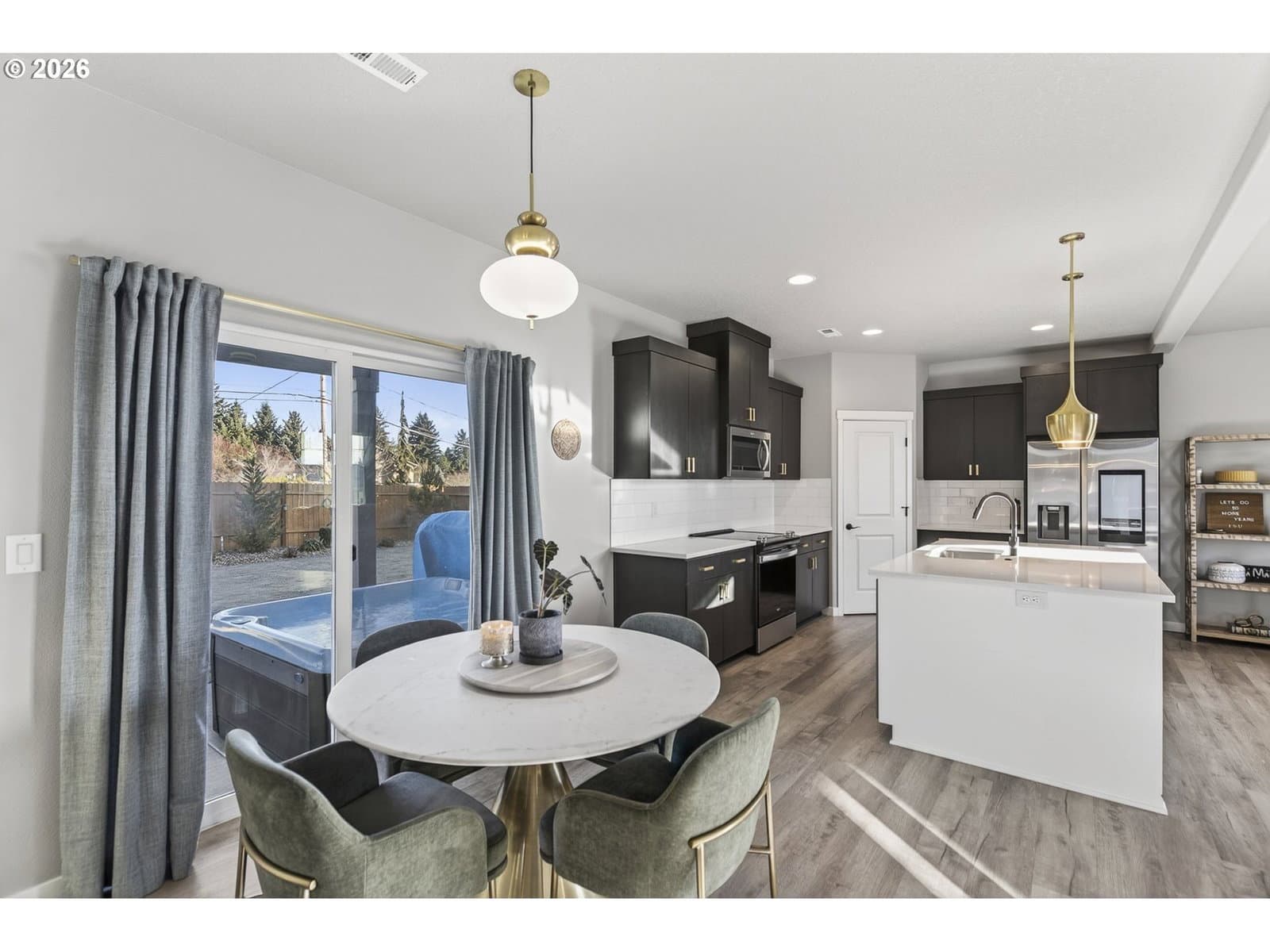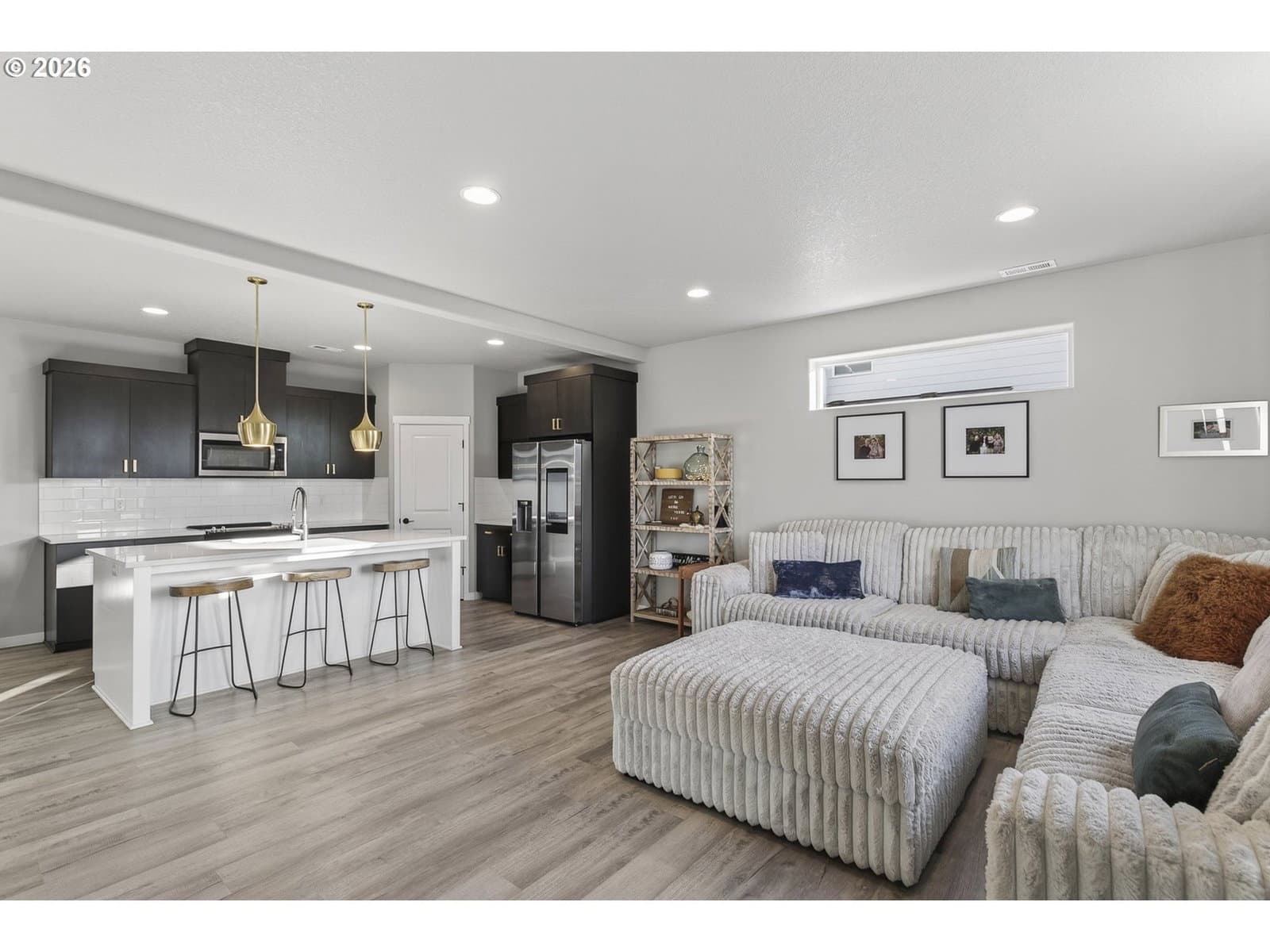 MOVE_IN READY!! Contemporary 3-bedroom, 2.5-bath home featuring an open-concept floor plan designed for modern living. The spacious great room is filled with natural light and anchored by a sleek electric fireplace. The main level also offers a dedicated office—ideal for remote work or flex space. The gourmet kitchen has stainless steel appliances, quartz countertops, tile backsplash, a large island with eating bar, and a generous pantry. The primary suite is a true retreat, complete with a walk-in closet and ensuite bath featuring a walk-in shower, dual sinks, and quartz counters.The oversized garage includes approximately 74 square feet of flexible space—perfect for a wine cellar, workout room, additional storage, or hobby area—plus an additional under-stair storage room. PLUS electric car charger that is all ready to go! Outside, enjoy a fully landscaped and fully fenced backyard with a covered patio, ideal for year-round entertaining.