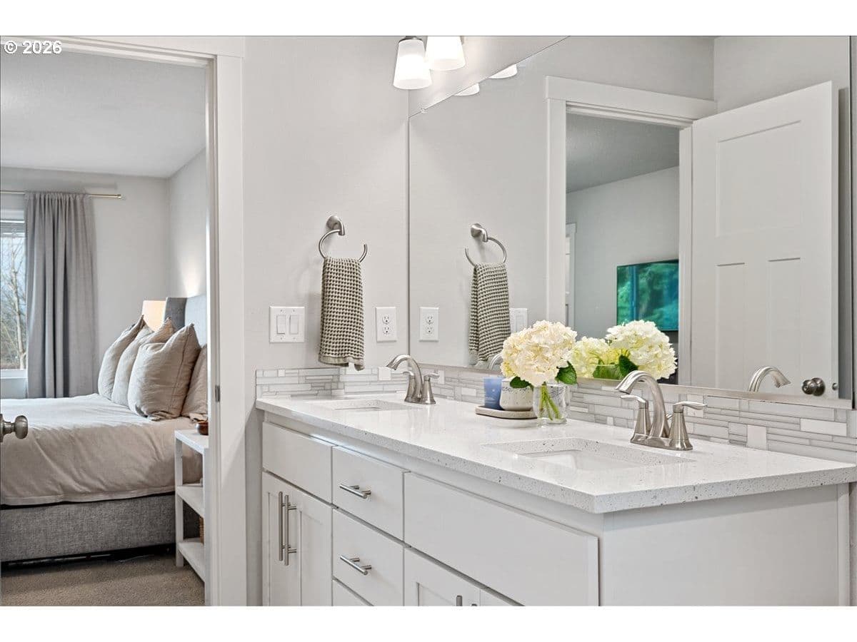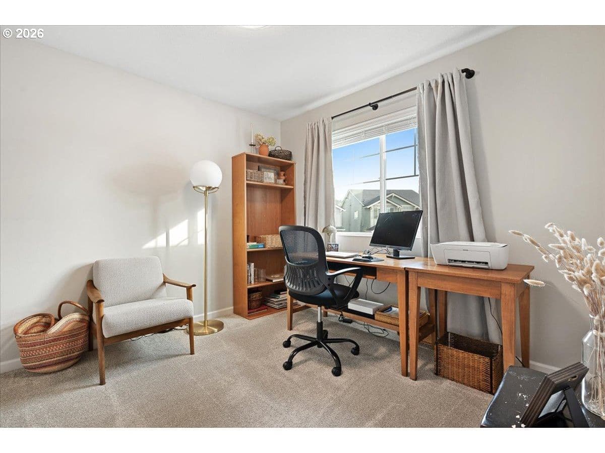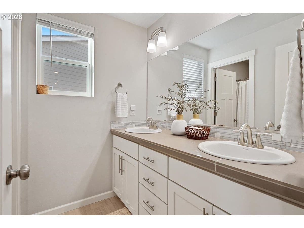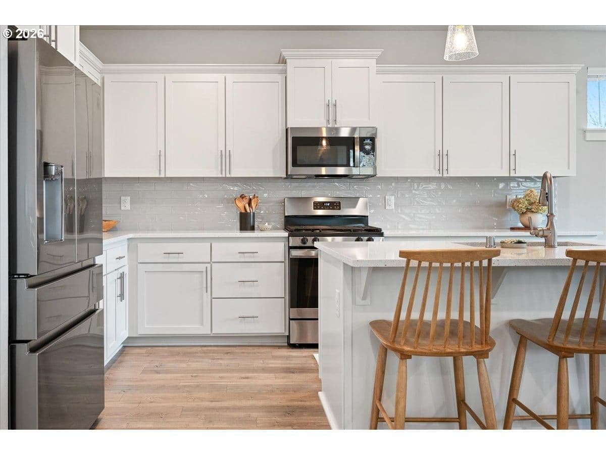 Here it is, that perfect combination you’ve been searching for! Eye catching street appeal with craftsman designs including exterior shutters, decorative pillars, grid style windows, shaker doors, gable brackets and distinct siding details. And it’s located on a premium lot in a cul-de-sac that backs up to a wetland buffer/ green space so there is a nice peaceful view to enjoy all the time! Amazing open and light great room with large dining area, ideal for comfort and gatherings. Like to cook? This kitchen is a dream, ample countertop space with a huge island perfect for food prep, serving and a perfect breakfast eating bar. There’s also a wonderful pantry and gas range too! All bedrooms are generous in size and there’s a great nook in the entry designed as a small work space/ office or can be used as a coat and shoe landing area. Primary suite also views the green space and has a large bathroom and walk in closet. Other upgrades include: stylish and practical laminate flooring through out main floor, beautiful quartz countertops in kitchen and primary bathroom, dual sinks in both upstairs baths, subway tile backsplash in kitchen, attractive tile floors in baths and laundry room, hi-efficiency gas furnace and central AC, tankless hot water heater and a gas fireplace with tile & mantle. Enjoy the privacy and easy maintenance in the fenced backyard with the patio, in-ground sprinklers, a variety of perennials and a couple of raised garden beds. HOA includes walking trails, recreational park, basketball court, outdoor pool/ hot tub and BBQ area. This home is just inside the Evergreen School District but many residents get a Camas School boundary exception, it’s located near the bus stop for both districts. Refrigerator and Ring doorbell are included!