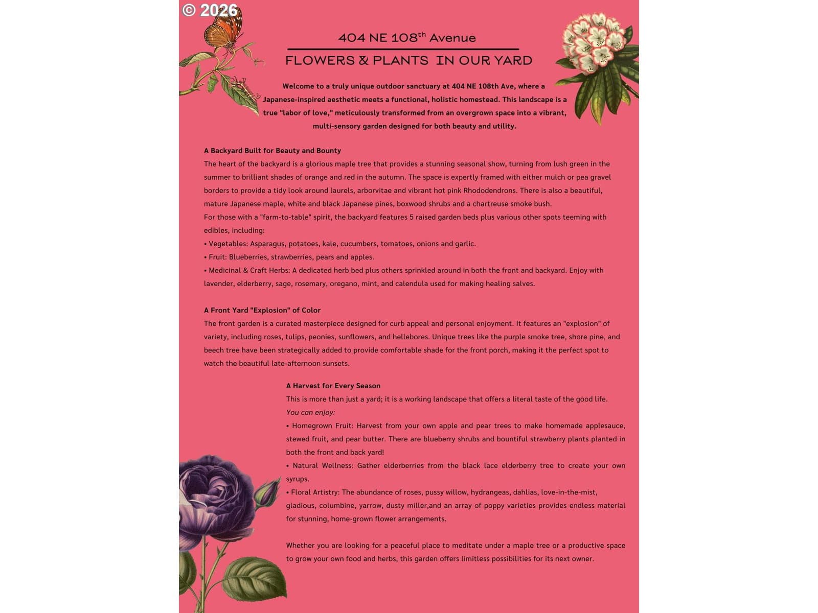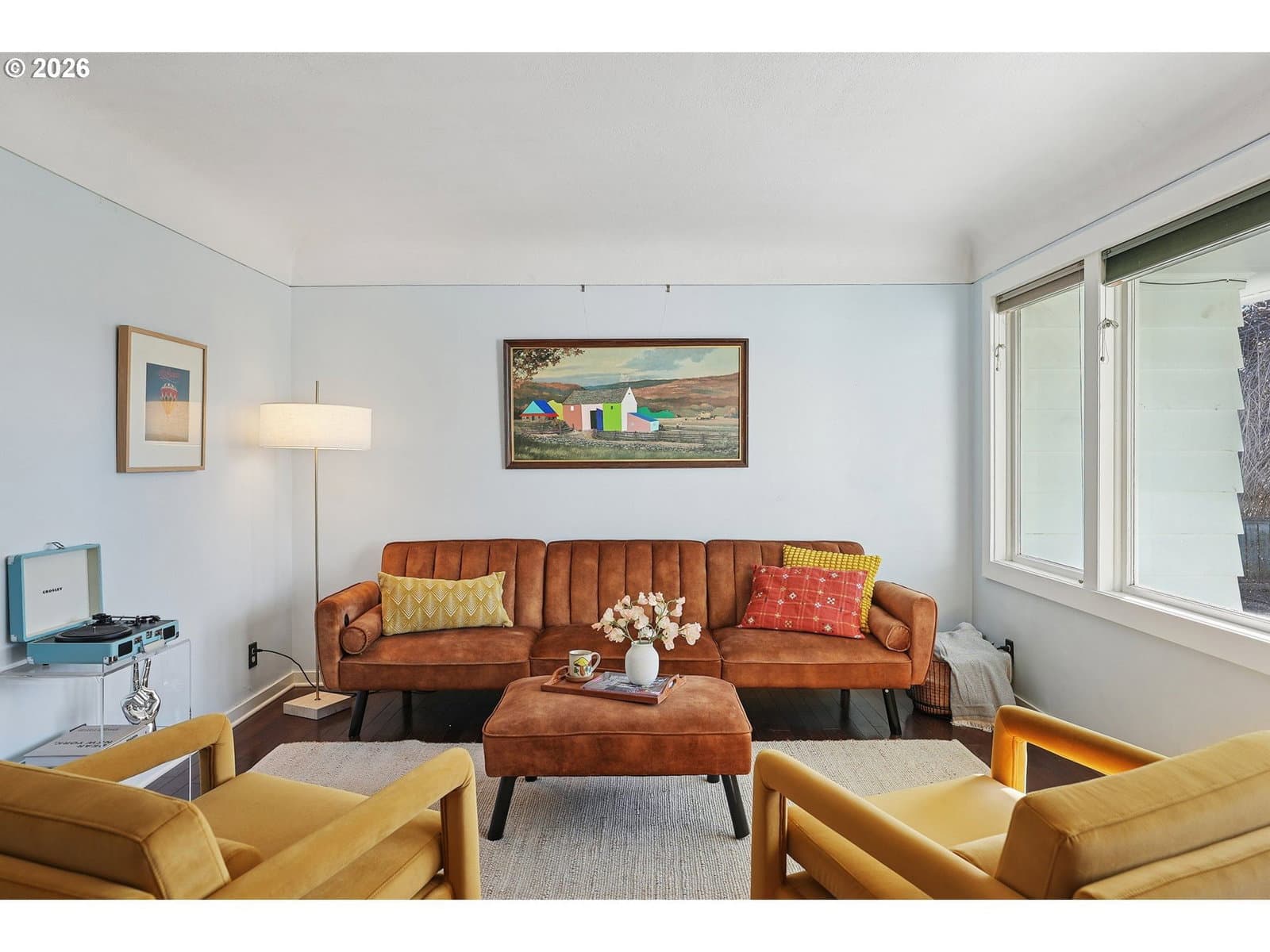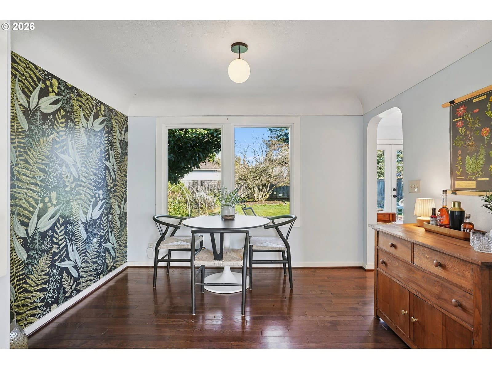This light and bright well-maintained home is a gem, offering mid-century vibes, as well as modern updates throughout. This house is a perfect place for those who are looking for a peaceful retreat and who also love to entertain. The layout flows nicely, with the two bedrooms & updated bathroom to one side of the living room and the formal dining room, eat-in kitchen, and multi-use laundry/office that leads in to the garage on the other. Double French doors lead from the kitchen to a spacious deck and the meticulously landscaped fully fenced oversized lot. The yard is filled with carefully planted edibles in raised beds and is brimming with flowers and native plants, as well as pear and apple trees in the front yard. The backyard also offers a detached workshop that can be used as an office, workout room, music or art studio or for anything else your heart desires. Storage abounds with spacious closets & built-ins, as well as a generously-sized loft in the attached garage. RV parking, central AC, a welcoming front patio, fresh interior paint throughout, a new electrical panel and water heater, & a freshly updated crawlspace, coupled with vintage features like coved ceilings, picture rail, & large picture windows make this house a truly rare find! With proximity to major buslines, MAX, the transit center, as well as 205 & 84, commuting is an absolute dream, no matter what your preferred mode of transportation is. Open House Tues 3/10 11-1 PM! [Home Energy Score = 4. HES Report at https://rpt.greenbuildingregistry.com/hes/OR10020374]