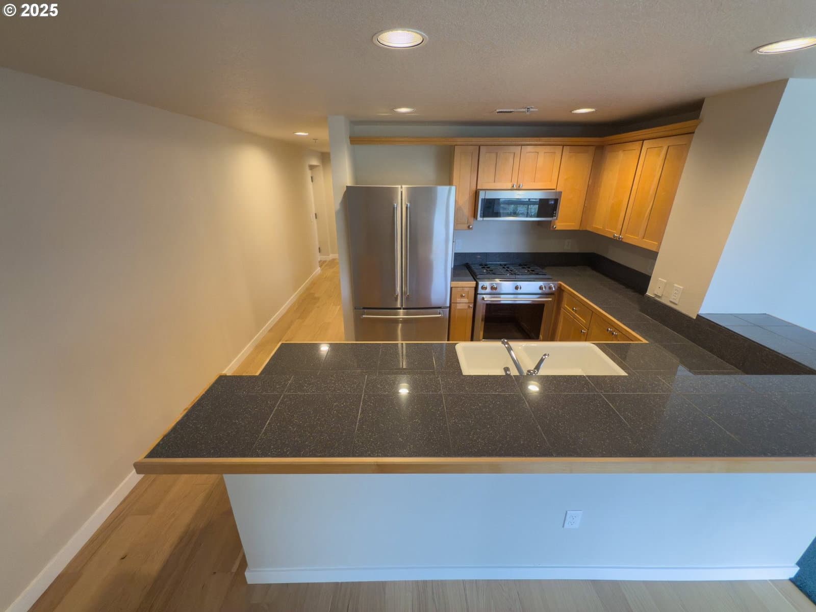 Amazing location in the heart of NW 23rd area walking district. One-level with condo entrance from attached garage. Great layout with high ceilings, two bedroom suites, gas fireplace, and balcony. Newer flooring, furnace, kitchen appliances, washer/dryer. Dedicated parking space included in attached garage. Nice neighborhood near many restaurants & shops. One block from Legacy Good Samaritan Medical Center.
