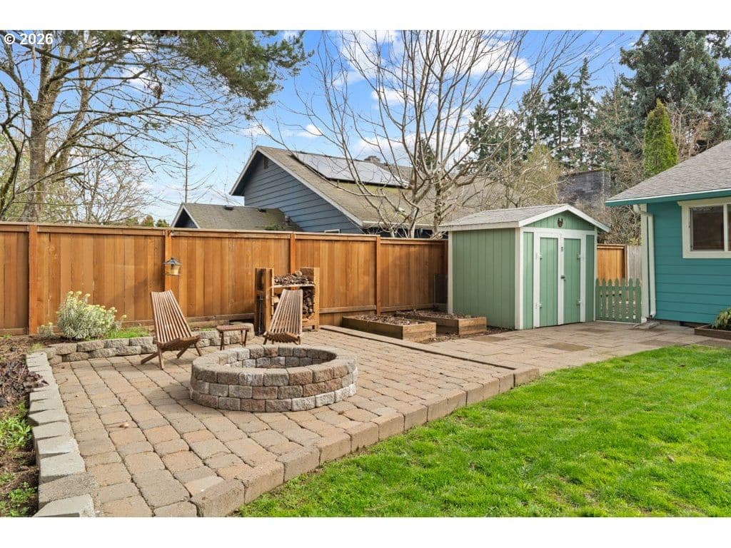 Well cared for, single-level 3 bedroom, 2 full bath home with thoughtful updates throughout. The open kitchen features wood cabinetry, solid granite countertops, an island, and stainless steel appliances, and flows directly into the dining room, which includes French doors opening to the backyard. The primary suite was recently painted, and both bathrooms were fully remodeled in 2023 with updated tile work, vanities, fixtures, and plumbing. Light-toned engineered hardwood flooring was installed in 2023 throughout the main living areas, while all three bedrooms feature brand new carpet. The spacious living room offers a gas fireplace with reclaimed wood surround and built-ins, and a separate family room includes a wood-burning fireplace and French doors to the backyard. The large, fully fenced backyard is well suited for entertaining and everyday use, with a newer fence, deck and pergola covered in clematis, hot tub patio, fire pit area, lawn, shed, and gated RV parking. Exterior was repainted in 2025, and the home includes fully paid-for solar panels for energy efficiency and long-term savings.