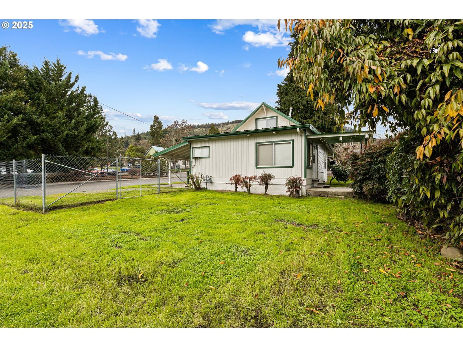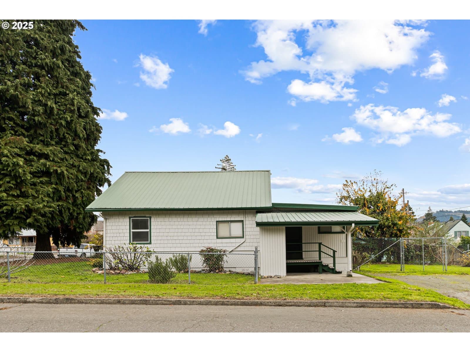 Welcome to 331 NE Laurel Ave in the heart of Myrtle Creek, OR — a charming home on a spacious corner lot. Fresh interior and exterior paint, classic shingle-style siding, and a sturdy metal roof give this property a crisp, welcoming look from the moment you arrive. Thoughtful updates blend seamlessly with original character, creating a warm and comfortable place to call home. Inside, the living room showcases beautiful original wood floors and a striking tongue-and-groove wood ceiling that adds warmth and personality. A ceiling fan provides comfort, and a door leading to the covered back patio makes the room ideal for relaxing or entertaining. The kitchen features new flex-laminate flooring, abundant cabinetry, a pantry, a gas range with hood, a refrigerator, and a charming built-in aluminum-foil holder with a cutter — a unique and functional vintage touch. Brand-new carpet extends through the hallway and both main-level bedrooms, each offering cozy space and closets, plus convenient hallway storage. The bathroom is generously sized with a tub/shower combo, and just outside is a spacious laundry room with built-in cabinetry and under-stair storage for added functionality. Upstairs, the third bedroom offers great flexibility for sleeping space, an office, hobbies, or more, and includes its own closet. The home also features a newer electrical panel. Outdoors, enjoy a large fully fenced yard with room for potential RV parking, gardening, play, or pets. Mature shade and fruit trees add beauty and seasonal interest to the yard. A covered front porch and a tool shed provide additional comfort and storage. For peace of mind, the seller is offering a 1-year home warranty for the buyer through Fidelity National Home Warranty with an acceptable offer. With its blend of character, updates, and inviting outdoor space, this delightful property offers a wonderful opportunity for comfortable living in a convenient location — don’t miss your chance to make it yours.