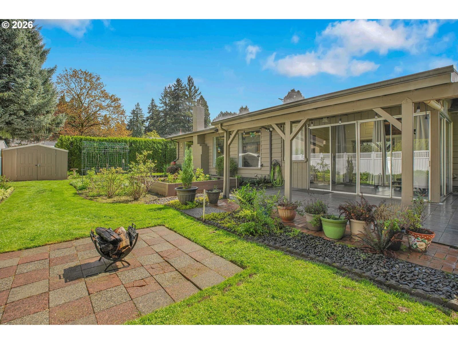 Lovely find nestled in the Darlington subdivision where Oregon's neighborly roots flourish. Over 3100 sf of mid-century construction and integrity with tasteful modernization throughout. Beamed ceiling, gorgeous wood flooring and tons of natural light will just welcome and draw you in. Main level has two family/living spaces, a dining and an exercise room with a gas and also a wood burning fireplace. Rest easy under the five year old roof. There are two water heaters (2025), furnace/AC and electrical panel replaced (2013). All main level windows/doors are protected by Seller owned ADT alarm system. And...for that rare winter storm, home has its own standby generator. Basement has been remodeled to offer an exceptionally nice 2 bedroom/ 1 bath apartment and/or multi-generational living. A large storage room is a real bonus feature. Area has a full kitchen and its own washer/dryer. Note too, the wood burning fireplace for added cozy warmth. Private entrance. Seller rented for $1650 monthly. Now...the backyard! You will find many uses for the well built 12X19 shop. It is fitted with an AC window unit, 110V and the building is alarm protected. Utility shed also has 110V. Next to the shop make use of the 6'8" X 12' RV pad with an extra 12' of toy space. The patio area is flanked by raised beds filled with potatoes, tomatoes, rhubarb, strawberries and lettuce. Enjoy the blueberries and raspberries too! Plumbed for gas BBQ set-up. City says okay to build a 500SF ADU. "Buyer must perform own due diligence." The front yard is fenced and gracefully wraps around this corner lot. It is wonderfully pleasing to the eyes with its flowering plants and shrubs enhanced with a healthy green lawn.Seller created additional off road parking allowing for up to twelve total parking spots for personal/guest use.There is true value in this gorgeous home and it is absolutely a "must visit right away" property!