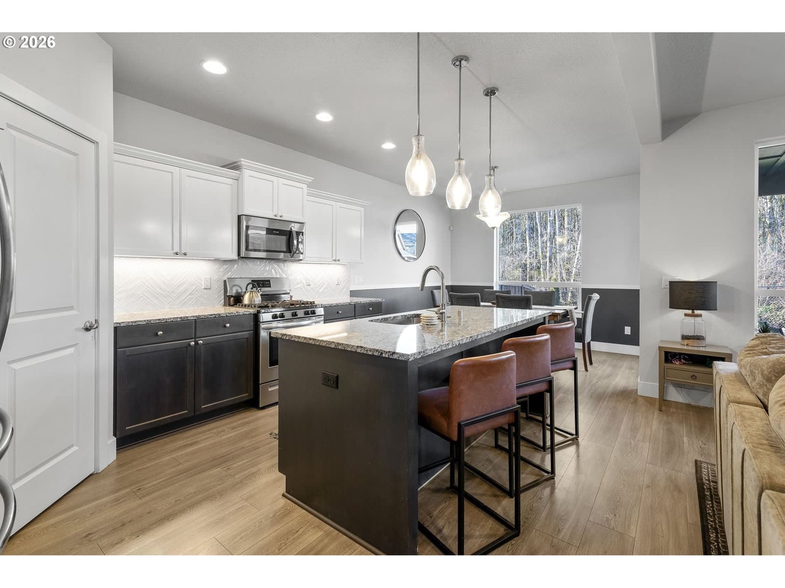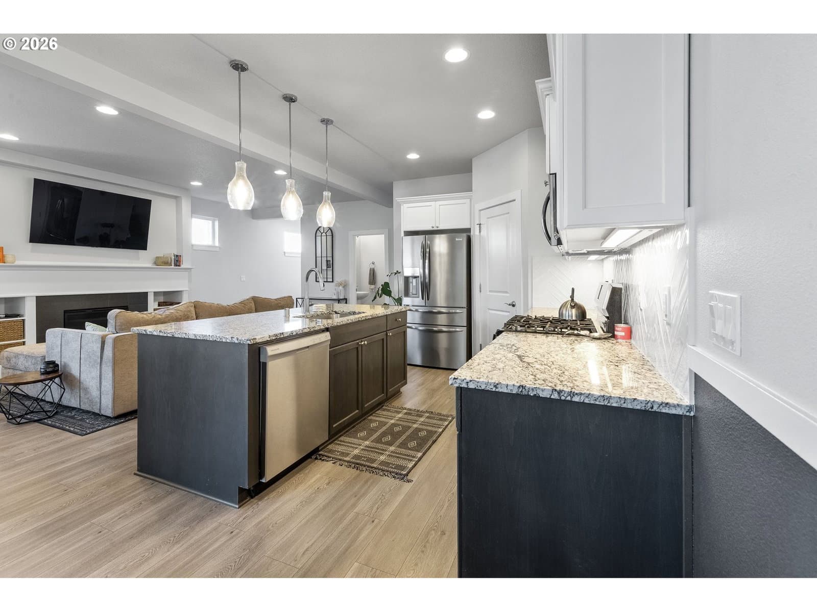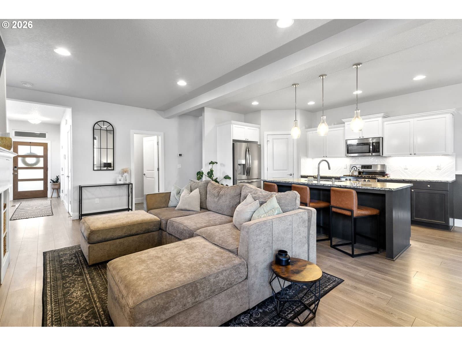 “GOOD AS NEW” HOME ON GREENSPACE. 3 bedrooms + loft, 2 1/2 bathrooms, 1831 sqft, built in 2020. Quality finishes throughout the home including 9’ ceilings & laminate flooring throughout the main floor. Kitchen has a corner pantry, gas range & large granite island w/ eating bar that opens to the dining area and great room w/ gas fireplace. Upstairs has a large loft/bonus area, laundry room & all bedrooms. Primary bedroom is good sized w/ a walk-in closet, 2 sinks & glass shower. Covered back patio overlooks the fenced yard and greenspace. Walking trails that connect to the new Ridgefield shops, restaurants & amenities are right by the home. This is a great property in the desirable Heron Woods community.