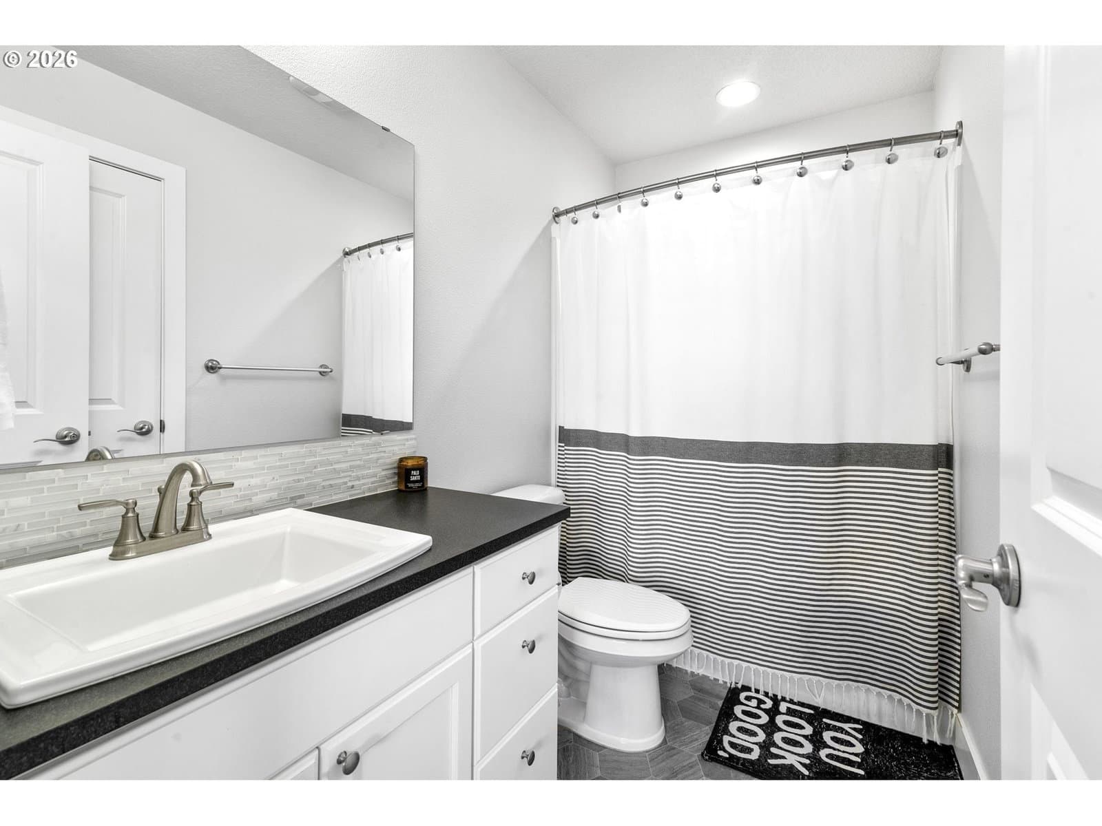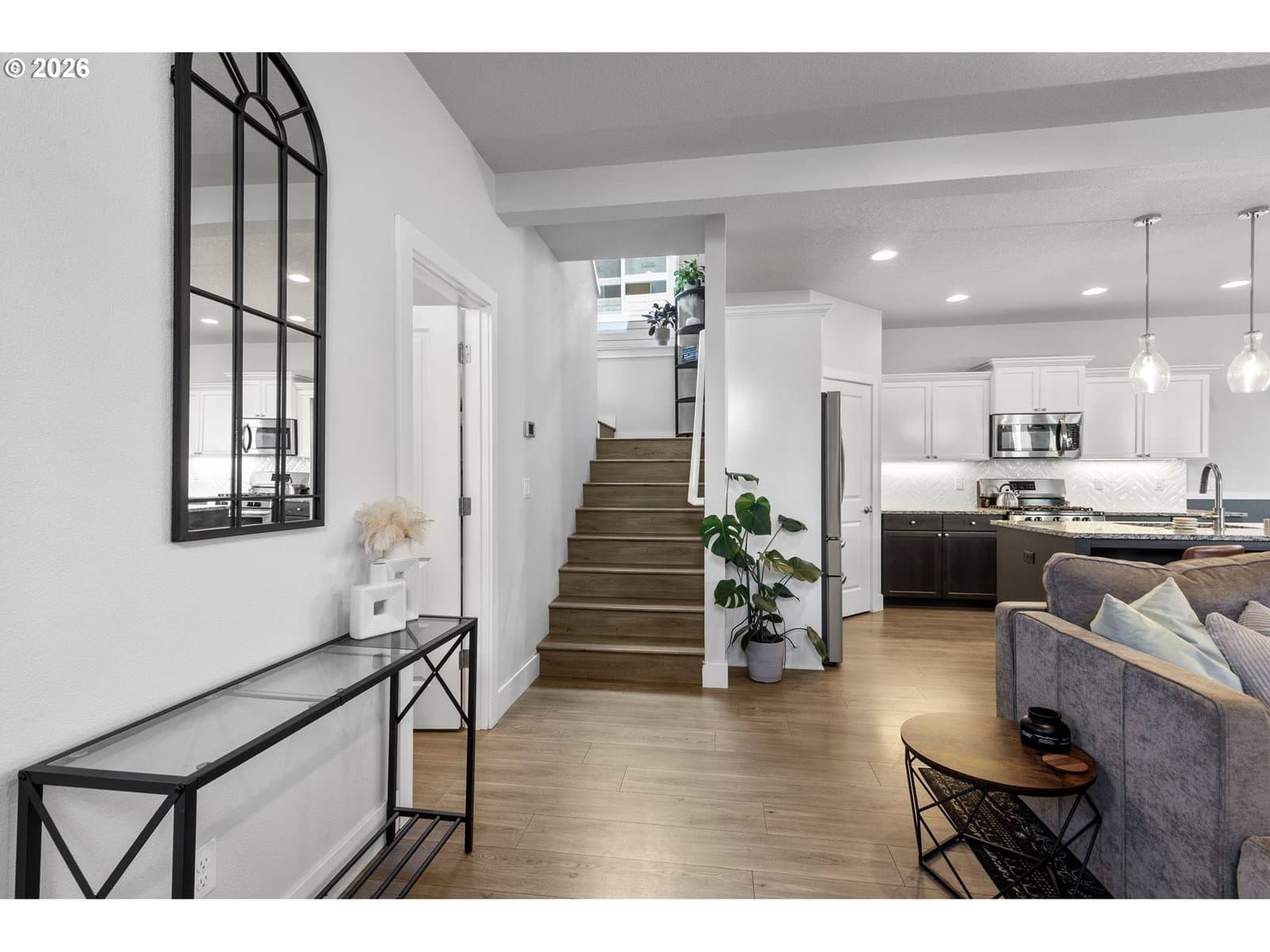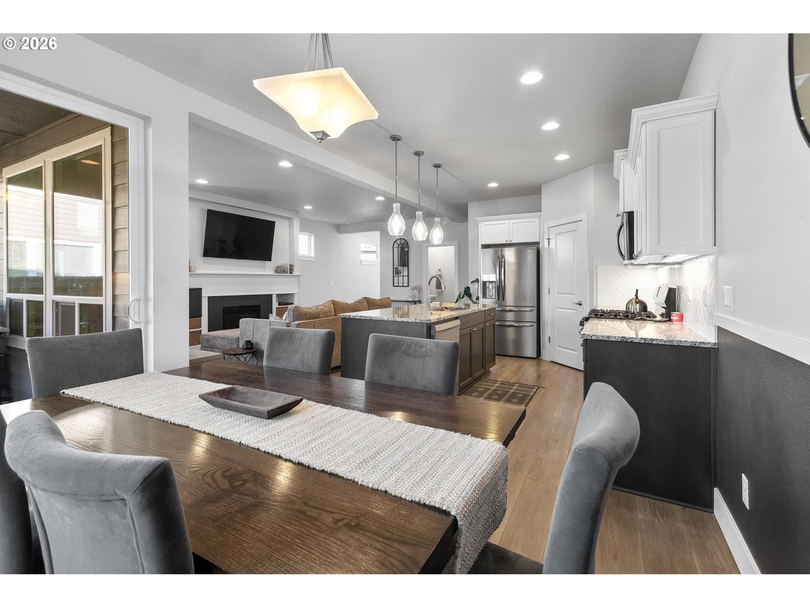 “GOOD AS NEW” HOME ON GREENSPACE. 3 bedrooms + loft, 2 1/2 bathrooms, 1831 sqft, built in 2020. Quality finishes throughout the home including 9’ ceilings & laminate flooring throughout the main floor. Kitchen has a corner pantry, gas range & large granite island w/ eating bar that opens to the dining area and great room w/ gas fireplace. Upstairs has a large loft/bonus area, laundry room & all bedrooms. Primary bedroom is good sized w/ a walk-in closet, 2 sinks & glass shower. Covered back patio overlooks the fenced yard and greenspace. Walking trails that connect to the new Ridgefield shops, restaurants & amenities are right by the home. This is a great property in the desirable Heron Woods community.