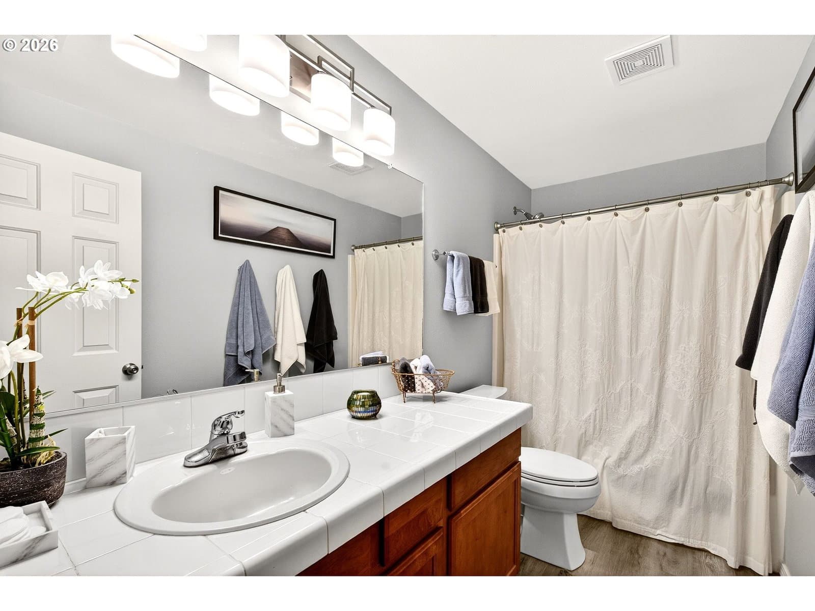 Stylish, immaculate, and truly move-in ready, this beautifully remodeled two-level home offers 4 bedrooms plus a versatile loft and showcases over $100K in recent upgrades. Recent improvements include a new DaBella asphalt roof, brand-new Renewal by Anderson windows throughout, fresh interior and exterior paint, and stunning new laminate floors in the main living areas paired with new wall-to-wall carpet in 2 bedrooms. High vaulted ceilings and a spacious great-room layout with 9’ ceilings and a cozy gas fireplace create a bright, open atmosphere ideal for everyday living and entertaining.The gourmet kitchen is a standout, featuring new range, new DreamLine custom cabinetry, laminate flooring, new ceramic tile backsplash all the way up around the kitchen window to the ceiling, a gas range, new dishwasher, new microwave, generous counter space, and a large island perfect for gathering. The remodeled primary suite features a walk-in closet, double sinks, and a walk-in shower designed for comfort and style. Home has integrated video doorbell for added security. Additional highlights include a new gas water heater, soft water system, gas heat, brand new central A/C and heating, landscaped front yard with sprinklers, and a newly built custom deck overlooking a low-maintenance fenced backyard. Located in a well-maintained community with a protective HOA and neighborhood park, this home blends quality craftsmanship, thoughtful upgrades, and a welcoming setting—ready for you to move right in and enjoy.