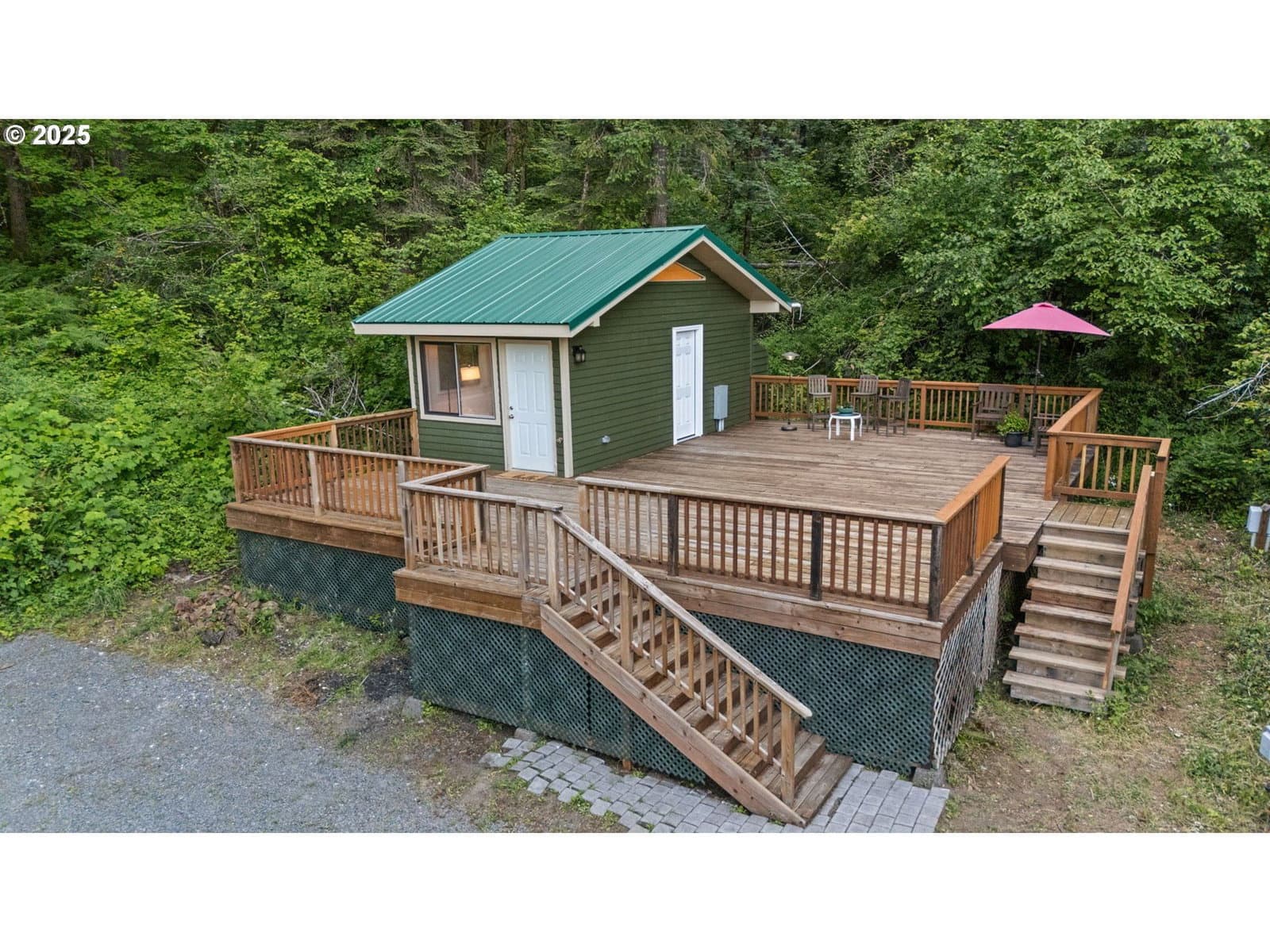 SIGNIFICANT PRICE REDUCTION OF $210,000! Seller is highly motivated. Ideal for multi-generation family, friends and/or rentals.An exceptional and unique property on 10+ acres with 3-4 different living spaces. Main house is two-round, open ceilings with skylights, connected by an octagon. 3-bedrooms, 2 baths, about 2,000 SF. Built in 1990, it’s been updated in 2025 with new paint, flooring, and countertops throughout. The kitchen has brand new stainless-steel refrigerator, oven/cooktop, microwave and dishwasher. There’s an abundance of counterspace, a large skylight, walk-in pantry, and built-in desk with upper wall cabinets. Off the hallway is a separate laundry room with washer-dryer; a door provides direct “mudroom” access to/from the foyer. The former llama ranch has a separate guest house with a loft plus an 850 SF deck engineered to support a yurt if desired. Another detached two-story building holds a 3-car garage below with a full 850 SF apartment above; could also be an Airbnb, or event center. There’s a large workshop and barn with six stalls leading to eight pastures. Next to it is a loaf shed with three bays. Two additional RV hookups are on the property: one with a cement pad. The large garden area has 8 cement-block-raised beds, a greenhouse, and a rabbit hutch. Nearby is a small building with a loft, which could be a she-shed, he-shed, teen bedroom, or bunkhouse. And there’s a large, walk-in chicken house with a small separate exterior door for egg collection made easy. The property also has mature Douglas Fir Trees and a small hilltop orchard. Water spickets are scattered throughout the land. The property entrance has a securely locked gate with wireless, remote operation. Located just 25 minutes from downtown Eugene and 10 minutes from downtown Cottage Grove. Photo 48 is a site map and shows locations of the buildings and features.