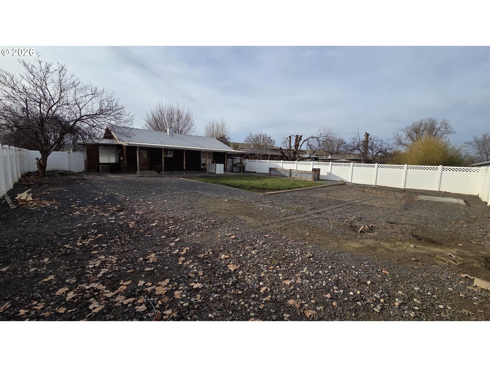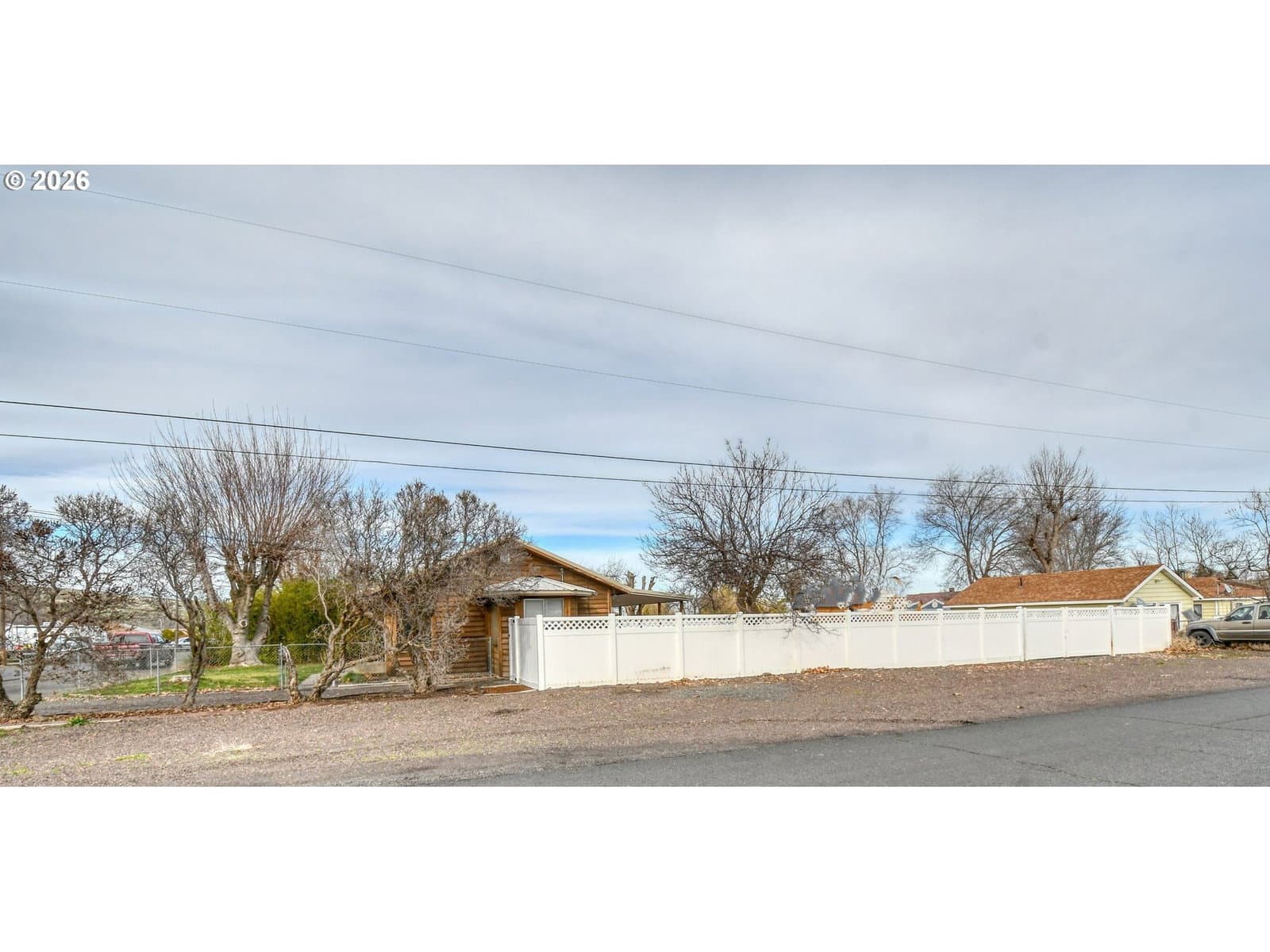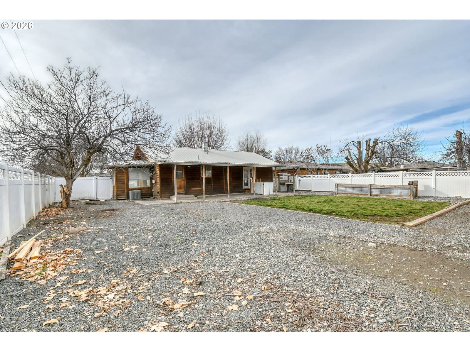 Large corner lot in Pilot Rock with updated home. Located on .18-acre lot. This 952sf. modern farmhouse style home is the perfect blend of rustic and chic with natural wood and western flare. Bright kitchen with hickory cabinets, tin back splash, built-in microwave, dishwasher and gas range. Large bedrooms and updated bathroom. Easy access to additional space in the attic. Economical gas furnace and gas hot water heater. The basement bonus room with exterior entrance adds additional 250sf. Step outside to your private, fenced backyard oasis. Enjoy year-round grilling on your covered patio with a convenient, plumbed-in gas line. Cozy fire pit and easy to maintain landscaping with underground sprinkles, raised garden beds and a potting bench. Beautiful vinyl fence with double gate access to the backyard. Expansive parking for all your vehicles and toys. Need a shop/garage? Plenty of room to build one. Not in the flood plain. This perfectly located home can be yours today.