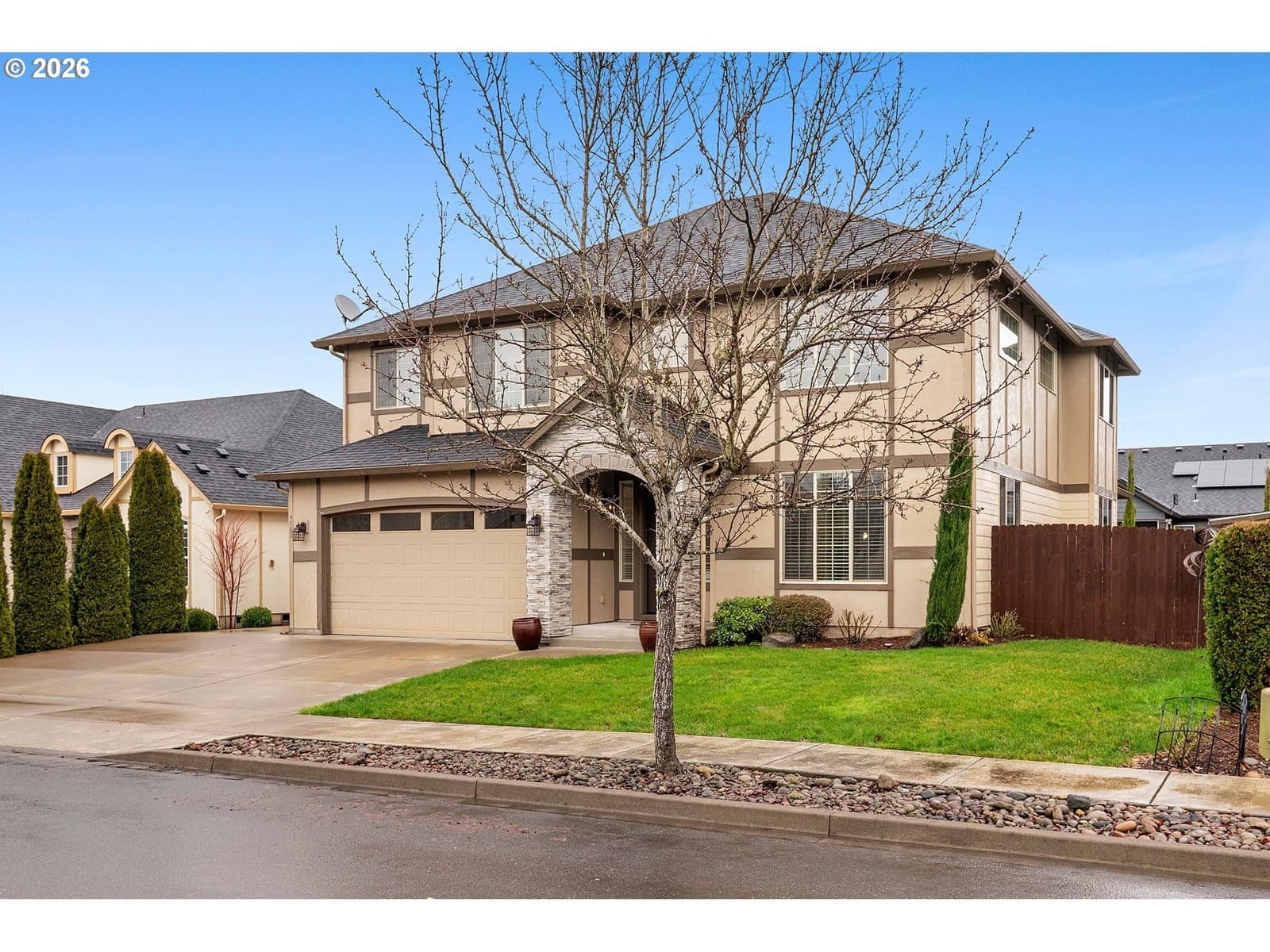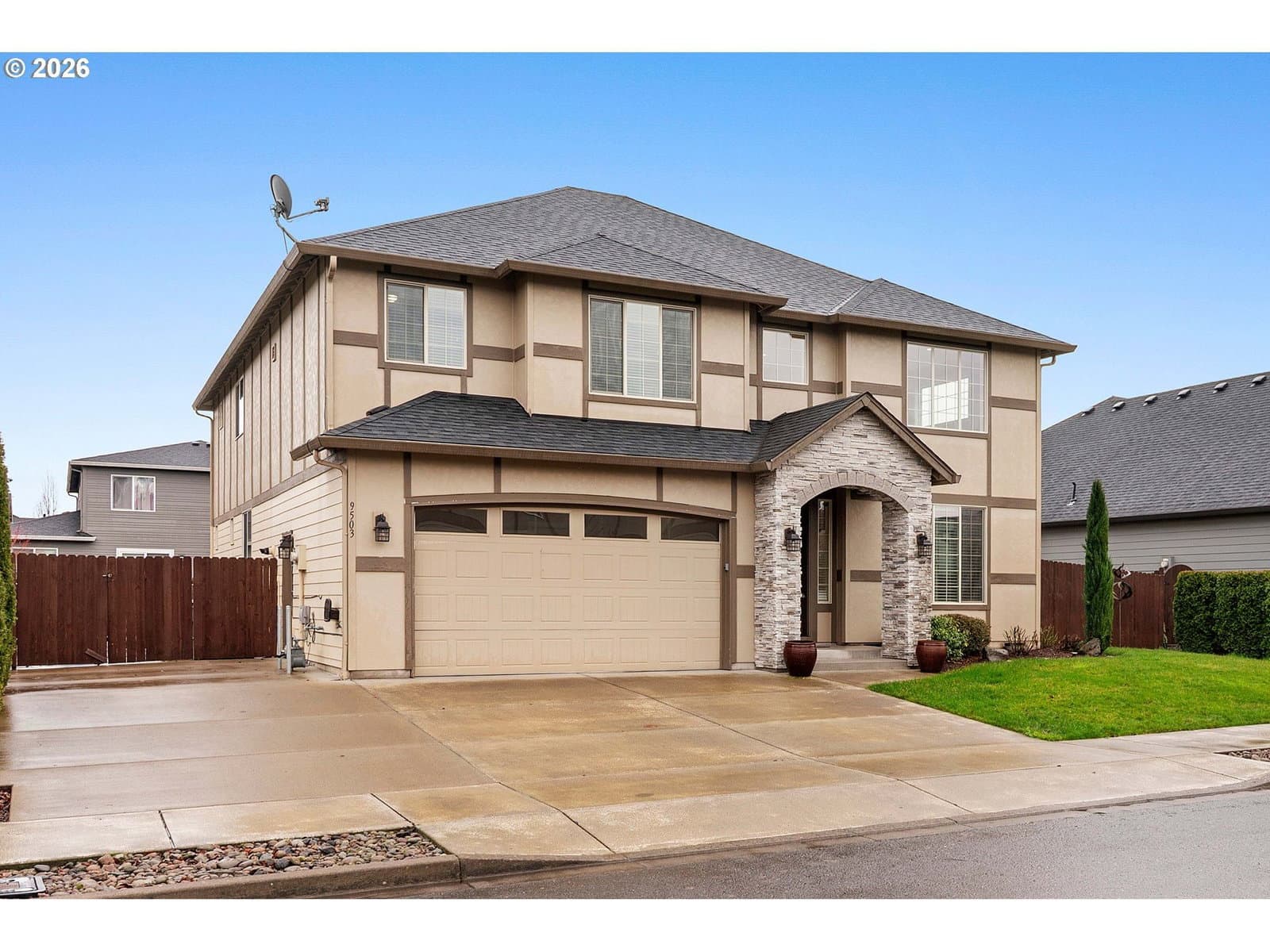 Embrace of the Orchards neighborhood and the sought-after Hockinson school district, this spacious 3,406-square-foot home offers comfort, versatility, and thoughtful design for modern living. Five bedrooms plus a generous bonus room and three full baths provide abundant space to gather, retreat, work, or play with ease. Brand-new flooring graces the main level, creating a fresh and elegant foundation throughout. Gas appliances anchor a kitchen designed for connection, complemented by an additional secondary kitchen—perfect for large family gatherings, celebrations, and effortless entertaining. The primary suite is a peaceful refuge, featuring a walk-in shower and a deep soaker tub, inviting moments of restoration at the end of the day. A whole-house heat recovery ventilator and air purification system quietly enhance daily living, bringing comfort and clean air to every room.Outside, the expansive, fully fenced backyard offers space to play, garden, or unwind beneath open skies, while dedicated RV parking adds both convenience and flexibility for those who value adventure and practicality. This is a home designed not just for living, but for gathering, celebrating, and creating lasting memories.