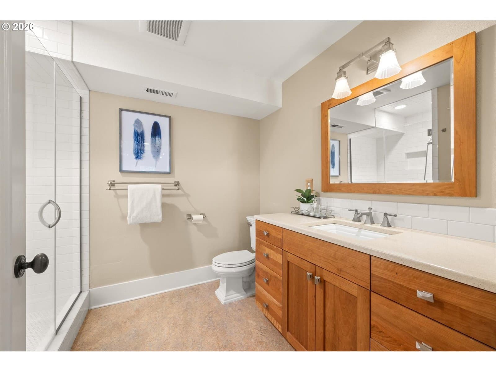 Situated in one of Lake Oswego’s most desirable neighborhoods, this beautifully updated home lives like a one-level and offers the perfect blend of comfort, functionality, and timeless style. Refinished hardwood floors span the main level, guiding you into an inviting open-concept living room anchored by a gas fireplace and expansive windows that fill the space with natural light. The updated chef’s kitchen features quartzite countertops, high-end Wolf and Sub-Zero appliances, cook island, and ample cabinetry. Step outside to a Trex balcony providing a stunning view, peaceful setting to relax and watch the sunset, while the formal dining room with custom built-ins adds an elegant touch. Down the hall, you’ll find a dedicated office with built-ins, an additional bedroom, and a stunning primary suite complete with double vanities, a soaking tub, tiled shower, and a spacious walk-in closet. The lower level offers incredible flexibility with three additional bedrooms, including one ensuite, along with multiple flex spaces and an oversized family room equipped with a projector and screen. Generous storage throughout ensures everything has its place. Outdoors, walk out onto your lower level expansive Trex deck, raised garden beds, a lush and private yard, and built-in bench seating. Located near Mt. Park trails, Westlake Park, top-rated Lake Oswego schools, easy access to amenities, and quick access to I-5.