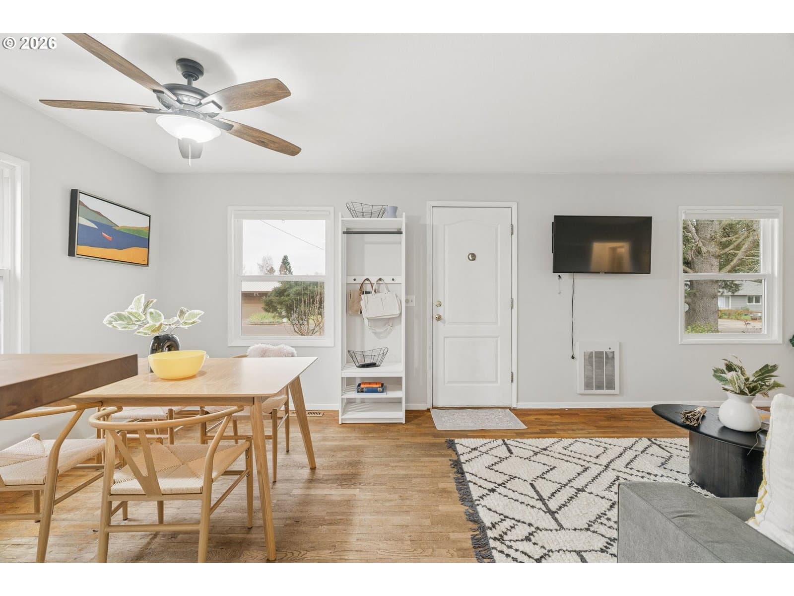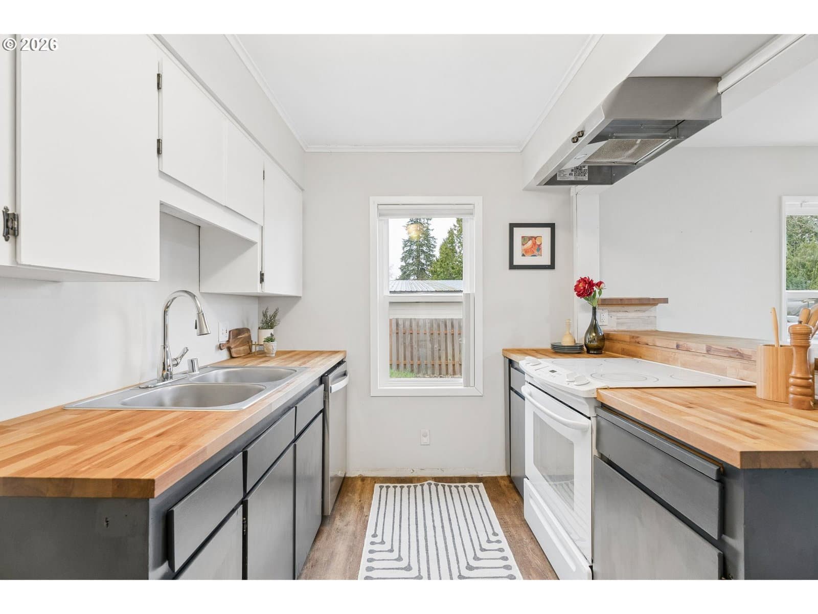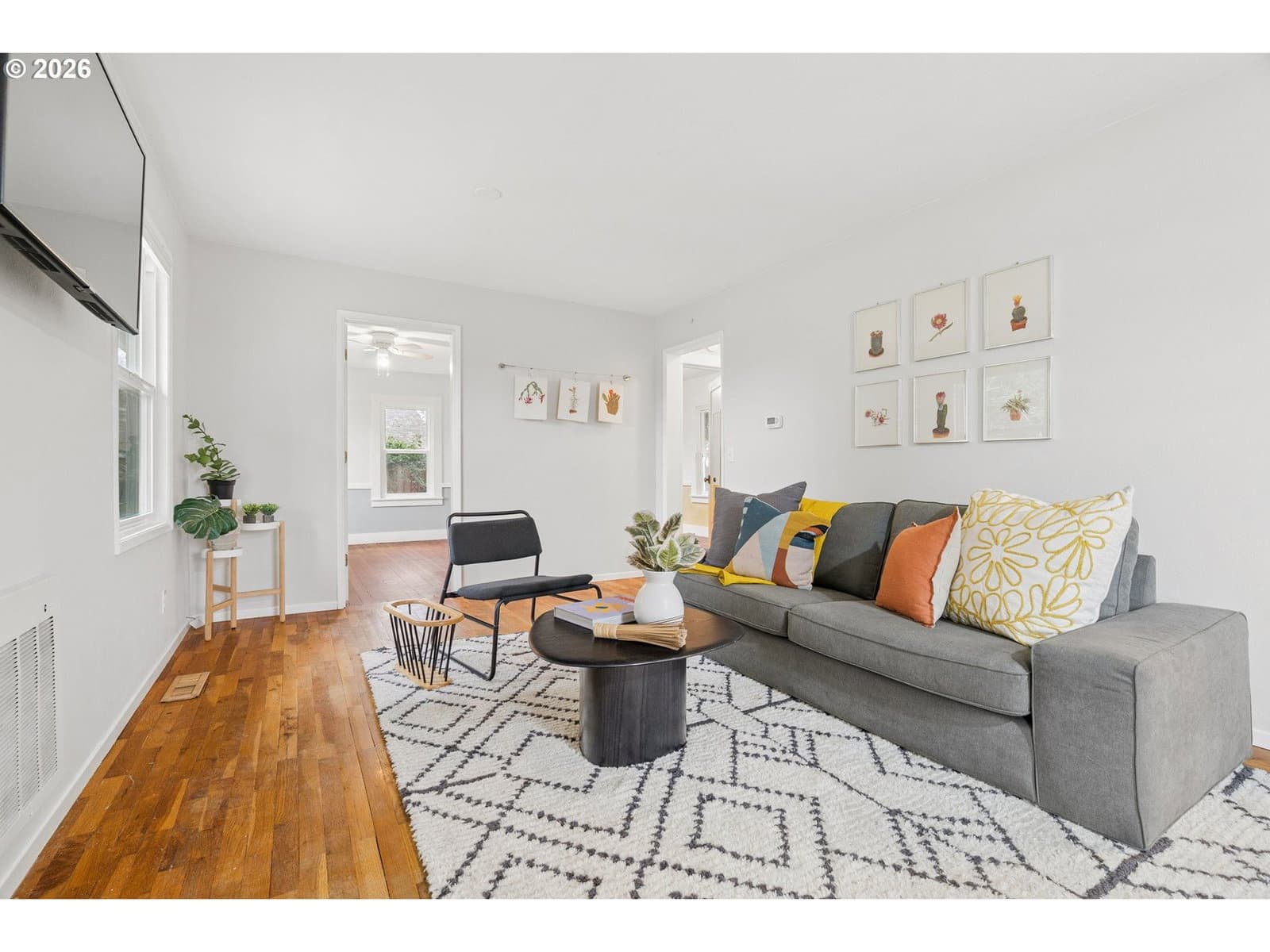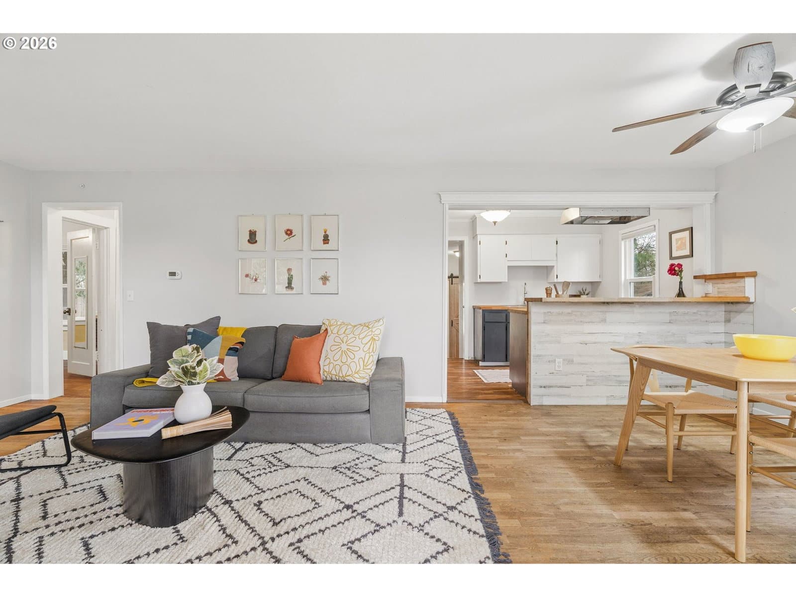 Set on a generous quarter-acre lot, this charming 1930 Canby home blends vintage character with meaningful updates and space to live both indoors and out. Offering 1,635 square feet, the home features covered front porch, 3 bedrooms, 2 baths, hardwoods, open floor plan with abundant natural light, and classic details that reflect its era while supporting modern living. The kitchen has stainless steel appliances, butcher block countertops, laminate flooring and an eat-in bar for everyday gathering, as well as a large primary bedroom with with barn-door detail and outdoor access to deck and yard. Major system improvements include a new roof (2025), newer furnace (2022), updated sewer line and refreshed bathrooms. The flexible floorplan also includes finished basement space for game room/office/hobbies, and a storage area. A lovely substantial lot provides a fenced yard with native plantings, raised garden beds, chicken coop, powered shed, and plenty of usable outdoor space. Oversized driveway offers RV or boat parking.Located near popular parks, river recreation, and Canby’s vibrant small-town downtown filled with local shops, cafés, a farmers market and community events, this home puts you close to the charm and connection. Cute, character-filled, and full of possibility, this home invites a lifestyle lived both inside and out. Settle in and make it your own.
