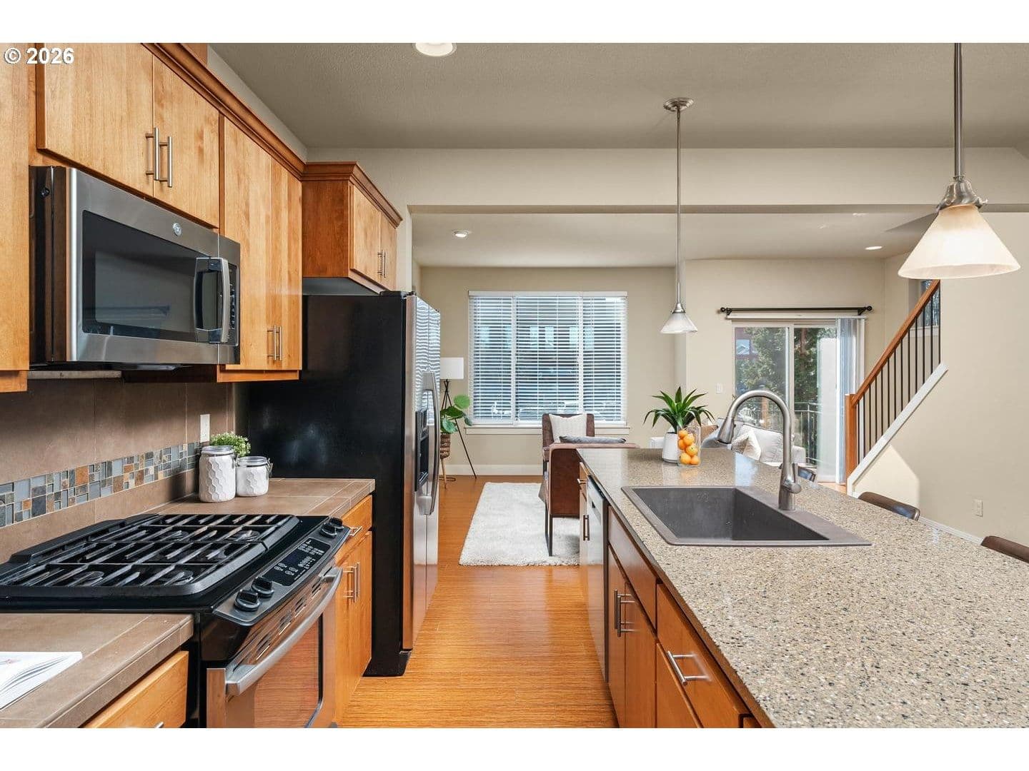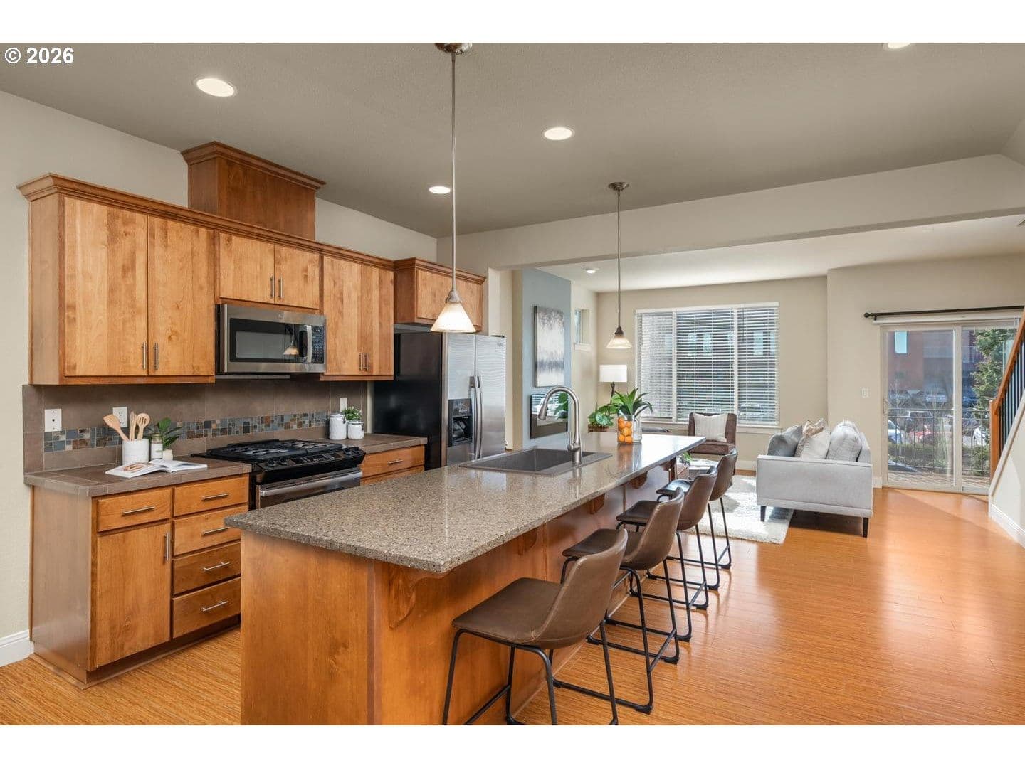 Modern Living in Highly Sought-After 45 Central in Beaverton, OR with Ideal Southern Exposure. Bright Natural Light Fills the Open Great Room, Highlighting Wood Laminate Floors, Electric Fireplace, Big Picture Windows & Sunny Front Deck. The Open Kitchen Features Granite Counters, Large Island With Eating Bar & Stainless Steel Appliances. The Nook Alongside the Back Deck is Perfect for a Desk Area or Pantry. The Flexible 4-Bedroom Floor Plan Includes a Bedroom at The Front Entry that's Ideal for Office, Guest Space or Bonus Room. Upstairs Offers a Conventient Laundry Room with Washer/Dryer Included & Each Bedrooms Has Fabulously High Ceilings. The Vaulted Primary Suite With Walk-In Closet & Dual Sinks Has Amazing Natural Light. 2-Car Garage Plus Convenient Street Parking in Front. HOA Amenities Include Pool, Gym, Parks & Community Room. Located Near Nike World Headquarters, VillaSport Athletic Club, Intel & the Sunset Tech Corridor, Minutes to Cedar Hills Crossing, MAX Light Rail, THPRD Nature Park & Easy Access to Hwy 26 & 217. This Home Has It All! Just minutes to Nike, Intel, Columbia Sportswear, Providence Hospital, Cedar Hills Crossing Shopping + Restaurants, many parks & vibrant Downtown Beaverton. 45 Central is a modern community placing value on sustainable living, design & convenience.