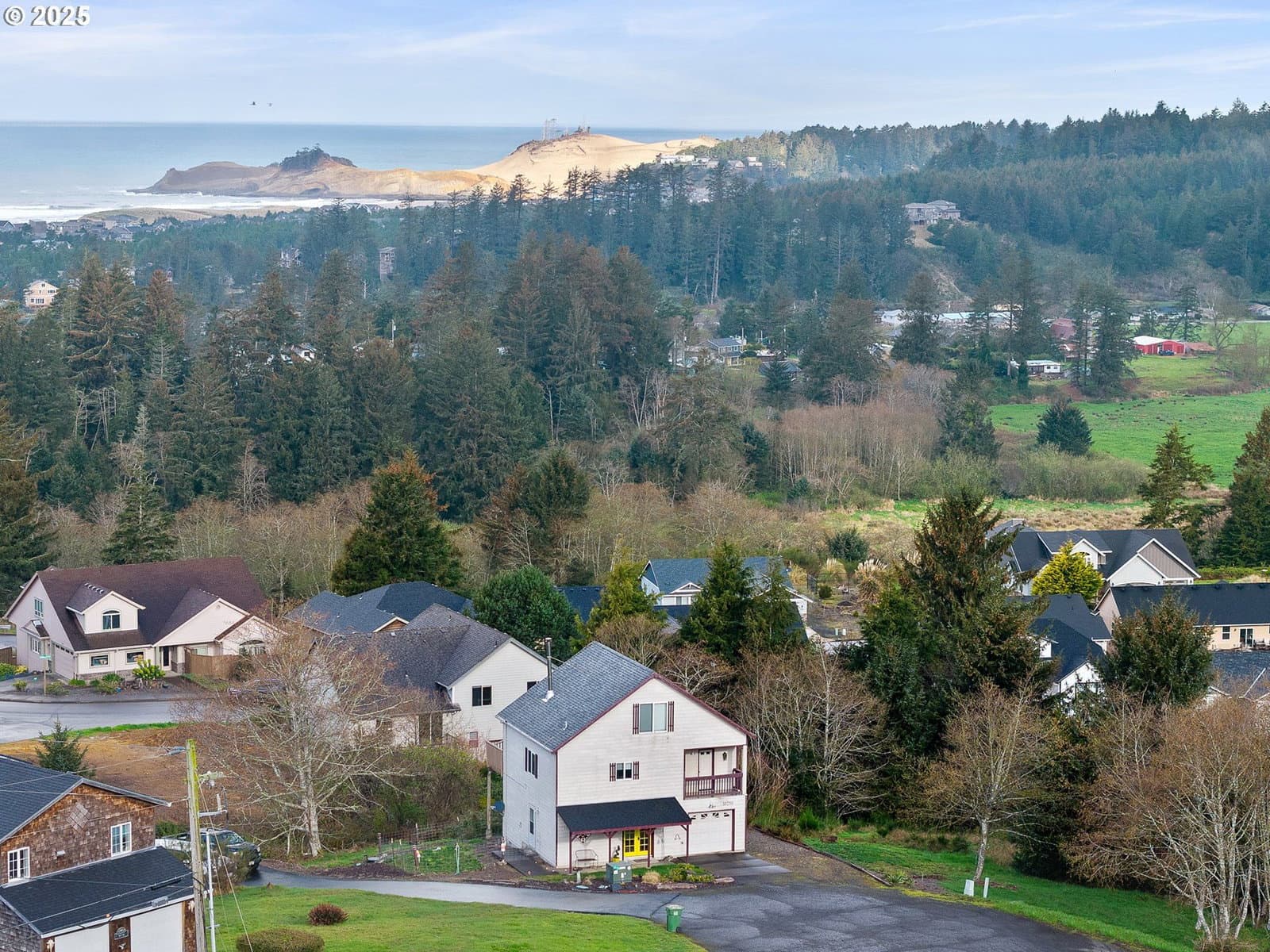 Breathtaking ocean views, Haystack Rock, & stunning vistas of the cape & mountains. Nestled on cul-de-sac in a serene neighborhood, this home offers ample space for family & friends to enjoy a delightful ocean retreat. A rare gem of Oregon paradise awaits you, featuring three decks, two of which are ready for hot tubs. This residence includes three bedrooms & two bathrooms, with the third loft-style bedroom occupying an entire floor, allowing for additional living or bonus room potential. The main level bedroom boasts a slider leading to the ocean-facing deck, along with a balcony overlooking the mountains. Enjoy low-maintenance Hardi-plank siding & Trex decking, as well as space for RV parking & outdoor activities. A small fenced area and finished garage add play and storage space!