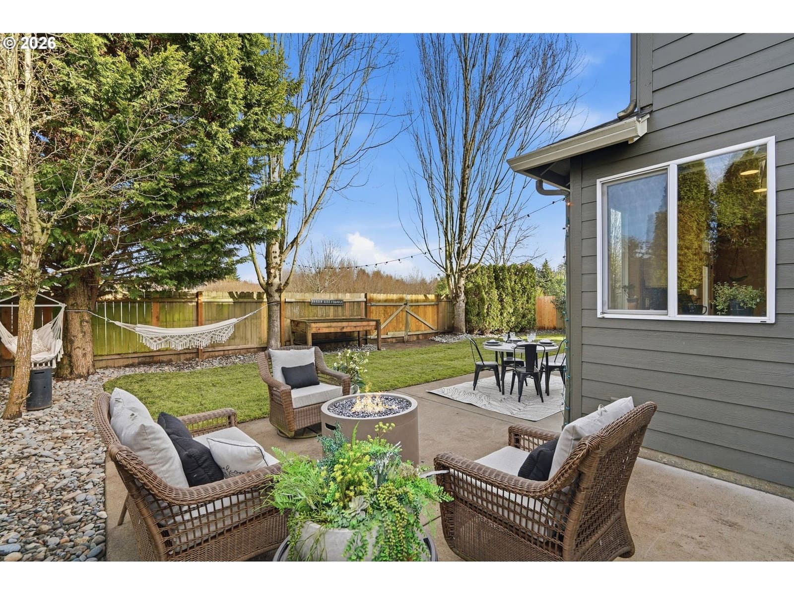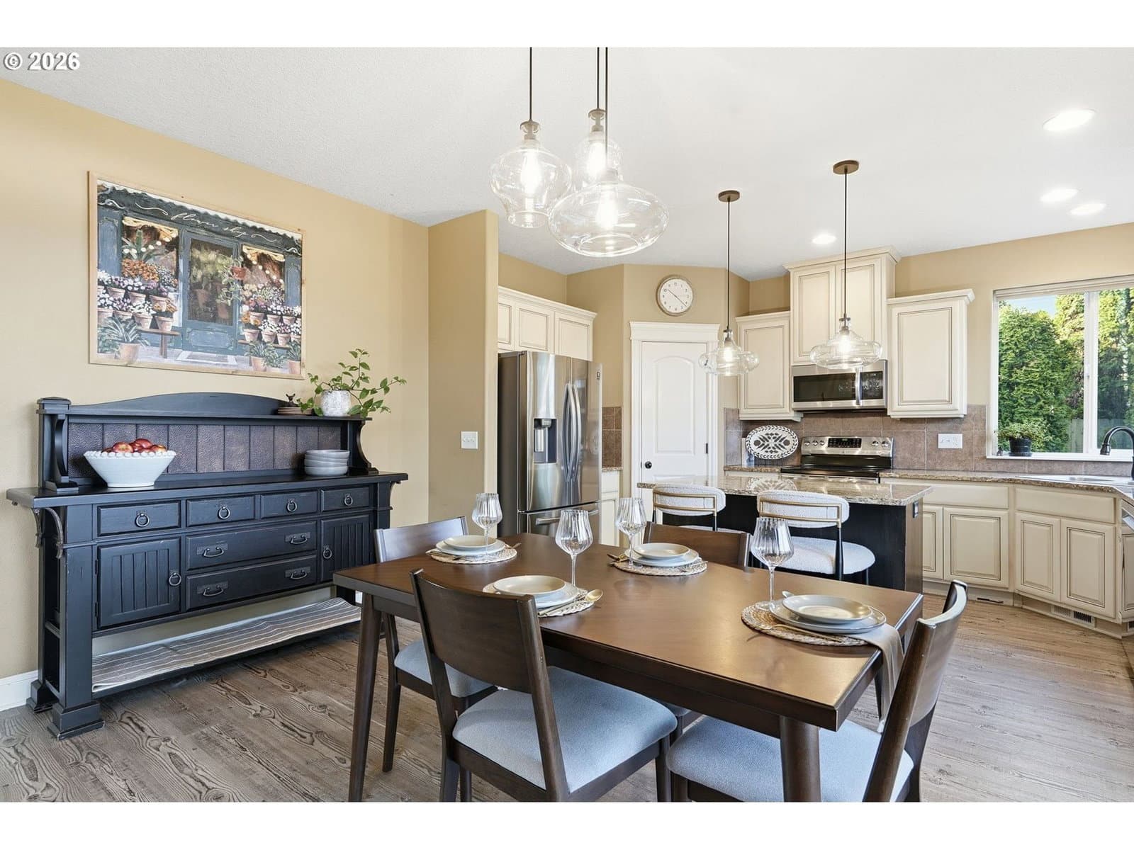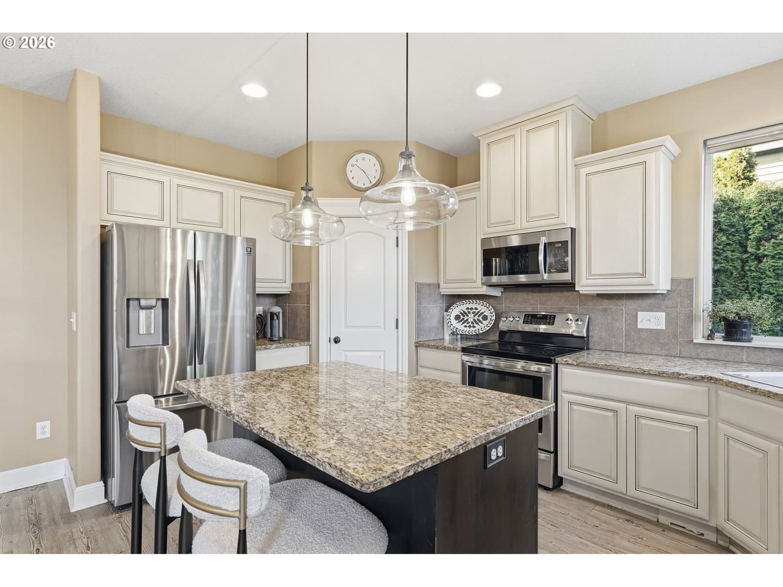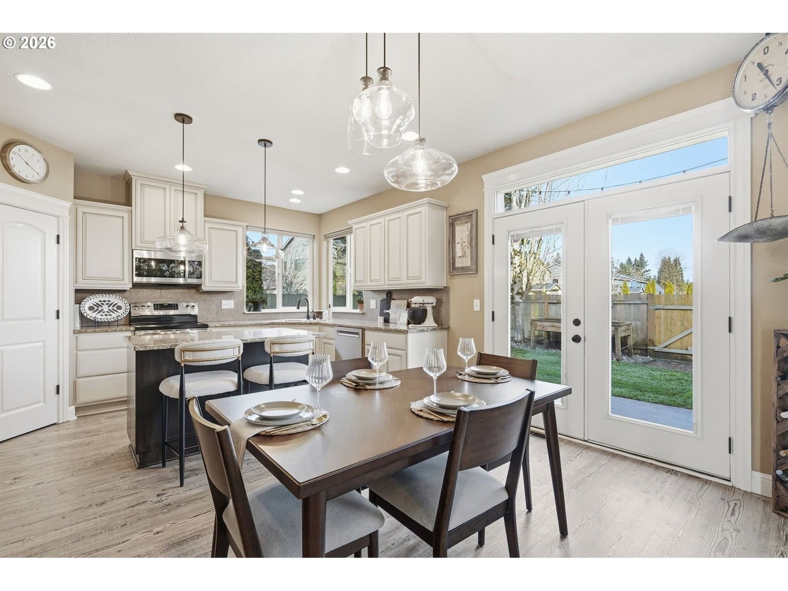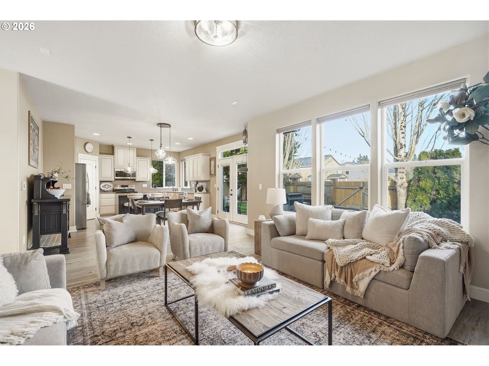 Located in the desirable Village on the Glen neighborhood, this thoughtfully designed home offers flexible living spaces, access to outdoor amenities, and a convenient central location. Less than 20 minutes to PDX Airport and approximately 10 minutes to WSU Vancouver, with easy access to shopping, dining, and major commuter routes.The floor plan includes three bedrooms plus a den with a closet, offering the potential for a fourth bedroom, along with 2.5 bathrooms. The kitchen features newer stainless steel appliances, custom cabinetry, a large island, and a walk-in pantry, providing ample storage. French doors off the dining area open to a freshly landscaped backyard, ideal for gatherings and everyday enjoyment. The property also includes private gated access to an expansive green space with walking trails.Upstairs, double doors lead to the primary bedroom with an ensuite bathroom featuring dual vanities, a corner soaking tub, and a large walk-in closet with built-ins. Two additional bedrooms and a generously sized laundry room complete the upper level.An oversized three-car garage includes built-in shelving and a large storage loft in the third bay, offering exceptional storage options. The home is equipped with a central vacuum system throughout, including the kitchen, as well as a green UV air purification system in the air ducts for healthy living. Professionally designed interiors allow for the option to purchase the home fully furnished at an additional cost. Seller to provide a flooring allowance. Priced to sell at $575,000.