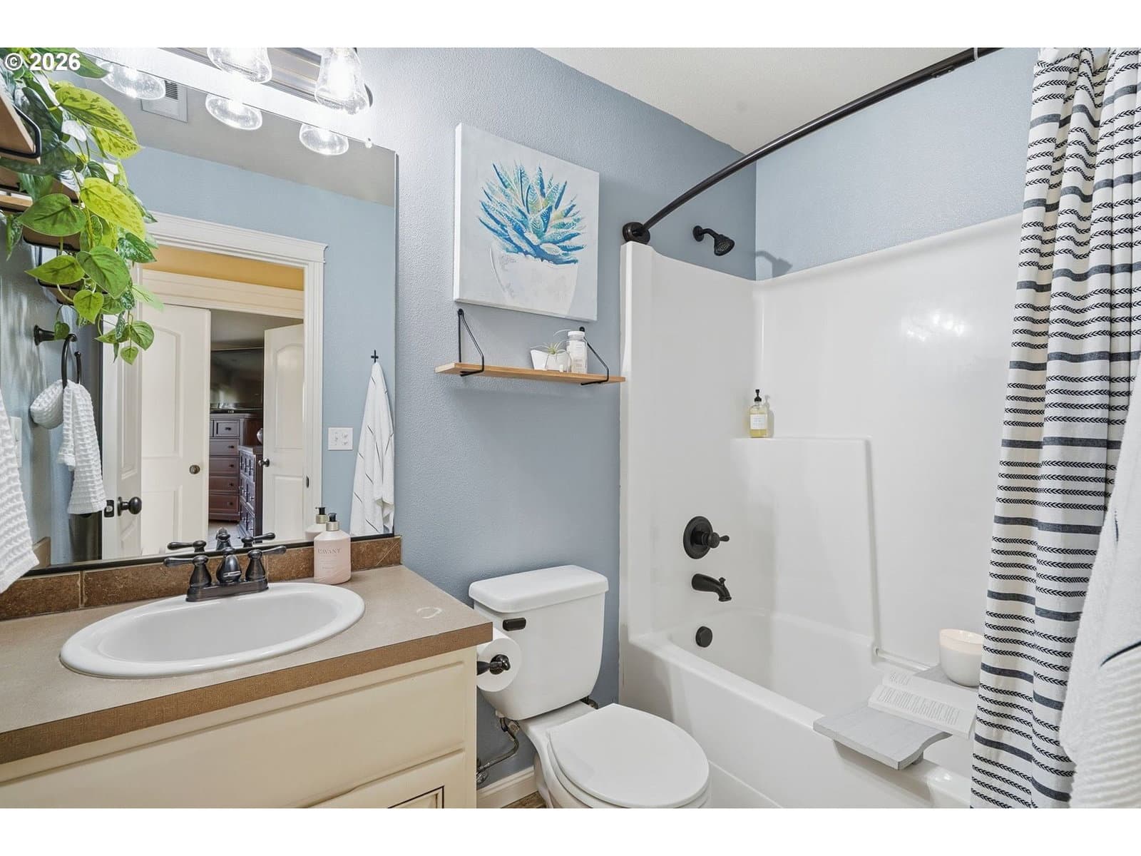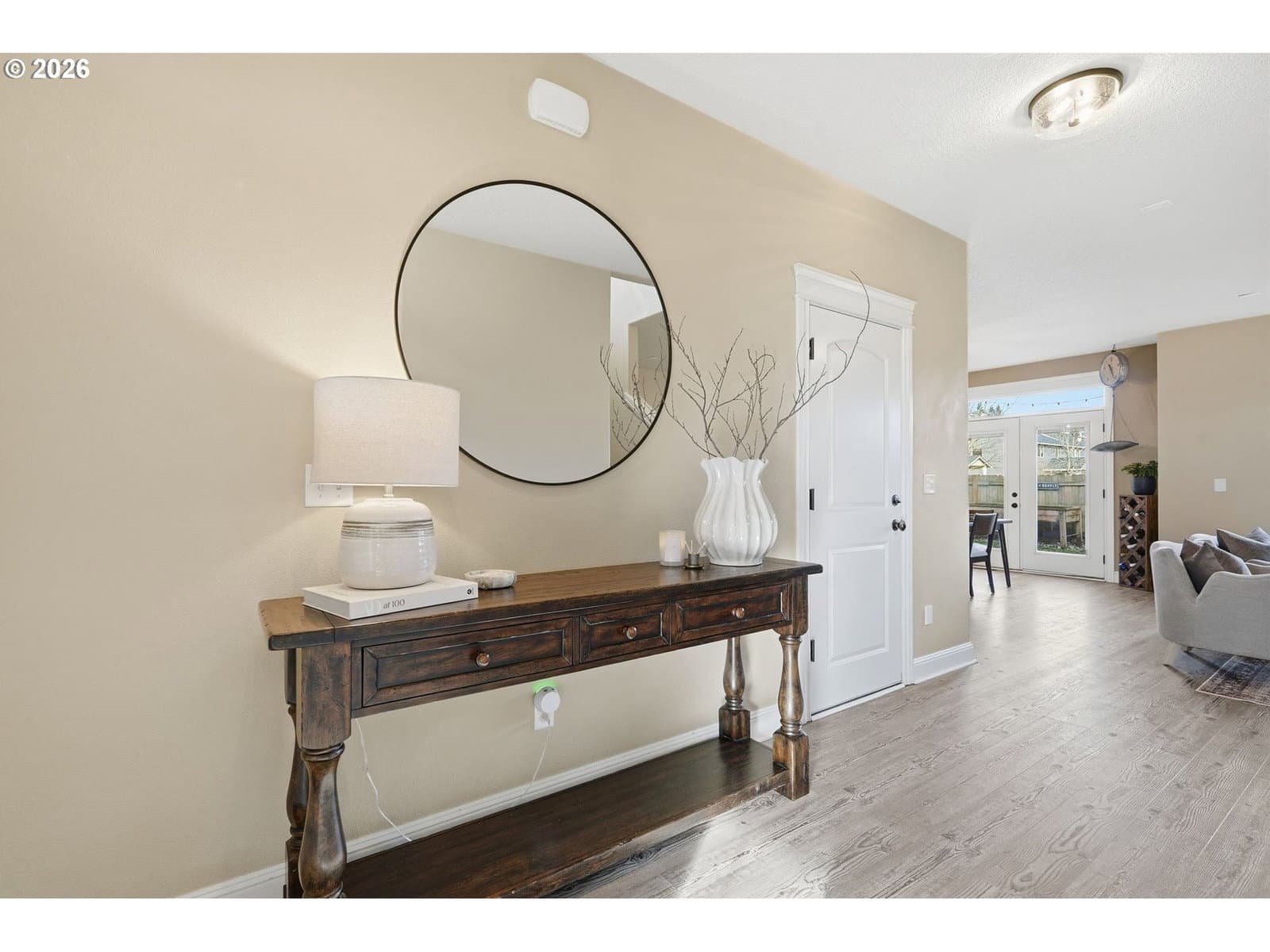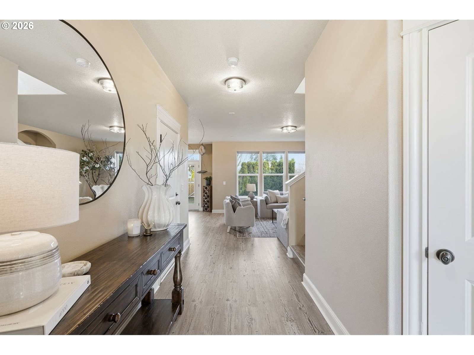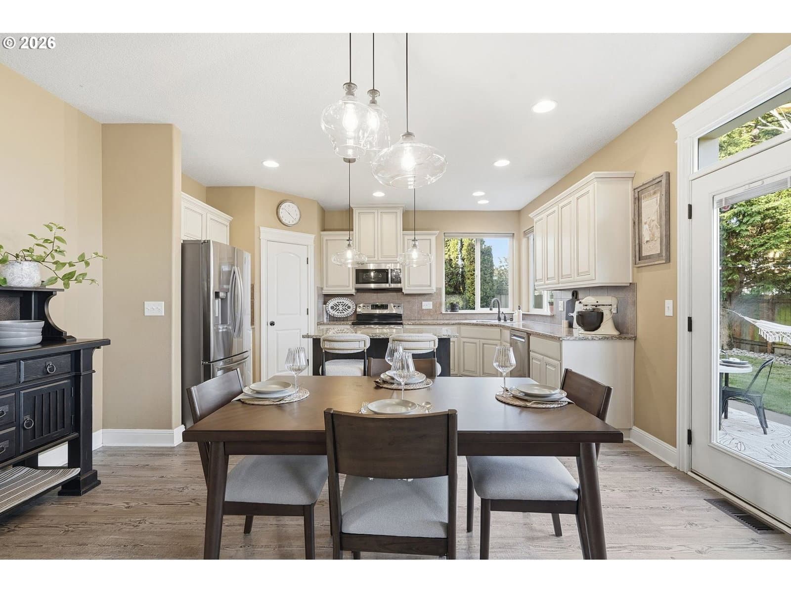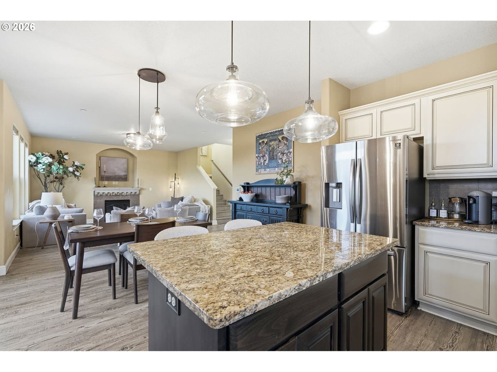Located in the desirable Village on the Glen neighborhood, this thoughtfully designed home offers flexible living spaces, access to outdoor amenities, and a convenient central location. Less than 20 minutes to PDX Airport and approximately 10 minutes to WSU Vancouver, with easy access to shopping, dining, and major commuter routes.The floor plan includes three bedrooms plus a den with a closet, offering the potential for a fourth bedroom, along with 2.5 bathrooms. The kitchen features newer stainless steel appliances, custom cabinetry, a large island, and a walk-in pantry, providing ample storage. French doors off the dining area open to a freshly landscaped backyard, ideal for gatherings and everyday enjoyment. The property also includes private gated access to an expansive green space with walking trails.Upstairs, double doors lead to the primary bedroom with an ensuite bathroom featuring dual vanities, a corner soaking tub, and a large walk-in closet with built-ins. Two additional bedrooms and a generously sized laundry room complete the upper level.An oversized three-car garage includes built-in shelving and a large storage loft in the third bay, offering exceptional storage options. The home is equipped with a central vacuum system throughout, including the kitchen, as well as a green UV air purification system in the air ducts for healthy living. Professionally designed interiors allow for the option to purchase the home fully furnished at an additional cost. Seller to provide a flooring allowance. Priced to sell at $575,000.