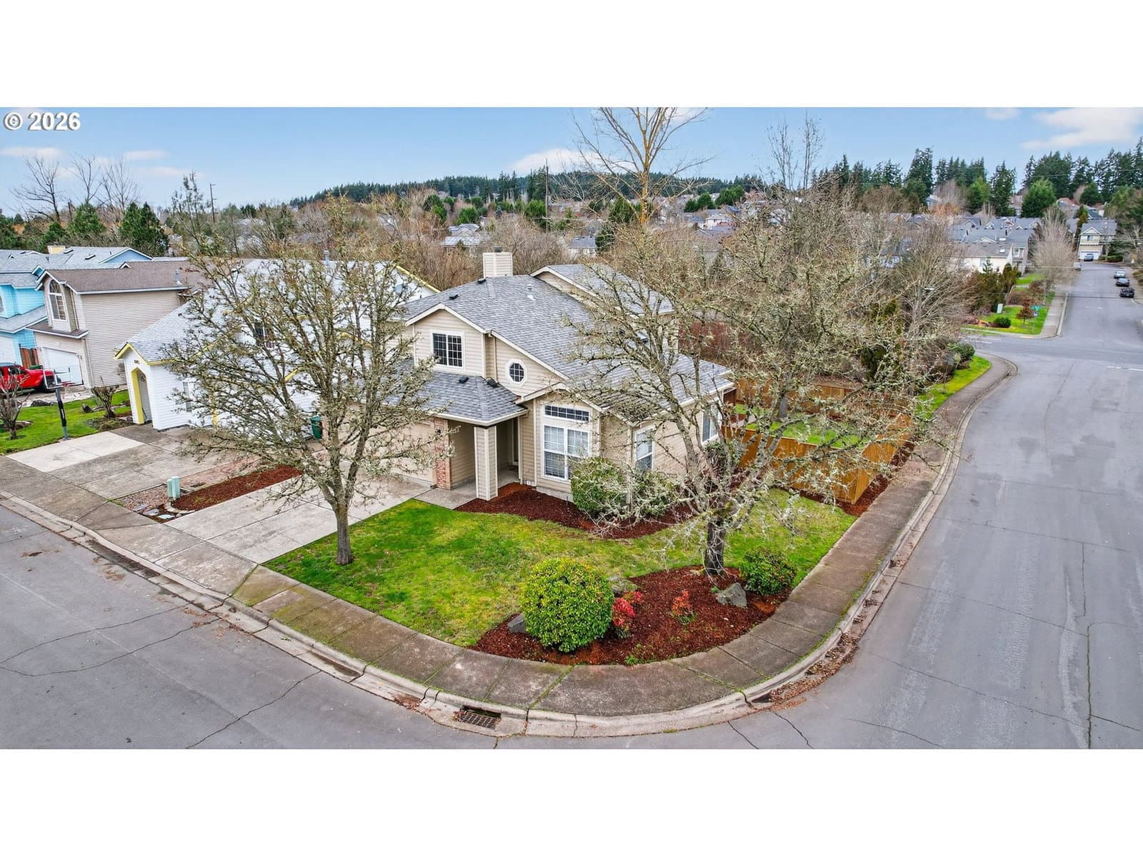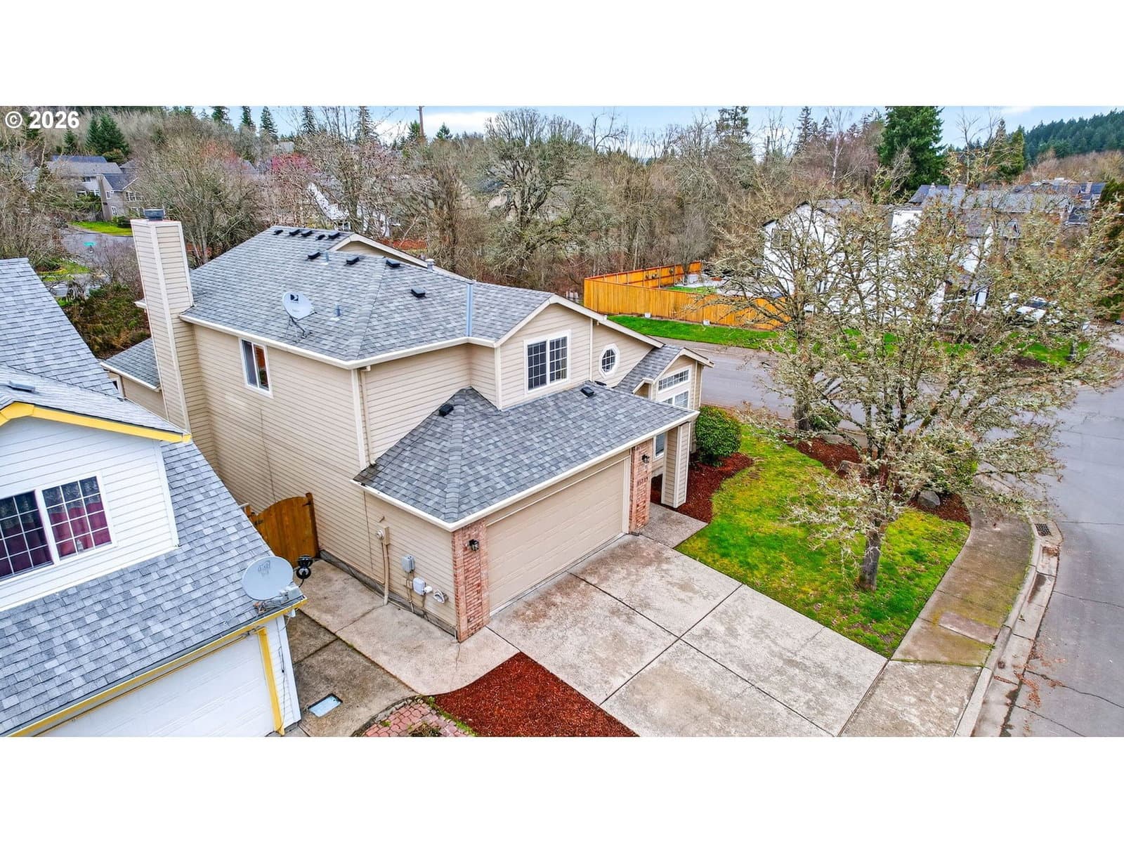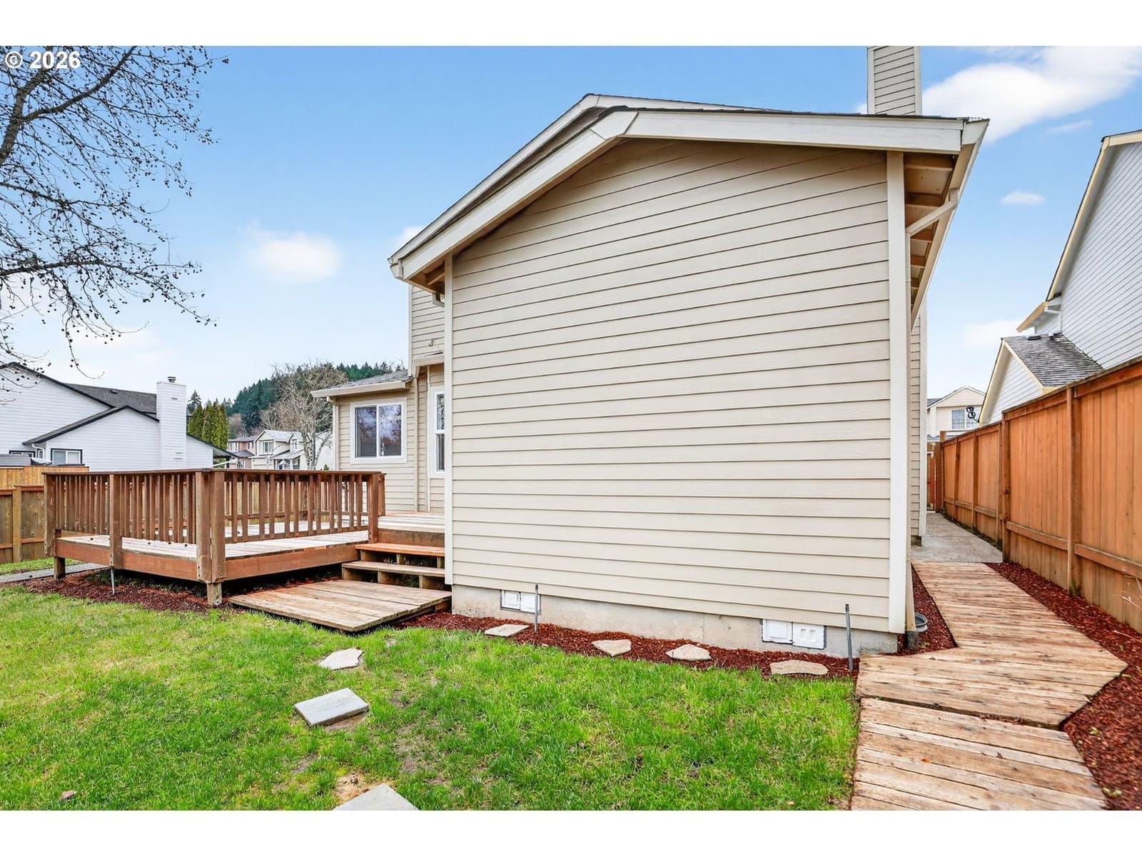 Situated on the back side of a serene, quiet common area and on a desirable corner lot, this beautifully designed 4-bedroom, 2,092 sq ft home offers a rare combination of privacy, functionality, and inviting living spaces. The upper level features a spacious primary suite complete with a large ensuite bath, a walk-in closet, stand alone shower and water closet (new toilet in 2018). Two additional upstairs bedrooms share a convenient Jack-and-Jill style bathroom, ideal for family or guests. Downstairs, you’ll find a fourth bedroom—perfect for a home office or guest suite—along with a formal living room, a welcoming family room w/gas fireplace for ambience, and a well-appointed kitchen. The kitchen includes a charming bay window nook, creating a bright and cozy space for everyday meals, updates as follows: new light fixture 2022 in nook area, FS Fridge 2017, dishwasher 2023, range 2024. Utility room with washer (2017)/dryer. All new ceiling fans in the entire home 2022, HVAC with added AC was replaced in 2013. Step outside to a large back deck overlooking the peaceful common area, where you can relax and enjoy the quiet setting with no neighbors behind you. This outdoor space is perfect for entertaining or unwinding while surrounded by nature completely fenced with cedar and was new in 2018. With its thoughtful layout, private setting, and tranquil views, this home is a wonderful opportunity for buyers seeking comfort and versatility in a peaceful well established neighborhood with not much turnover. Walking distance to New Seasons, close by to Big Al's, shopping and restaurants.