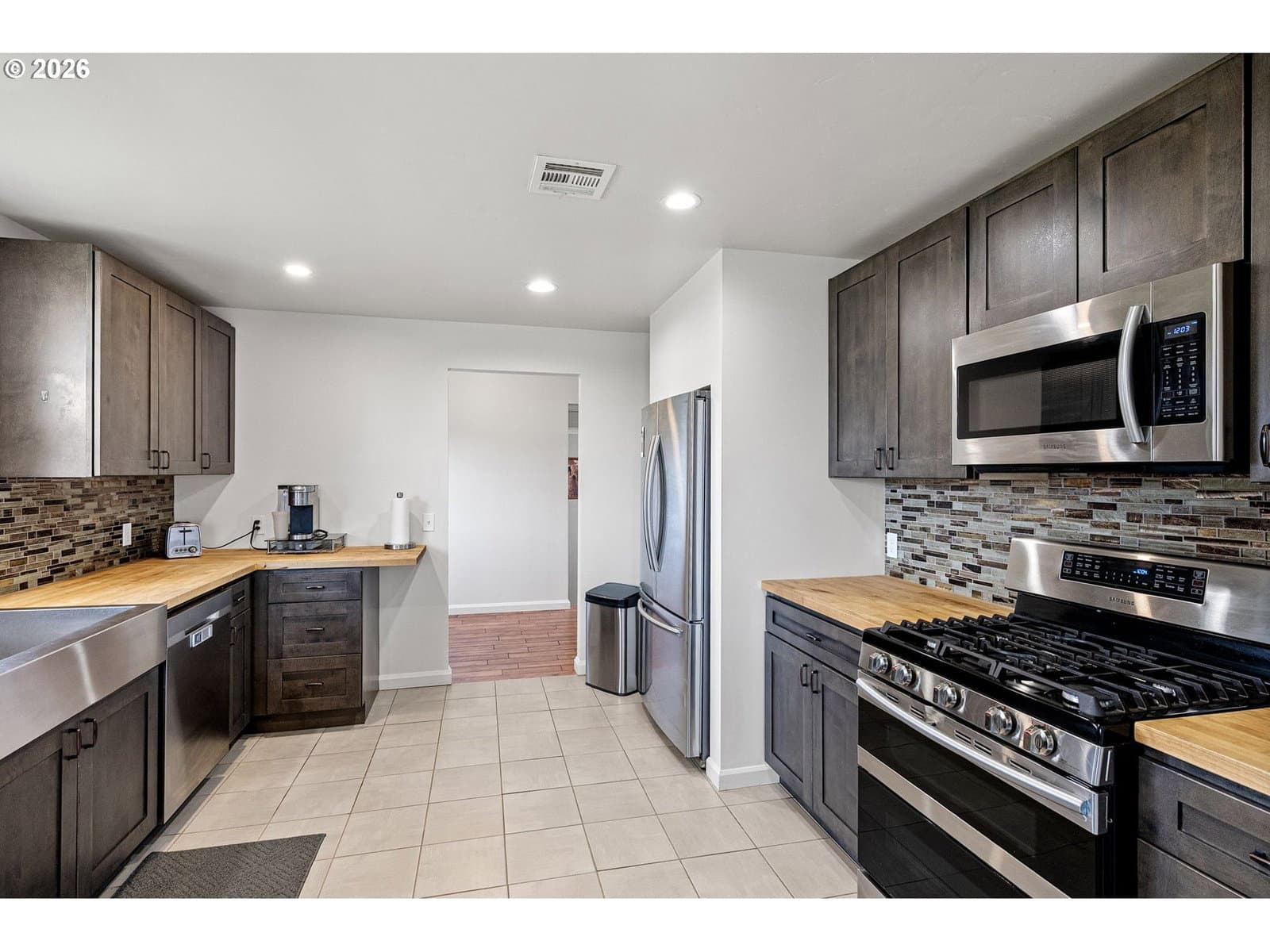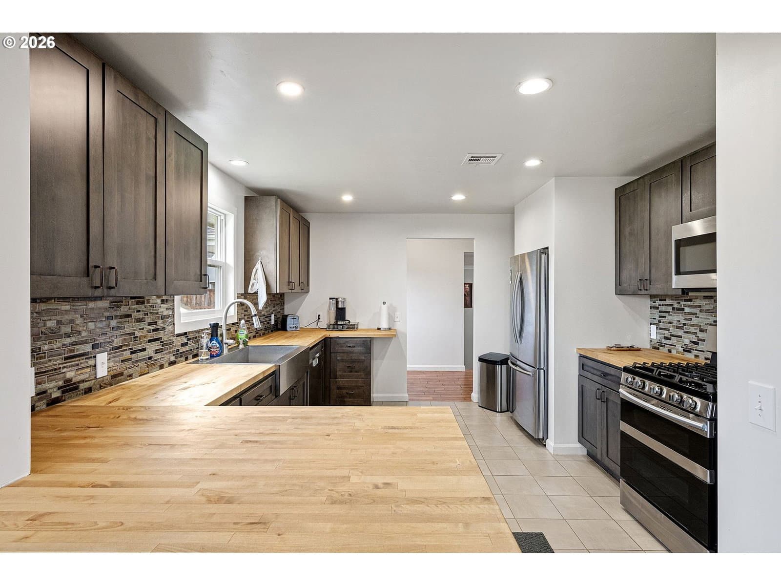 Welcome to this beautifully remodeled 2,000 sq ft home! Everything in this home is near new, offering modern comfort and true move-in-ready peace of mind. With 5 bedrooms and 3 full bathrooms, the layout provides excellent separation of space between bedrooms, allowing for flexible living arrangements and potential private guest quarters. The fully updated kitchen features butcher block countertops, stainless steel appliances, and tile flooring—ideal for everyday living and entertaining! Outside, enjoy raised garden beds, fruit trees, including two cherry trees, two apple trees, and a pear tree, creating a productive and inviting yard. An exterior workshop with electrical adds valuable hobby or storage space, while RV hookups, an RV cleanout, and a backup generator plug provide exceptional convenience. This thoughtfully updated property combines space and functionality, modern upgrades inside and out make this a must see home!