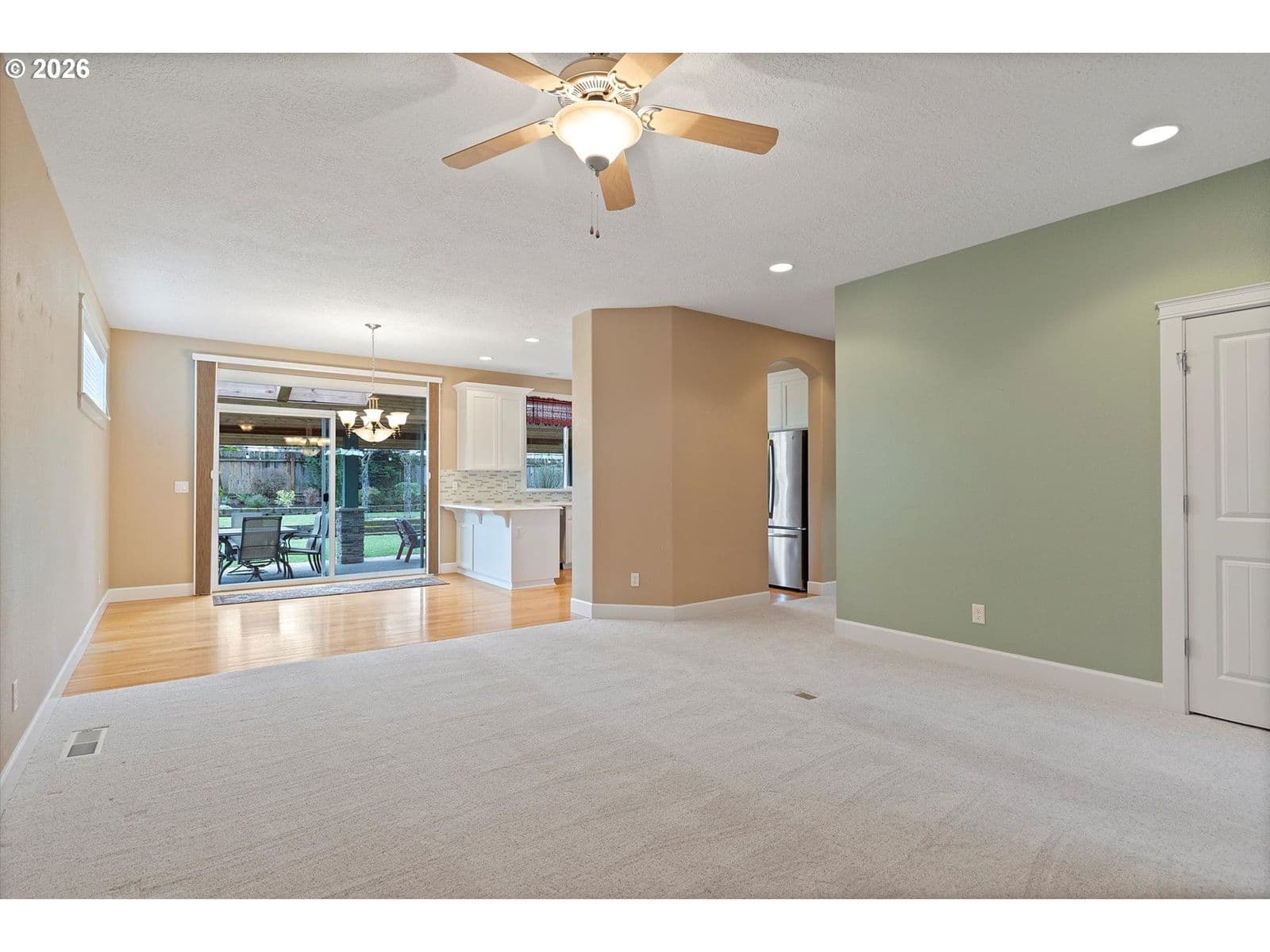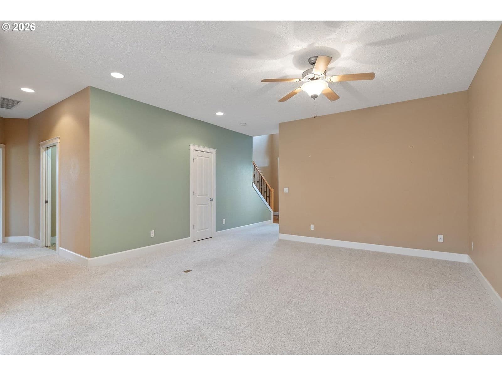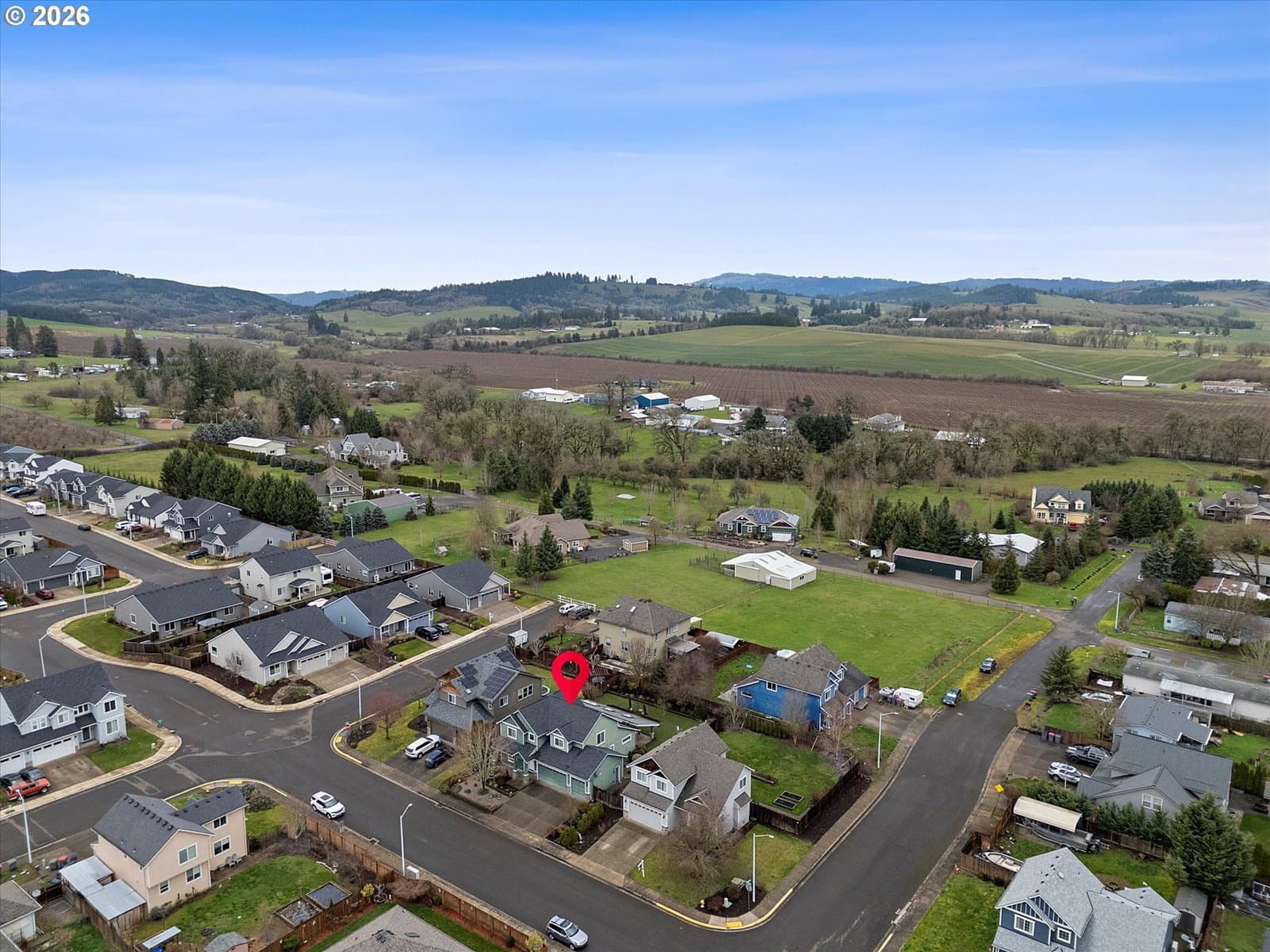 A wonderful home with an excellent floor plan, well maintained and tucked away on a quiet street. The spacious vaulted primary suite is conveniently located on the main level with a private entrance to the backyard. The kitchen features quartz countertops and stainless steel appliances, perfect for everyday living.The fourth bedroom provides a great option for a work from home office or guest space. Upstairs, you’ll find a huge vaulted bonus room above the three-car garage, ideal for a media room, playroom, or flex space. The enclosed third bay offers great potential for a workout area, workshop, or additional storage. Step outside to an incredible backyard designed for entertaining, complete with a large covered porch that opens to a beautifully landscaped yard. With a newer roof and furnace already in place, this home offers comfort and peace of mind. Small-town living at its best!