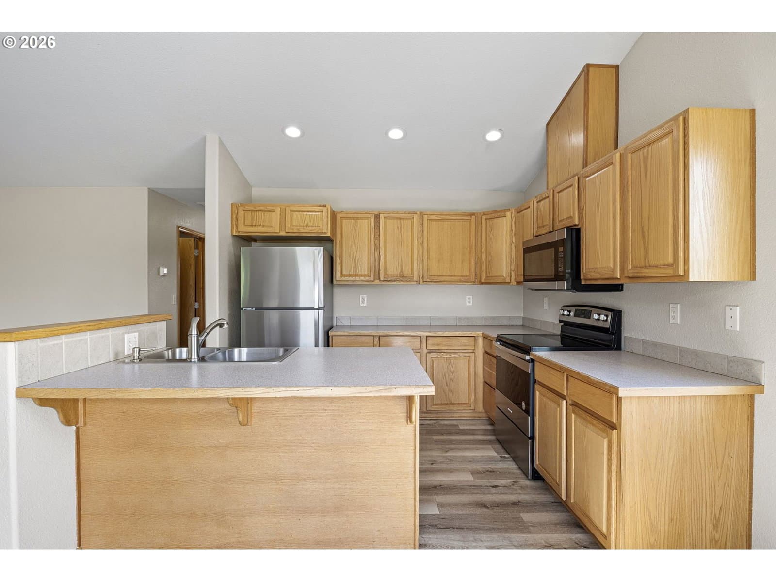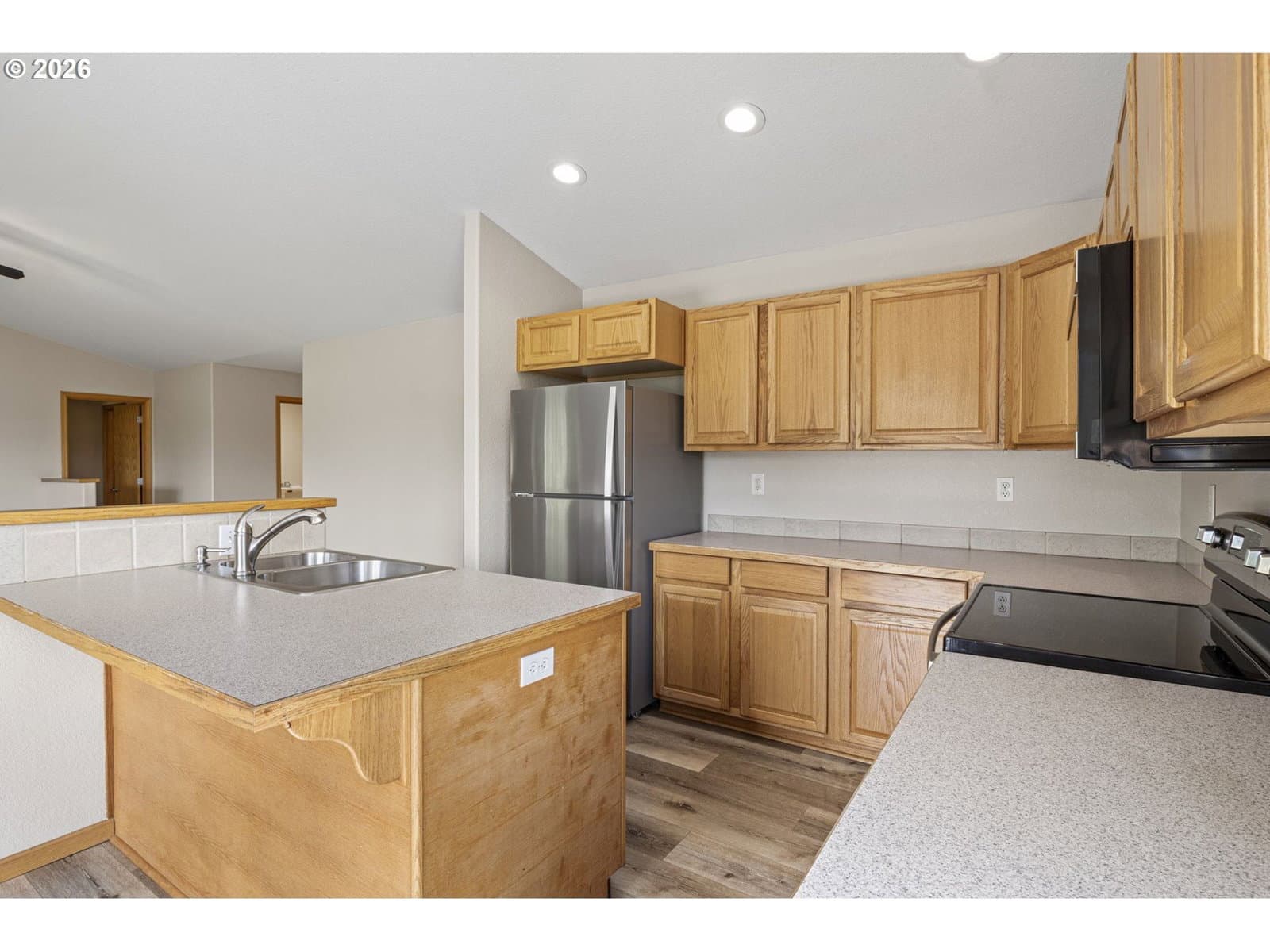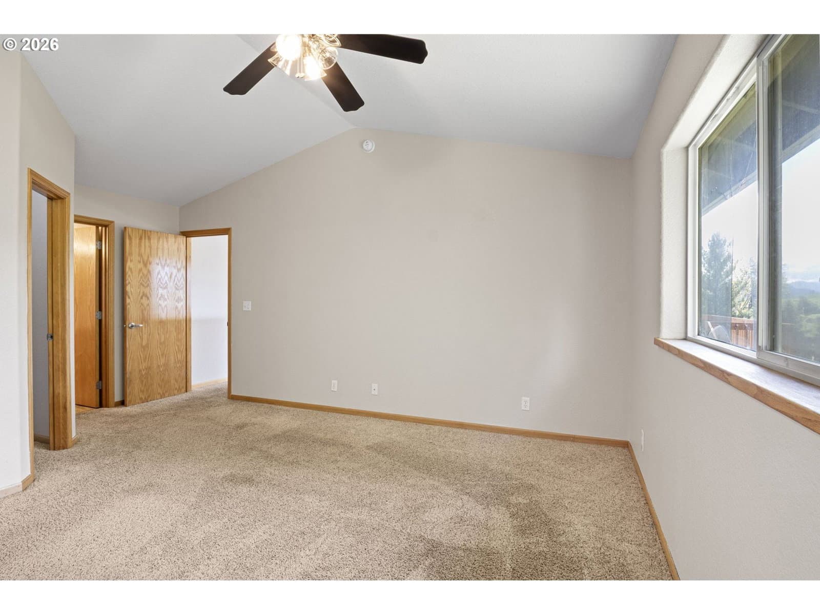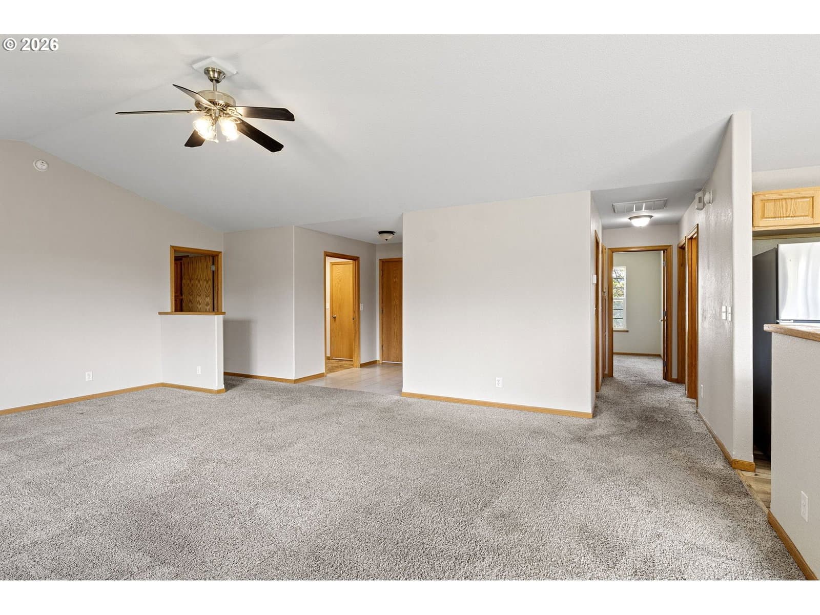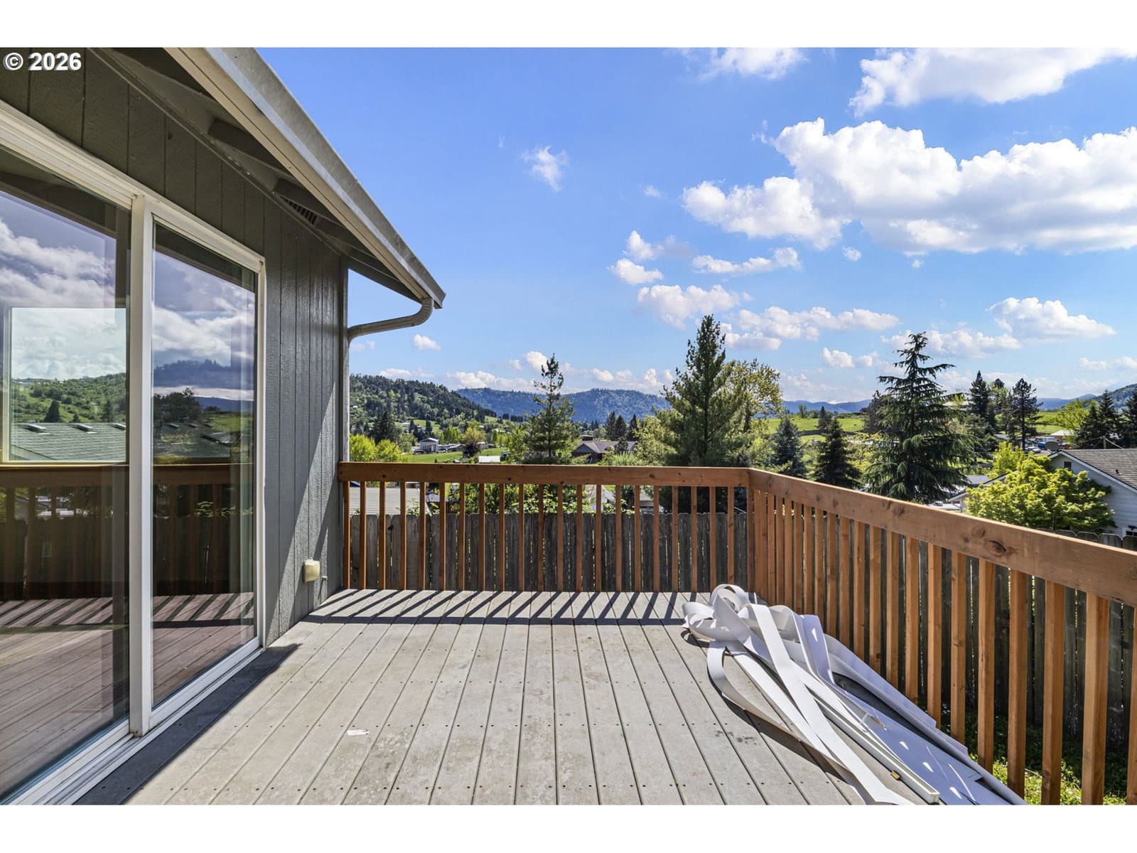 This property is a newer 3 bed 2 bath home that is move-in ready with fresh interior paint, newer flooring, and stainless steel appliances. Features a large primary bedroom with bathroom attached and a walk in closet. The open kitchen flows into to main living room that include desirable vaulted ceilings. You’ll find central heating and air conditioning throughout the home. An oversized laundry room adds convenience and is attached to a 2 car garage for ample storage. Just off of the kitchen there is a large sized deck in the backyard that has beautiful views which are great for both relaxing, hosting and entertainment.