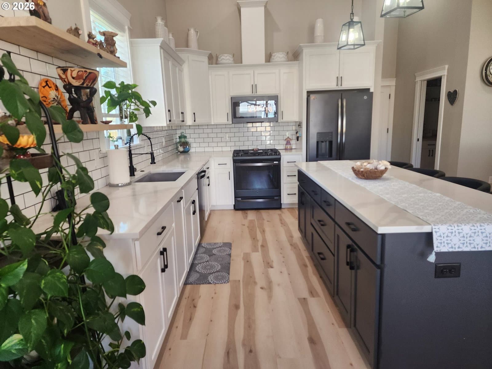 Lovely low maintenance home with all the features and no CC&Rs. Vaulted ceilings, great room with gas fireplace, Primary bedroom located away from the other two rooms and includes large walk in closet and bath. Large kitchen with eating bar, quality cabinets and all the kitchen appliances stay! Walk through the exterior door from the dining area onto the covered porch in the fenced manicured yard. Bonuses include: garden shed, gutter guards and room to garden through the gate in the back. Make this great find your own!