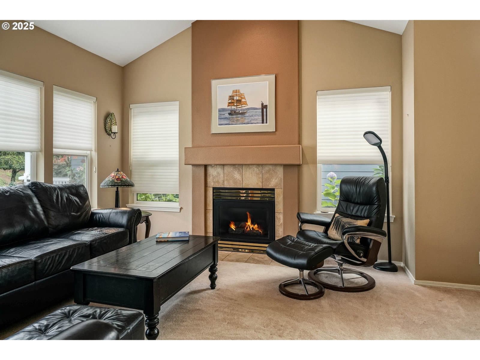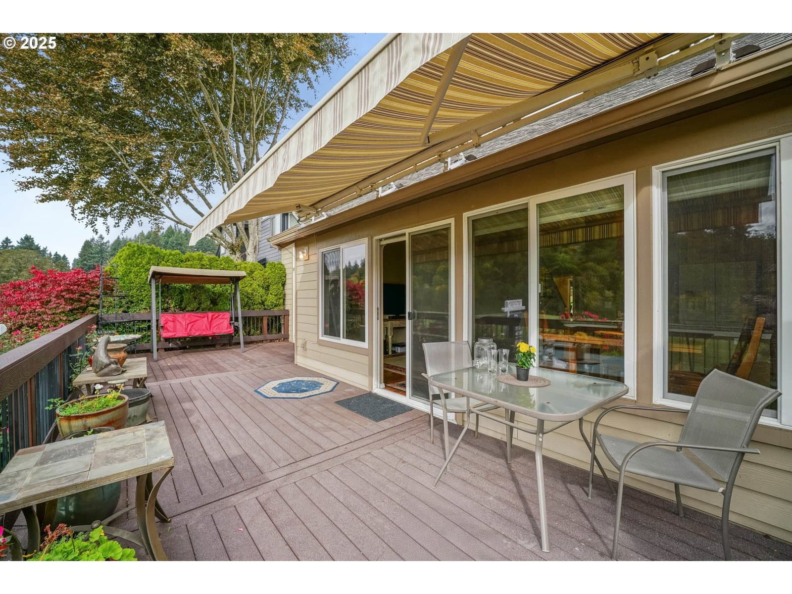 Golf course living at its finest at Creekside Golf Estates. This charming 3 bed, 2.5 bath home is situated on 1st fairway, great to sit on the large deck and watch the show. Thoughtful design, with primary suite conveniently located on the main level, exudes style and comfort. Modern updates exhibit contemporary living. Soaring vaulted ceilings, arches, expansive windows, quartz countertop in kitchen and 2 baths, and newer jetted tub in master bath. Deck offers a motorized cover and swing/rocker for sunny days!