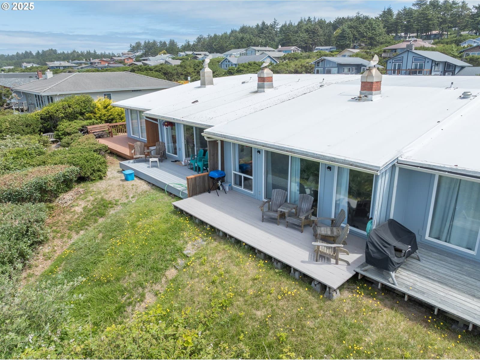 This Oceanfront property is a must see for yourself!! Located in the desirable community of Sandpiper Village, enjoy breathtaking sunsets and direct beach access just steps from your door. This beautifully updated unit features modern flooring, new quartz countertops, black SS appliances, and a new Kohler walk in shower. The open-concept living space is enhanced by vaulted ceilings and a cozy fireplace, creating the perfect setting for relaxing or entertaining with panoramic ocean views.