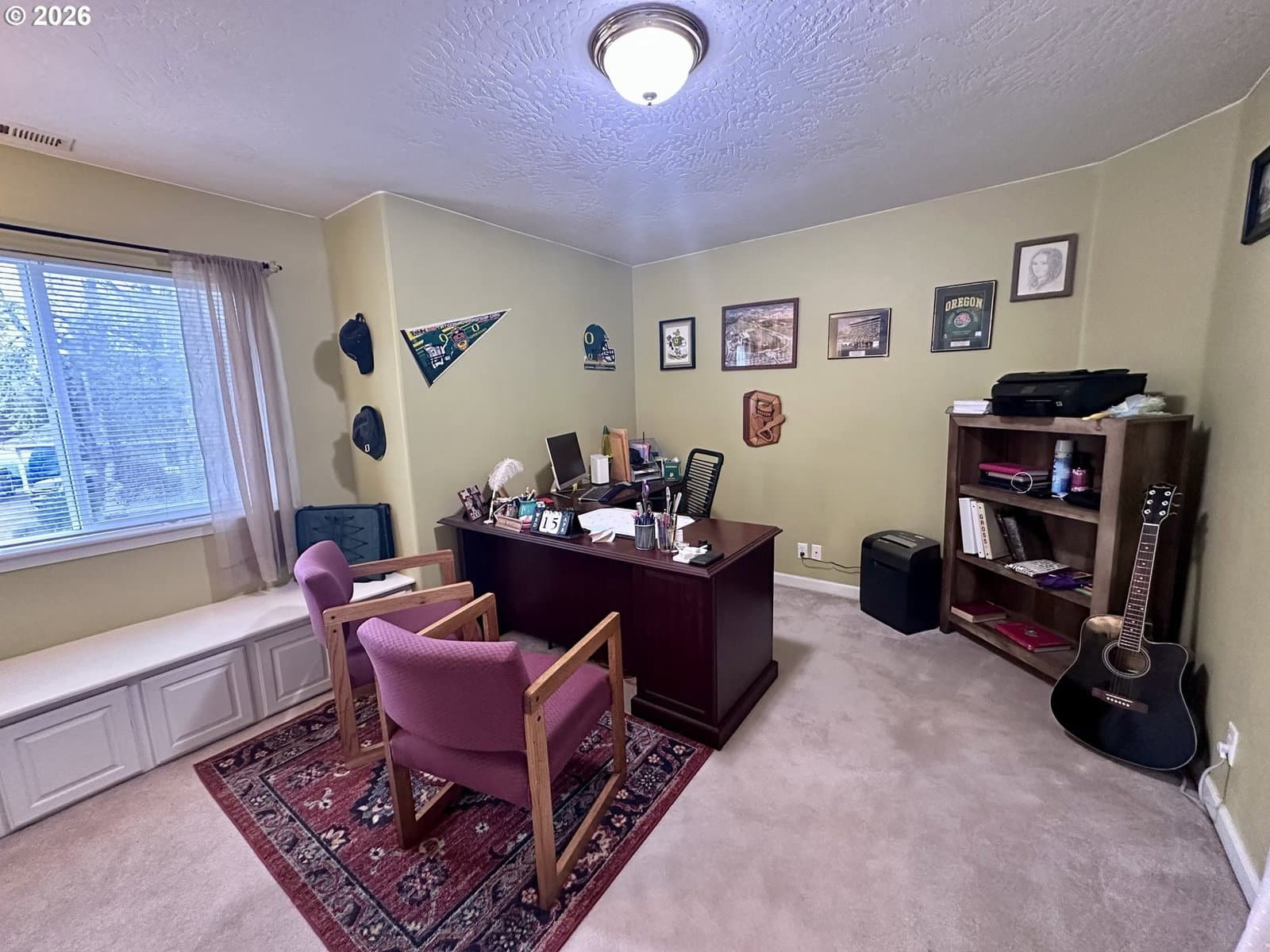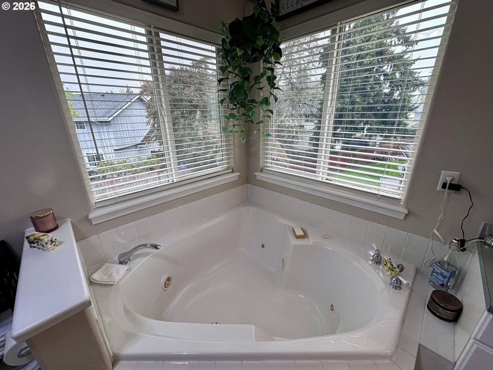 Beautifully maintained 4-bedroom, 2.5-bath custom home in the heart of Thurston. This spacious two-story residence offers over 2,200 sq ft of living space along with meaningful updates, including a new roof (2022), gas furnace and A/C (2022), and water heater (2023). The upstairs bathroom was tastefully remodeled in 2023, and all toilets have been updated. The main level features rich hardwood floors that create a warm, inviting atmosphere ideal for both everyday living and entertaining. Two gas fireplaces add comfort and character, one in the living room and another in the primary suite. A dedicated main-floor laundry room adds convenience. The kitchen is well-equipped with a gas cooktop island, built-in oven, garden window, and ample storage, offering both functionality and charm. Upstairs, the spacious primary suite serves as a true retreat with a double vanity, jetted soaking tub, separate shower, and its own fireplace. The layout offers a great balance of formal and casual living spaces, providing flexibility for a variety of lifestyles. Step outside to enjoy beautifully manicured front and back yards, a large private deck, and a gas-heated above-ground pool. Additional outdoor features include 2 storage sheds, fire pit area, and a dog kennel with direct access through a family room dog door. Situated on an oversized lot, the property also includes RV parking and an attached two-car garage with keypad entry. All of this in a quiet, desirable neighborhood.