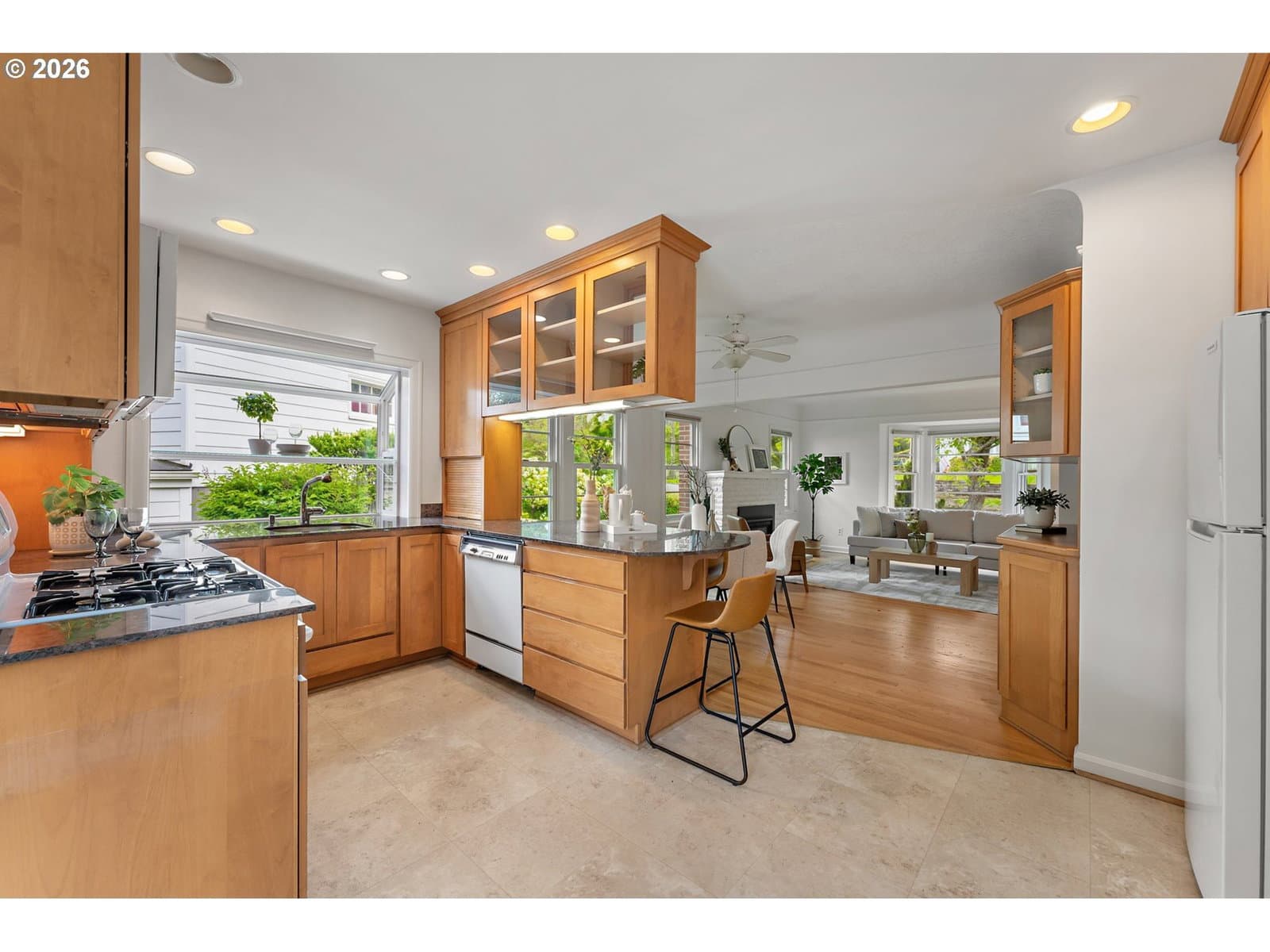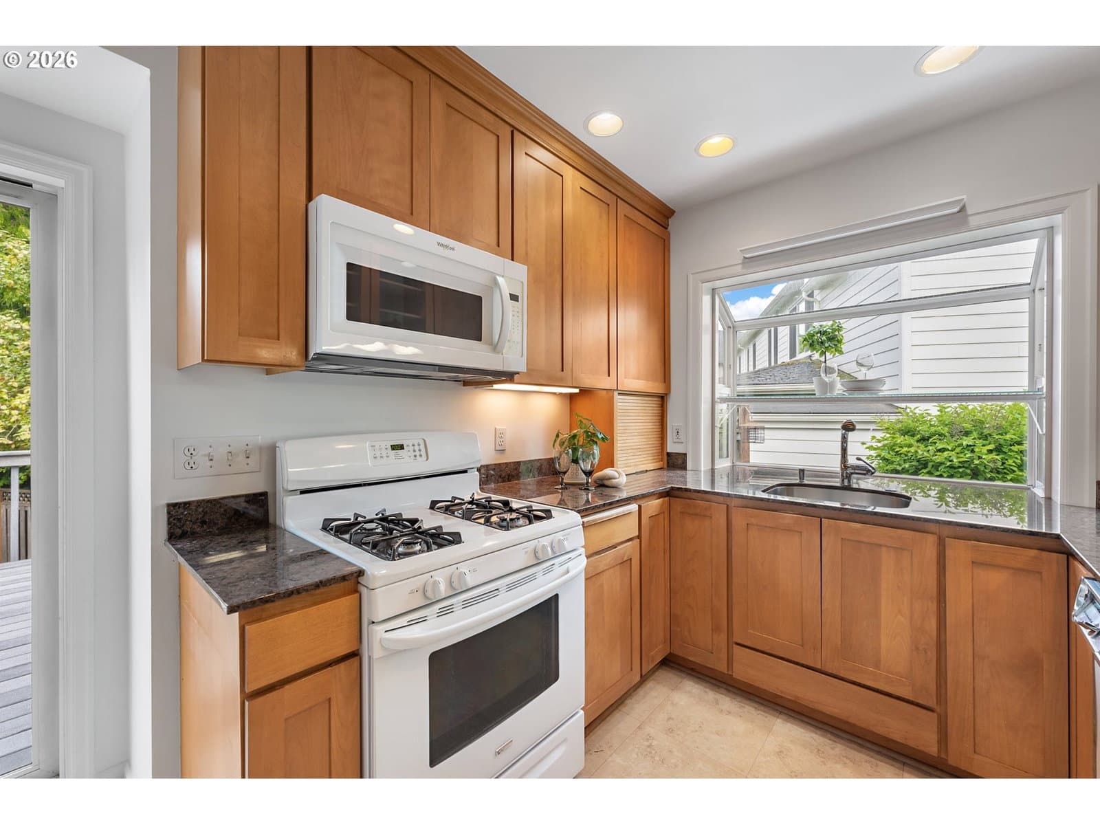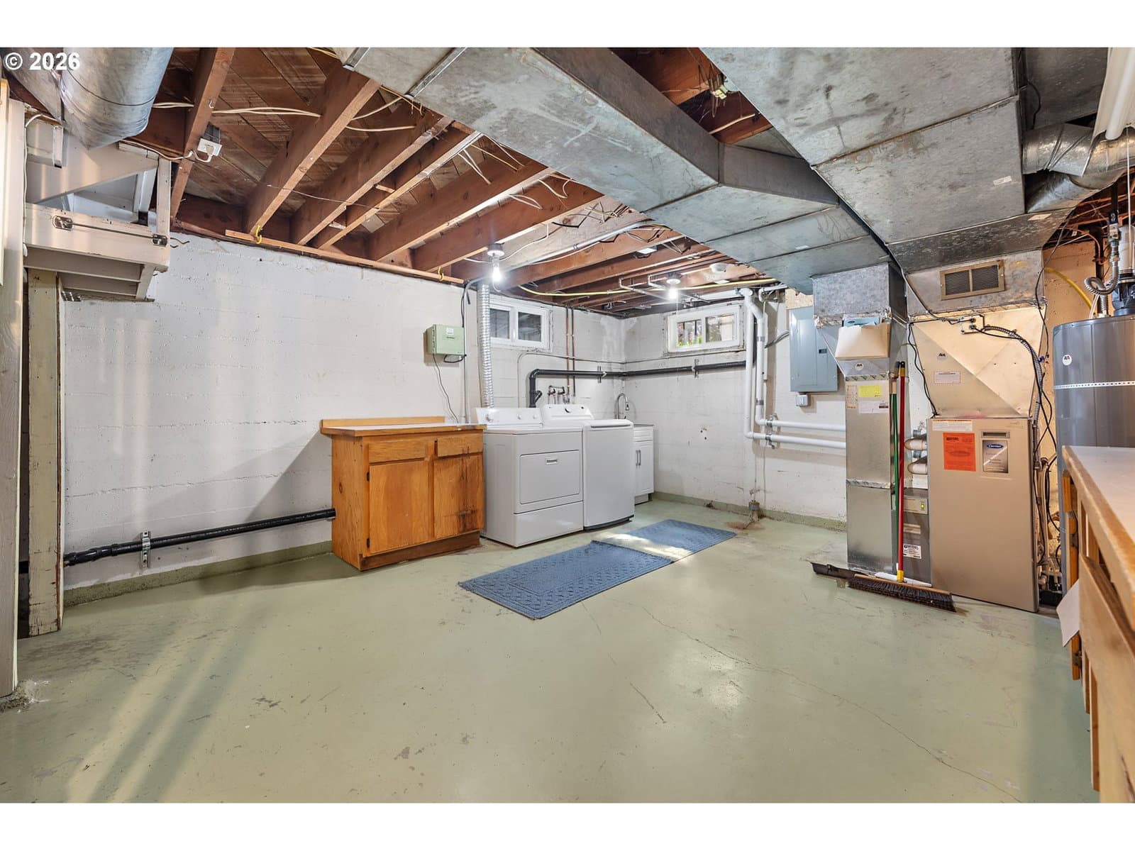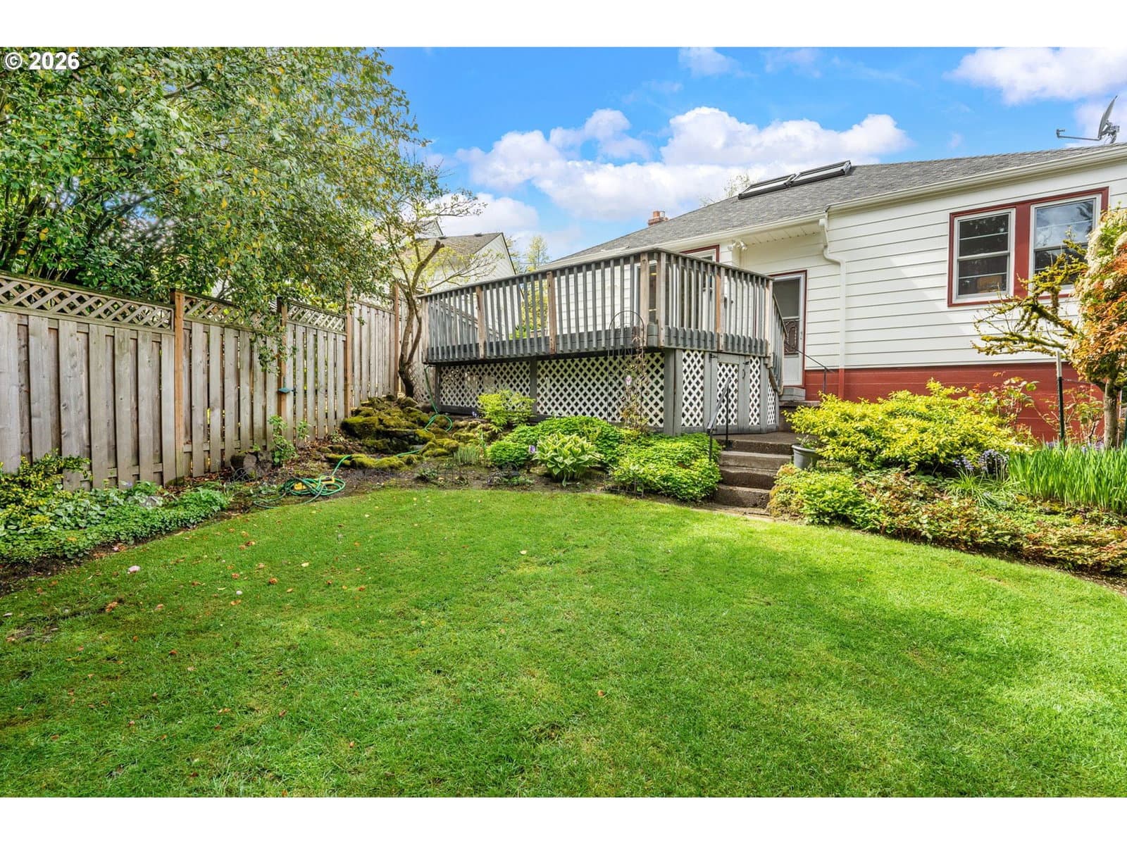 Welcome home to this 1947 classic! This house exudes the charm and simplicity of the late 1940's, with all the modern amenities you desire. The large living room features a bay window, hardwood floors and a gas fireplace. The living room flows into the dining room with a large picture window and built-in hutch. The tastefully remodeled kitchen has granite counters with eating bar, custom cabinets and lots of storage. Don't forget to pull down the attic ladder to find a very special bonus space, filled with skylights. Yoga space? Office? Two bedrooms on the main with hardwood floors. The basement is full of possibility. Tall ceilings, and second fireplace, are just begging you to finish this space. Imagine the fun you will have entertaining on the trek deck overlooking the beautiful fenced yard. Tuck under oversized garage. Air conditioning, newer waterline & sewer line, Anderson windows. All this convenient to downtown, freeways, markets, restaurants, parks and more. [Home Energy Score = 1. HES Report at https://rpt.greenbuildingregistry.com/hes/OR10246082]