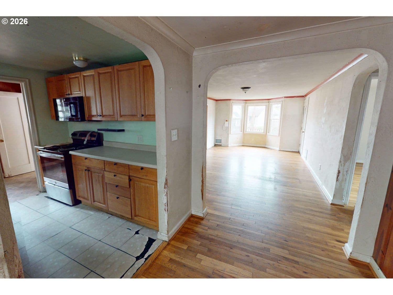 Cottage fixer has great potential for sweat equity! A few coats of paint and kitchen floor would do this home wonders! Hardwood floors throughout the bedrooms and living areas! Coved archways to kitchen & dining rooms. The 22 X 12 living room has a bay window overlooking entry way. Home backs up to Kelly Butte and is easy commute to downtown, shopping, essentials, and more! Cash or Rehab Loan would be best, so bring your hammer and your vision!
