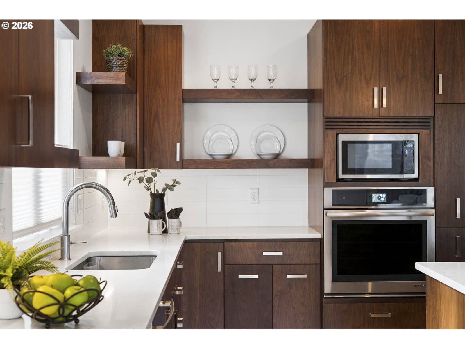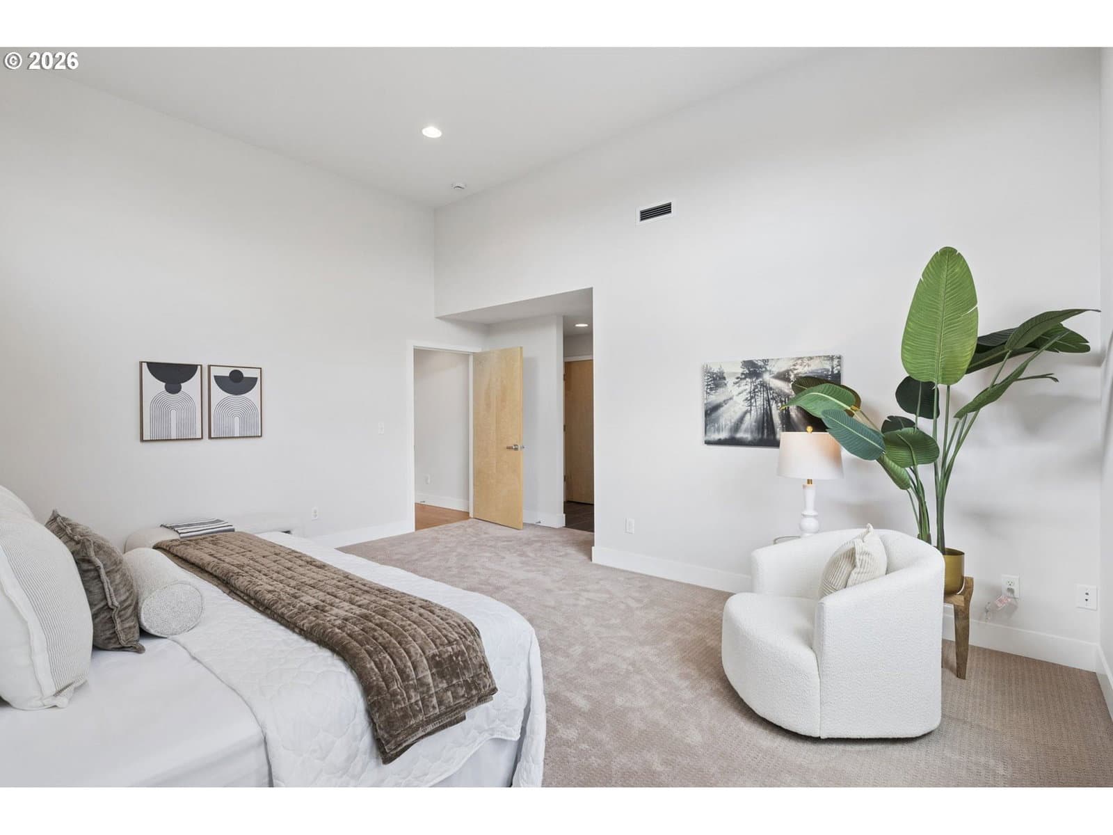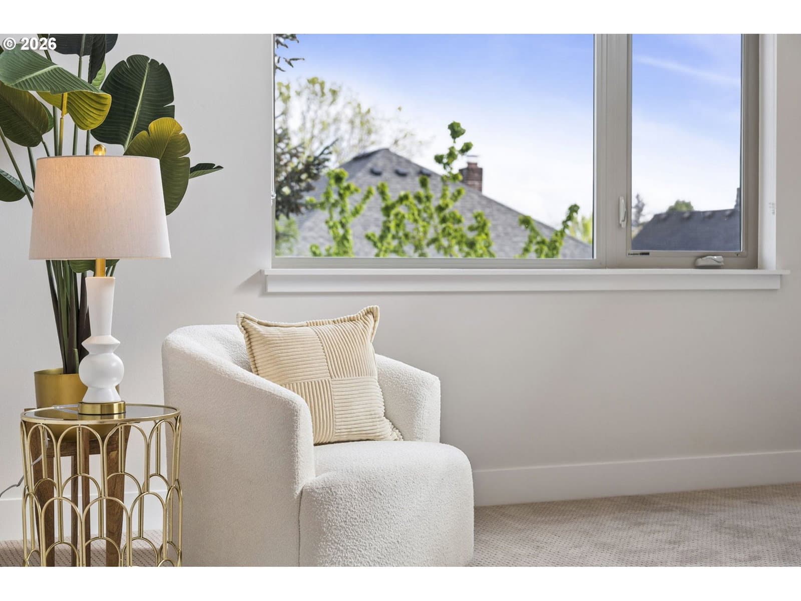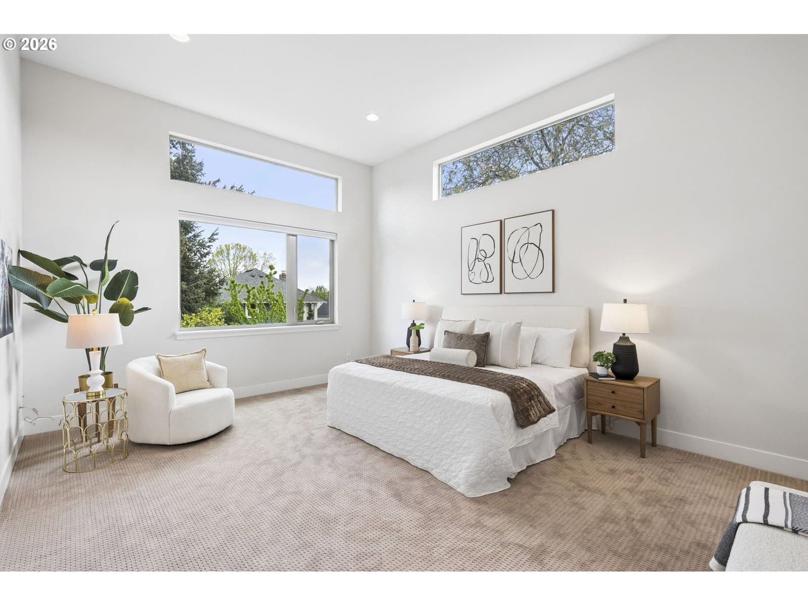 Immaculate modern masterpiece just steps from Dekum’s vibrant dining scene. This light-filled home features a spacious Great Room layout with soaring ceilings and beautifully finished hardwood floors—perfect for both everyday living and entertaining. A grand entry welcomes you with a generous foyer, private office/den, and striking staircase. The chef’s kitchen shines with rich walnut cabinetry, Caesarstone countertops, and a large island with seating—ideal for morning coffee or casual gatherings. The living room is anchored by a sleek gas fireplace, while floor-to-ceiling double doors open to a covered deck and fully fenced backyard—perfect for year-round outdoor enjoyment. Statement George Nelson pendant lighting elevates the dining area and stairwell. Upstairs, the vaulted primary suite offers a true retreat with a spa-inspired ensuite featuring a soaking tub, expansive walk-in rain shower, double vanity, and a spacious walk-in closet. Meticulously maintained and feeling like new construction, this home is complemented by a professionally landscaped yard—ready to enjoy from day one.