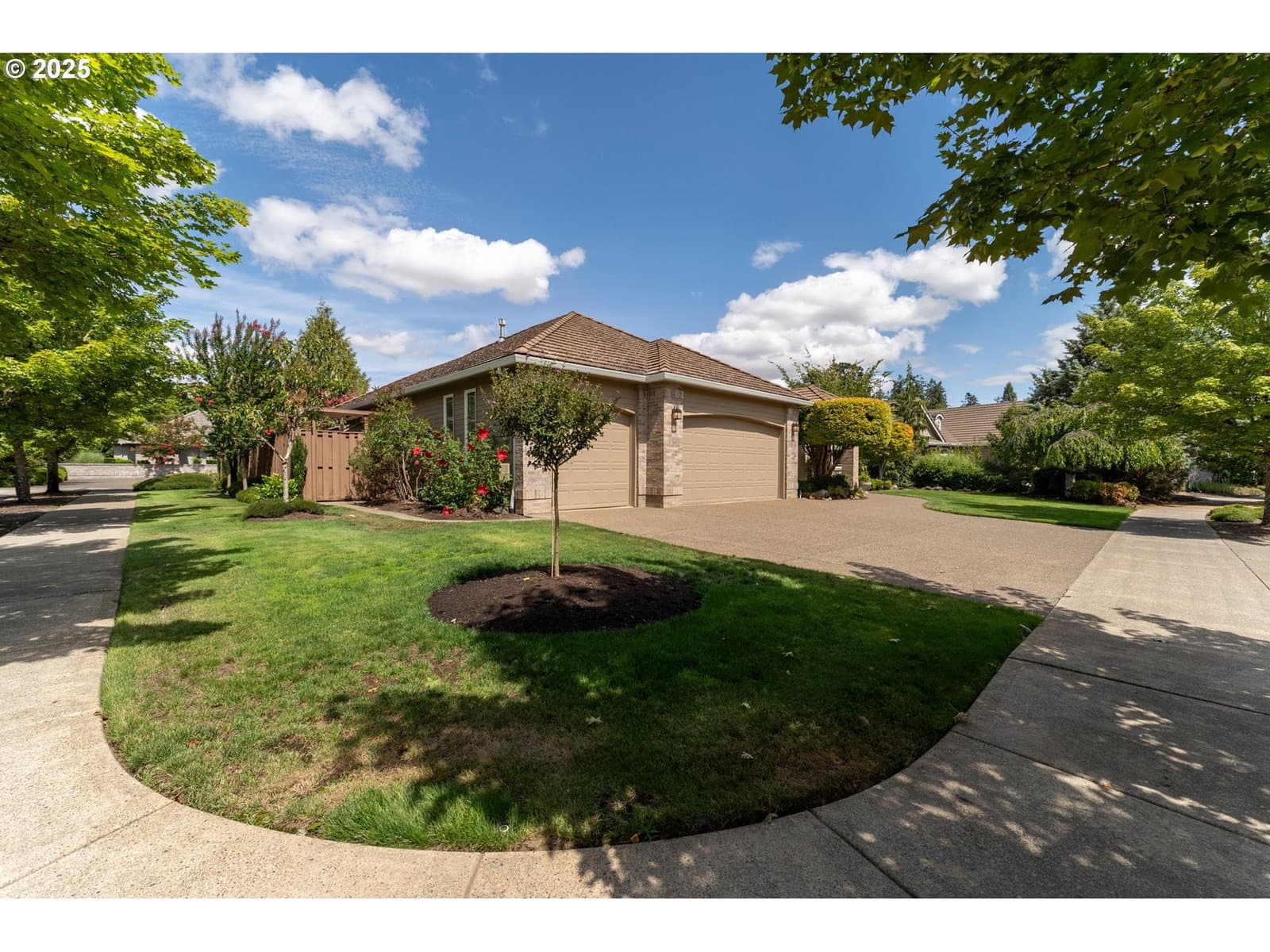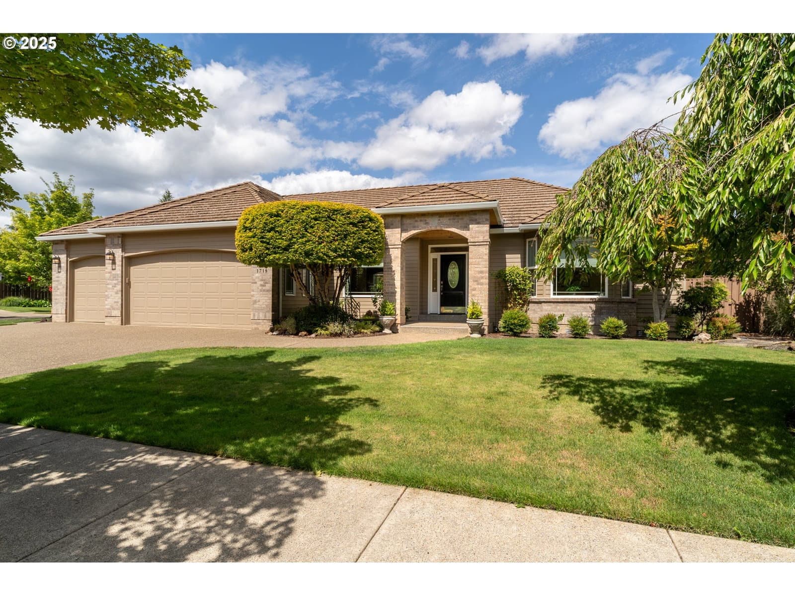 Single-level living soars to new heights in this elegant corner lot home nestled in the highly sought after Michelbook 6th Addition. This custom built home with its open floor plan, vaulted cielings and abundance of windows in the main living spaces welcomes you in. A gas fireplace and rich hardwood oak floors promise comfort, as does the kitchen with updated cooktop, cherry cabinets, granite counters, spacious island, and walk-in pantry.The primary suite is a sanctuary only steps away from the rest of the home with sunken jetted tub, walk-in closet, and its own entrance to the backyard. Twoadditional bedrooms as well as an office/flex space offer room for living your best life.The backyard delights with a private courtyard, gazebo, and garden areas perfect for a quiet afternoon with a book or a party with your friends. Fully fenced and beautifully landscaped, the opportunities for outdoor living abound. The expansive three-car garage allows space for a workshop, golf cart, or extra storage. And with a newsump pump, all of the practicalities are covered. Whatever you are looking for—comfort, beautiful entertaining spaces, an escape from the world—this home will provide. Lovingly maintained and thoughtfully updated, this home is the oasis you'vebeen looking for.
