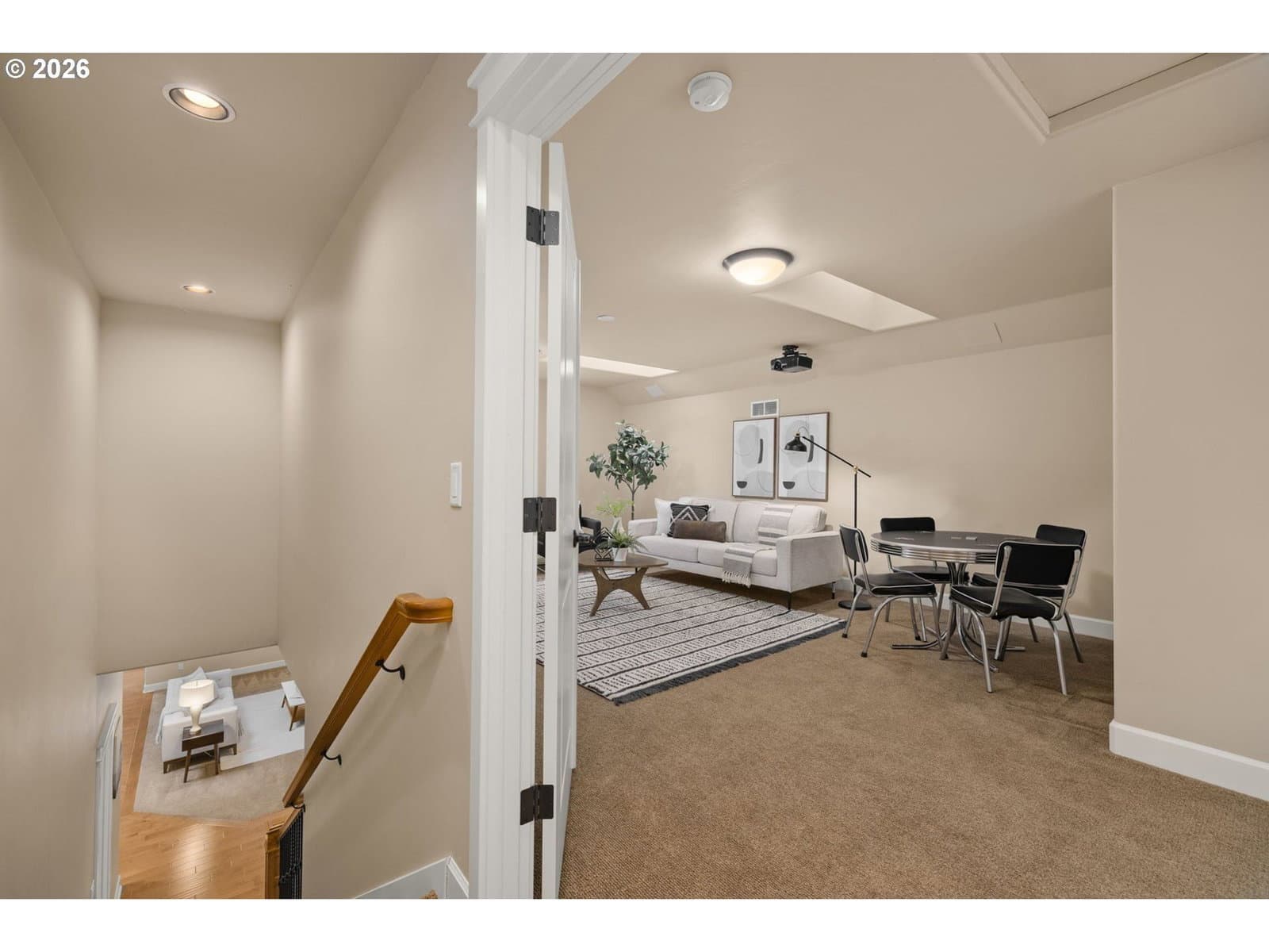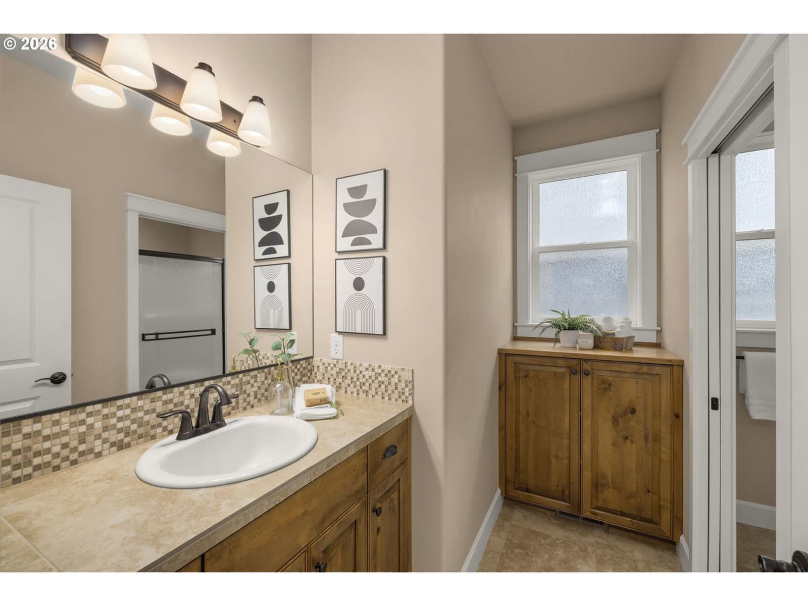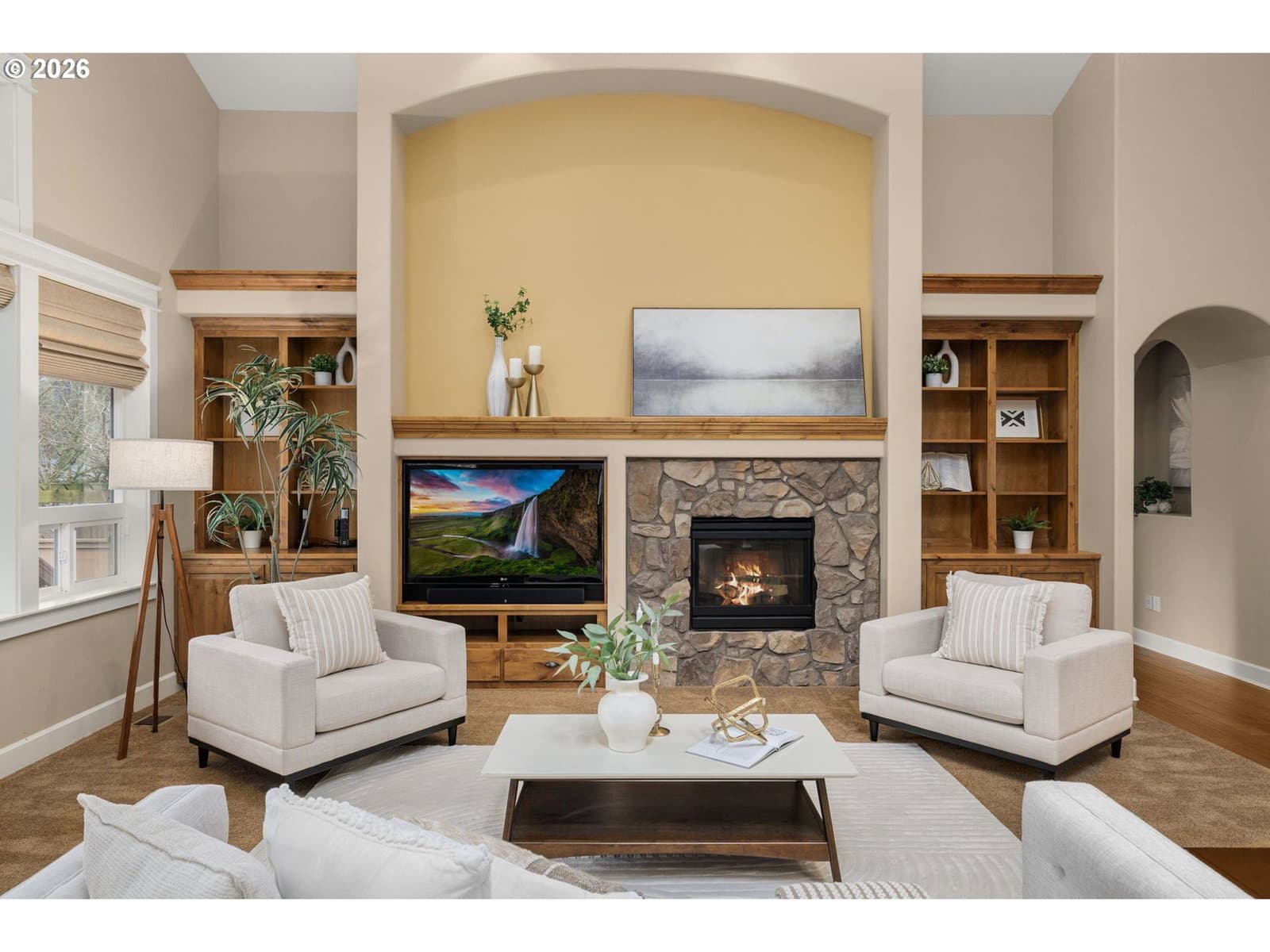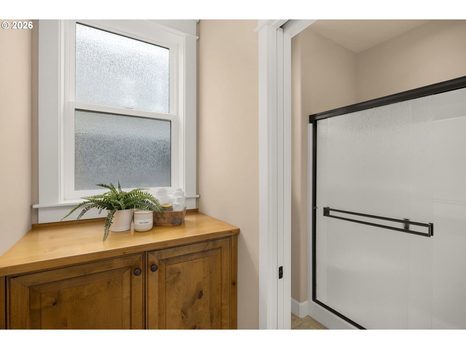 True single-level living defines this beautifully designed custom residence by Pahlisch Homes, featuring a primary suite and two additional bedrooms on the main floor, plus a flexible bonus room upstairs.The vaulted open living area seamlessly connects the kitchen, dining, and living room -which is anchored by a stone surround gas fireplace with custom built-in cabinetry.The kitchen offers modern white cabinets, a large granite island, gas range, built-in microwave, pantry, and distinctive raindrop-glass windows beneath the cabinetry that bring in natural light while maintaining privacy. The dining area opens directly to a covered cedar deck, creating an easy and inviting indoor-outdoor connection.The main-level primary suite features a frameless glass step-in shower, walk-in tub, granite double vanity, and large walk-in closet. Two additional main-level bedrooms share a full bathroom, with one bedroom showcasing custom floor-to-ceiling built-in shelving and a rolling ladder, which doubles as a great home office.Upstairs, the fourth bedroom or bonus room sits behind French doors and offers vaulted ceilings, skylights, a built-in projector and screen, workstation, window seat, full bathroom, and additional storage—an ideal media room/play room or guest suite.Additional highlights include a laundry room off the garage—perfect for a drop zone, a hall closet with wine storage, centralized lighting and sound controls, EV charging, a tankless water heater, and a fully fenced, low-maintenance yard with pavers and a rock garden.Conveniently located near Scholls Ferry and Hwy 217 with easy access to Beaverton, Portland, the westside tech corridor, parks, dining, and Washington Square Mall. This well-maintained beauty is light and bright with a great functional floorplan and everything you need to move right in!