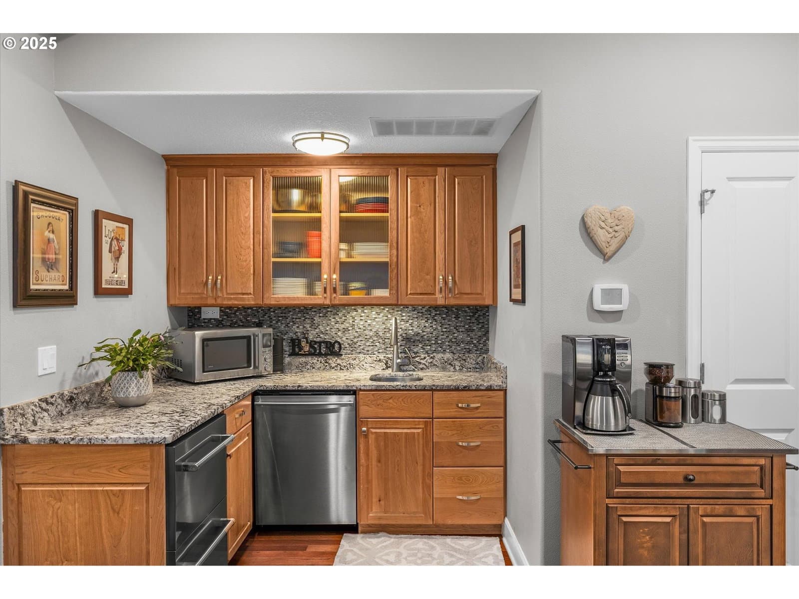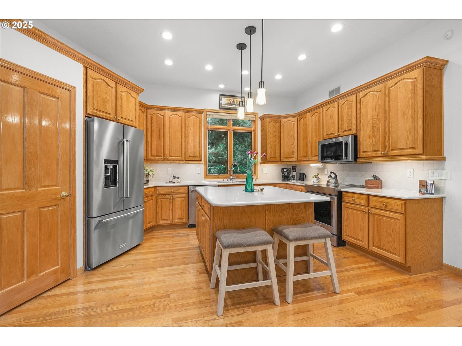 Reduced $50K. Open Sun. 1/25 1-3pm. Custom Luxury Retreat Backing to Green Space | Over 3,800 Sq Ft | Happy Valley -Tucked away on a private drive in a quiet, tree-lined cul-de-sac, this custom-built home offers over 3,800 sq ft of refined living space and a rare sense of peace and privacy. Surrounded by tall trees and a seasonal creek, this home feels like a retreat—yet is just minutes from Happy Valley Nature Park. Step inside to a light-filled, open floor plan with soaring ceilings, hardwood floors throughout, and expansive Pella windows that frame serene green views. The gourmet kitchen features quartz countertops and seamlessly flows into the spacious dining and living areas—perfect for entertaining or unwinding. The top-level primary suite is a true sanctuary with a spa-like bath, soaking tub, walk-in shower, and an oversized custom closet that’s sure to impress. A separate family room with a striking stone fireplace offers flexible space for work, play, or relaxation. A private guest suite adds extra versatility—ideal for visitors or potential rental income. We have a solid Airbnb rental history. The downstairs features a beautiful family room, 2 bedrooms (a downstairs primary), kitchenette, full bathroom and loads of storage. Rents range from $140 to $250 per night. Outside, enjoy gorgeous, landscaped perennial gardens that bloom through all seasons, along with the peaceful sounds of birdsongs and the nearby seasonal creek. Additional features include Premium building materials throughout, Oversized windows for natural light in most rooms, hardwood floors, high ceilings, and thoughtful design, backs to green space for ultimate privacy. Just a short walk to Happy Valley Park with concerts, trails, splash pad, sports fields, skate park, and more. This is more than a home, it’s a lifestyle of comfort, beauty, and connection to nature. Deck space approx. 274 sq ft & Patio space: approx. 1,023 sq ft.Home includes $250K of improvements & upgrades.