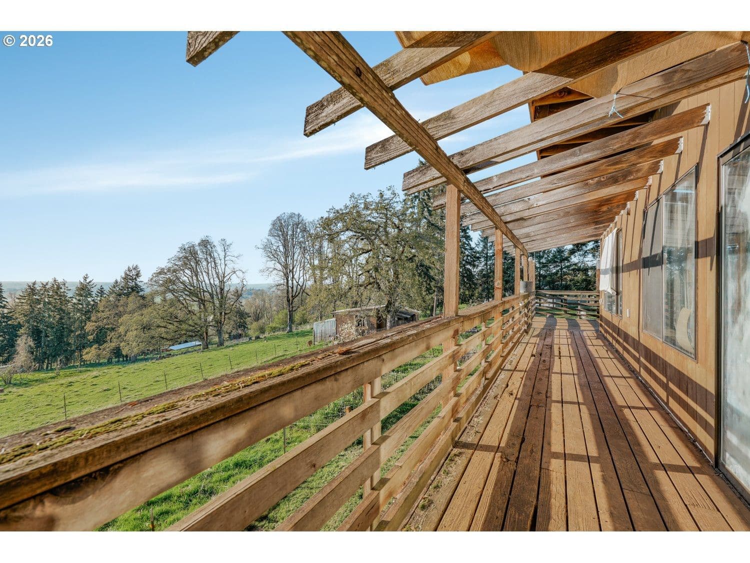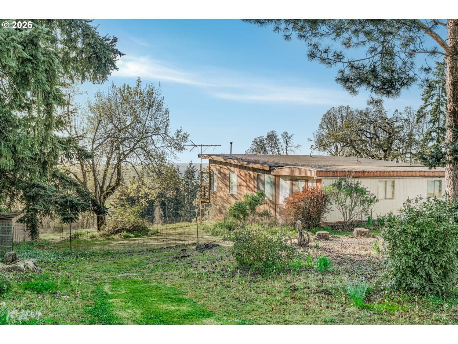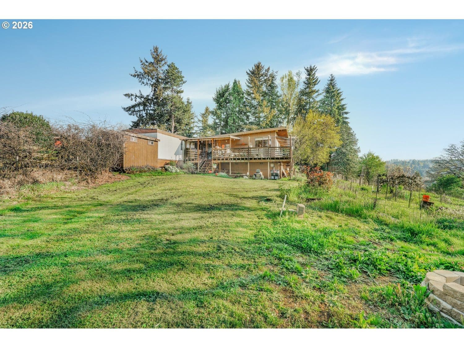 Opportunities like this rarely come to market! What an incredible opportunity! This property has never been sold before and was the original first lot established on Prospect Dr.Situated on 2.37 acres along a quiet stretch in Molalla, the property offers sweeping, breathtaking views of the Willamette Valley. The land is the true highlight, featuring gently sloping terrain and a fully fenced yard—ideal for a small hobby farm, garden space, or simply enjoying open acreage framed by one of the area’s most stunning vistas. From sunrise to sunset, the scenery provides a peaceful, expansive setting that feels distinctly Oregon.The existing four-bedroom, two-bath home is fully livable and offers a flexible single-level layout, though it would benefit from cosmetic updates. Natural light fills the main living areas, while the wraparound deck provides the perfect vantage point overlooking the valley below. A separate living area with its own entrance, kitchen, family room, and two additional bedrooms adds versatility for multi-generational living or guest accommodations.Whether you choose to renovate, rebuild, or enjoy the property as-is, this offering delivers space, privacy, and exceptional views that truly set it apart. Conveniently located near parks, outdoor recreation, and within easy reach of town amenities and commuter routes, it presents a rare combination of acreage, accessibility, and long-term potential.This is an as-is sale; the seller will make no repairs.