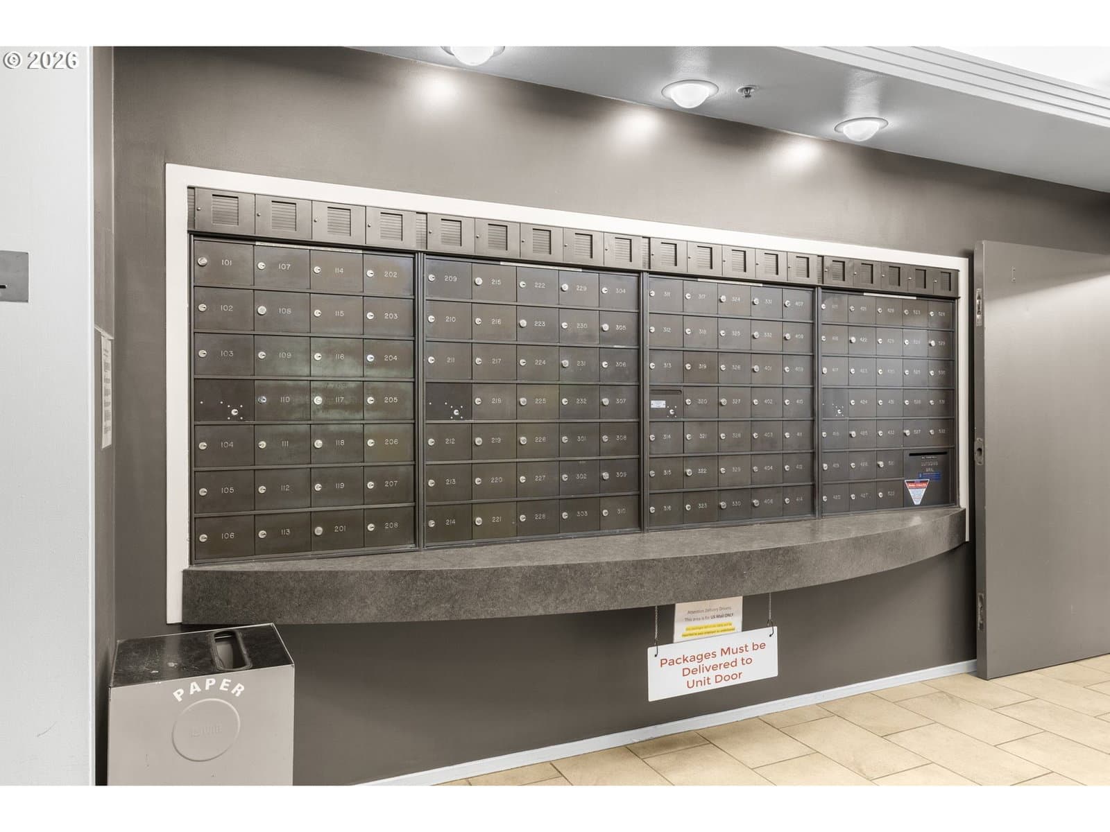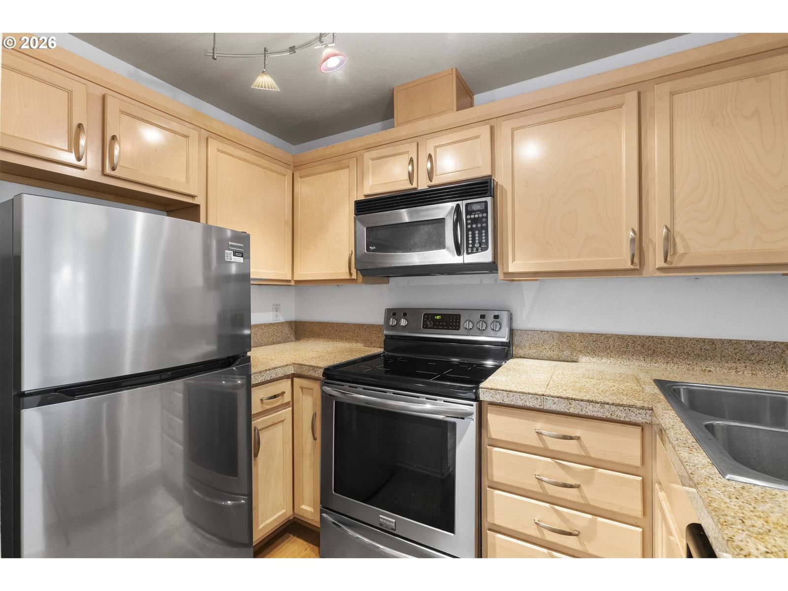 Live in the center of it all without sacrificing peace and privacy. Tucked inside the highly sought-after Cultural District and Park Blocks, this rare upper-level, single-story corner unit offers a unique blend of city energy and quiet retreat. Located within a secure, gated community, the home welcomes you through a beautifully landscaped courtyard with elevator access directly to your floor. Inside, the space feels calm, bright, and thoughtfully upgraded with fresh interior paint, a new refrigerator, high-efficiency induction range, newer sound-insulated windows, top-down/bottom-up blackout blinds, and a fully customized closet system in the primary suite. The open-concept layout flows seamlessly from kitchen to dining to living, ideal for both everyday living and entertaining. The kitchen features stainless steel appliances, granite countertops, and a breakfast bar. Step outside to your private, south-facing covered deck, perfect for morning coffee or unwinding after a day in the city. The spacious primary suite includes a walk-in closet and well-appointed ensuite bath, creating a comfortable space to recharge. A dedicated laundry room and abundant storage add everyday convenience. Residents enjoy amenities including a rooftop terrace with city views, fitness center, bike storage, and meeting room. HOA dues cover water, sewer, and garbage. This home also includes a deeded oversized parking space with direct access to Market Street and a large secure storage unit. With a Walk Score of 98 and Bike Score of 89, you are just blocks from theaters, museums, PSU, the streetcar, and the Saturday Farmers Market, offering the best of Portland living right outside your door.
