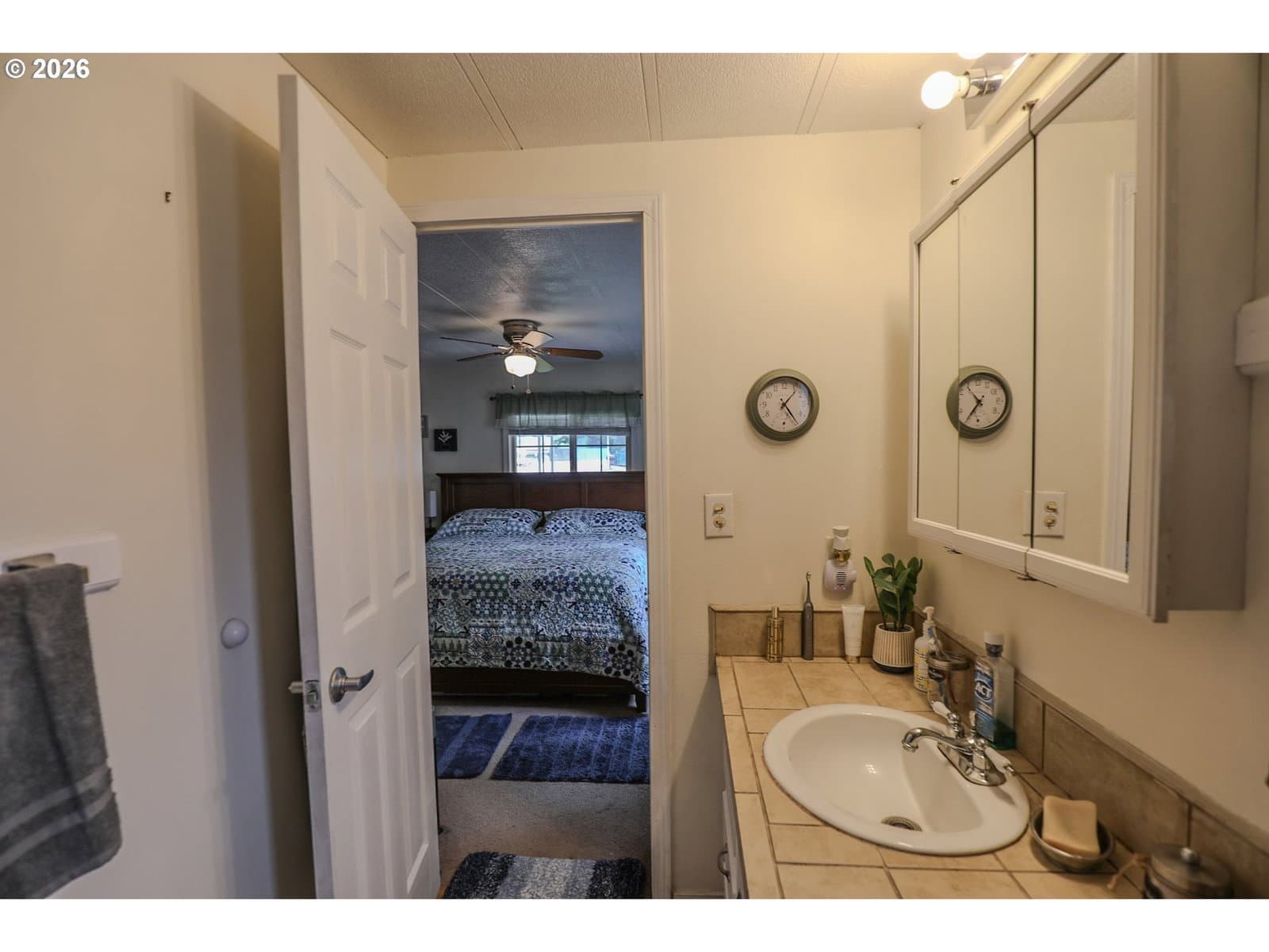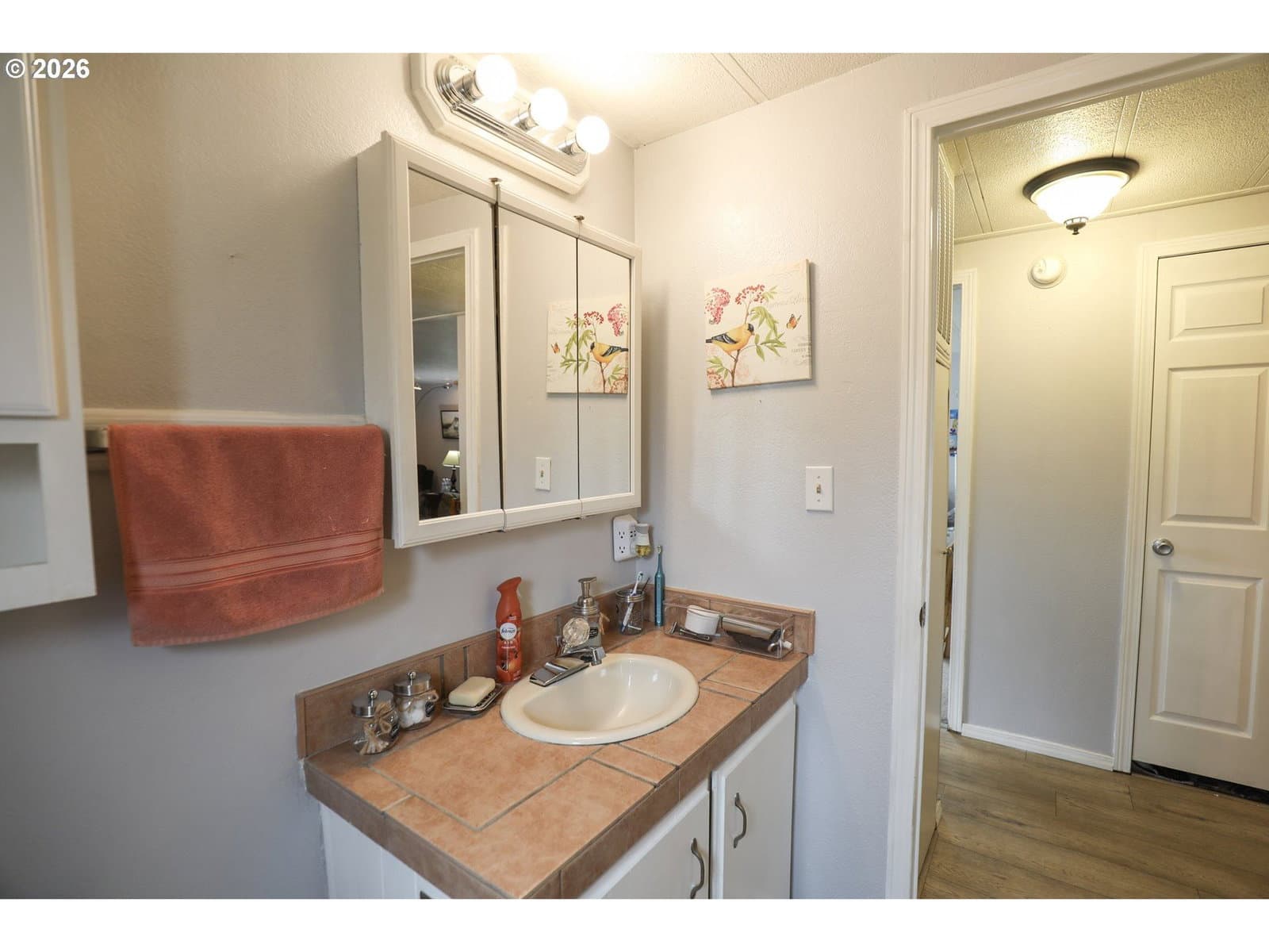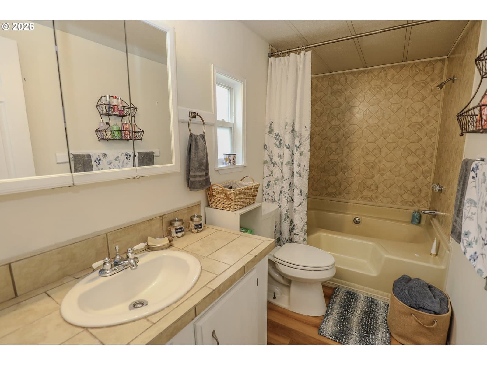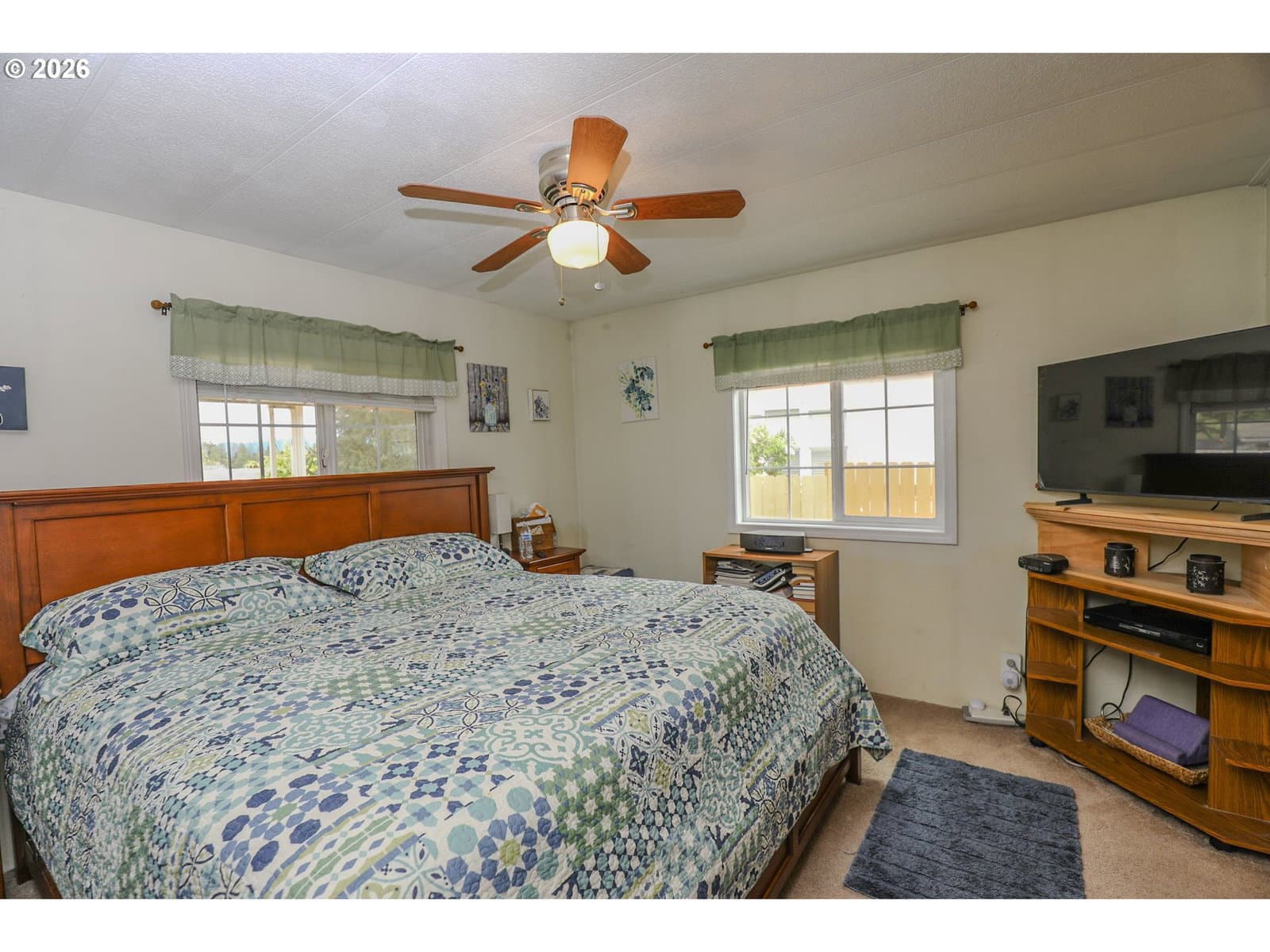 Welcome to 101 Molalla Ct. in Roseburg, located in the desirable Saddle Butte Mobile Manor community! This beautifully updated 3-bedroom, 2-bath home offers 1,152 sq ft of comfortable living with modern finishes throughout.Step inside to find stylish luxury vinyl flooring and a bright, inviting layout. The kitchen is a standout feature with gorgeous countertops, a tile backsplash, rich hickory cabinets, and stainless steel appliances—perfect for both everyday living and entertaining. The spacious living area is enhanced by an electric fireplace, creating a warm and cozy atmosphere.The primary suite offers a relaxing retreat with a soaking tub, while the additional bedrooms provide flexibility for guests, an office, or hobbies. You’ll also appreciate the laundry room with ample storage and the convenience of newer vinyl windows and an updated HVAC system for year-round comfort.Outside, enjoy a fully fenced yard with raised garden beds, a covered patio ideal for outdoor gatherings, and a corner lot that adds extra space and privacy. A storage shed with power provides great functionality for projects or additional storage needs.This well-maintained home combines comfort, style, and practicality—don’t miss your opportunity to make it yours!