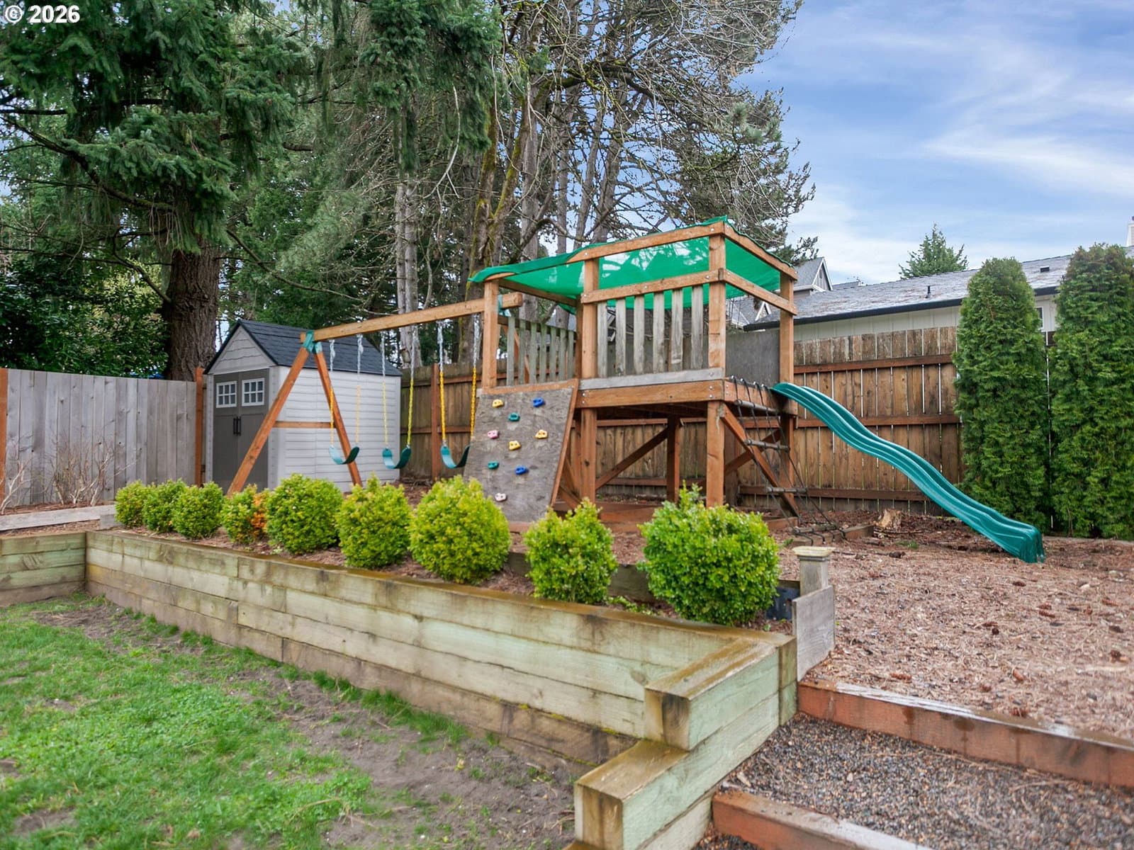 Cozy and charming one level home on a spacious .16 acre lot just moments from Old Town Sherwood. This 3 bedroom, 1 bath home offers comfortable living with laminate flooring, baseboard heating, and a warm gas fireplace in the main living area. The galley kitchen features ample cabinet space, stainless steel appliances, and opens to a bright dining nook with sliding doors that lead to the deck, creating a nice connection between indoor and outdoor living. Step outside to an awesome fully fenced backyard with plenty of room to enjoy the outdoors. The space includes a deck with covered awning, garden area, play structure, and room for entertaining, pets, or relaxing evenings. Extra parking to the side of the garage provides space for additional vehicles. Conveniently located near Snyder Park, local schools, and the shops and restaurants of Old Town Sherwood, this home offers comfort, charm, and a great location.All appliances included.