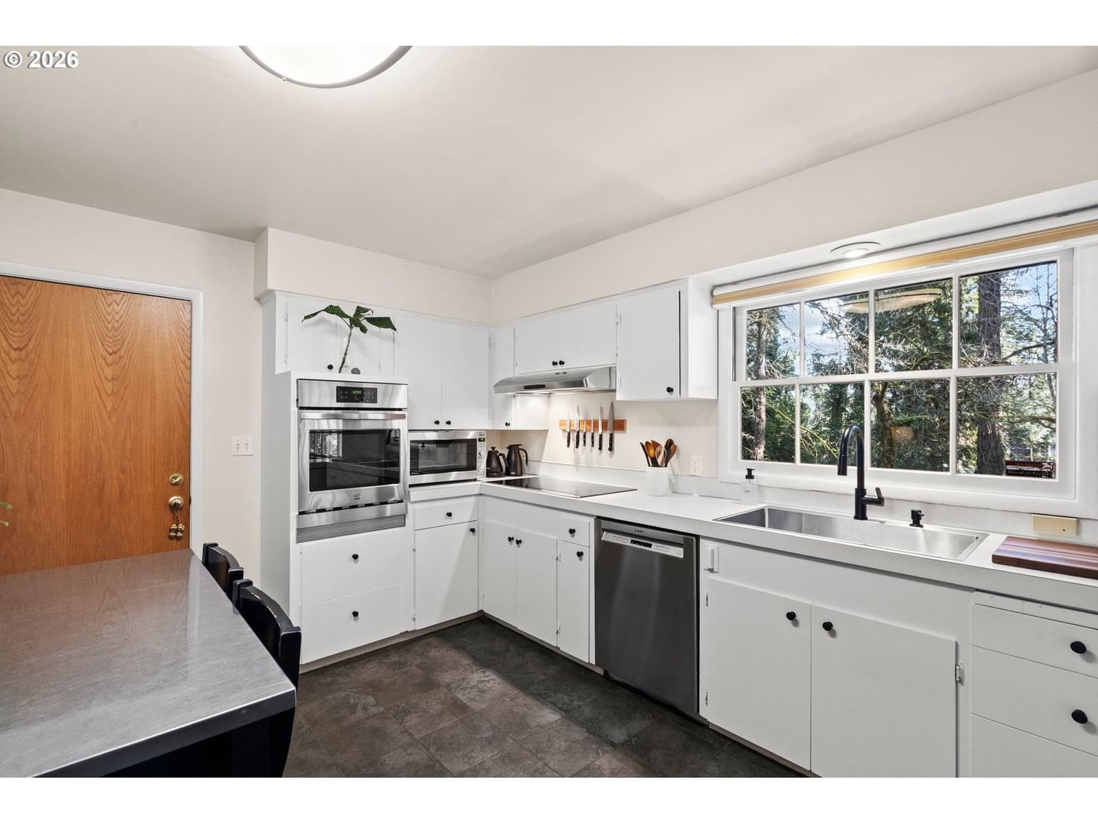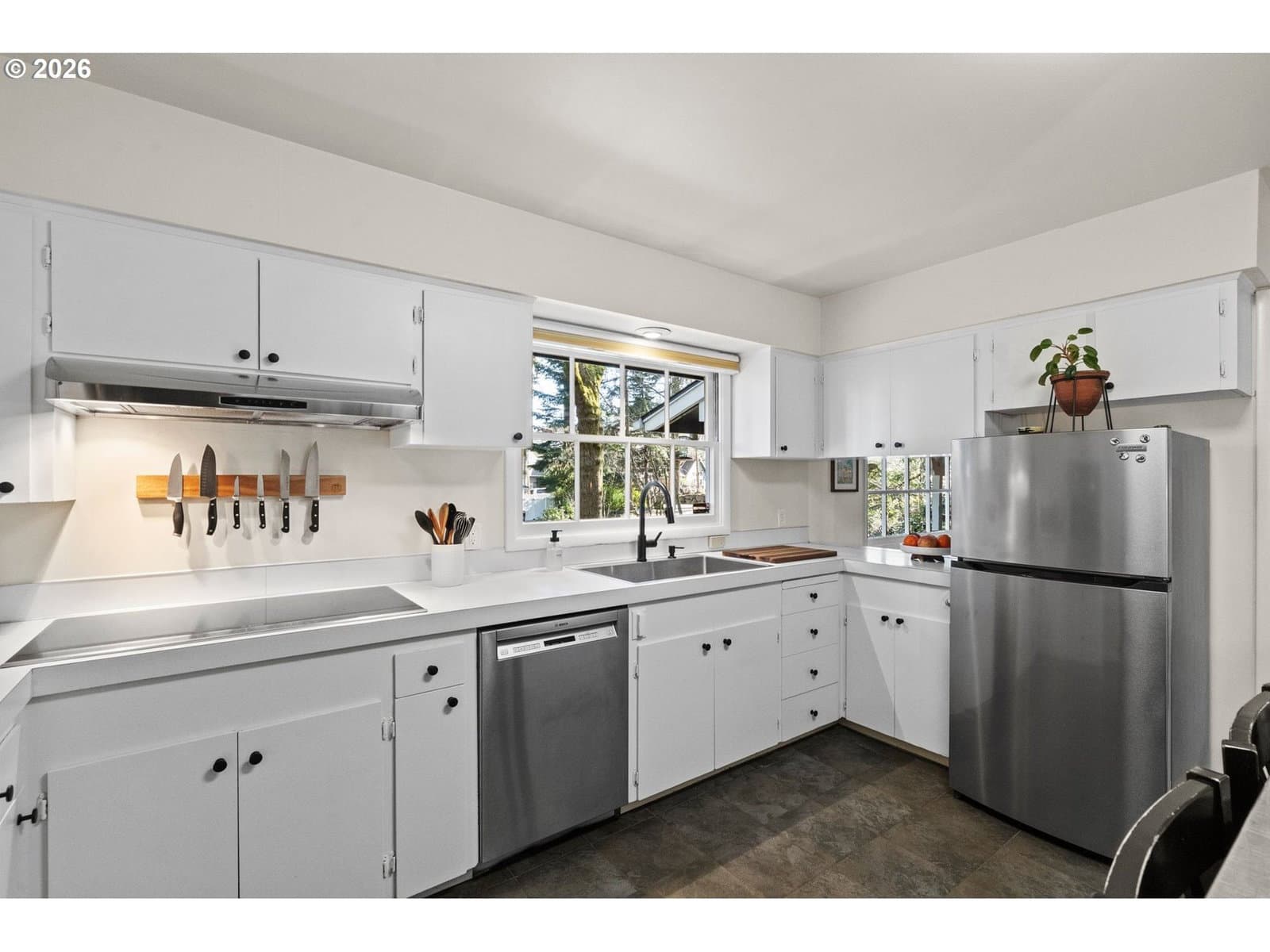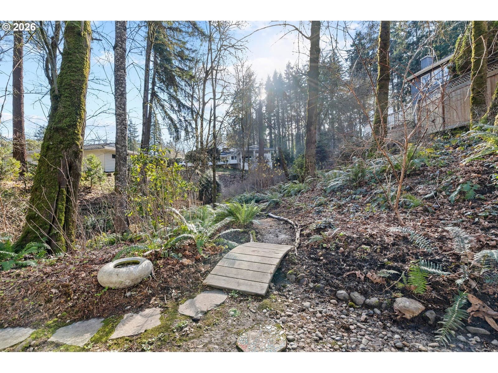 Impeccably maintained Lake Oswego home located just minutes from A Avenue, nearby parks, and scenic trails. The Platinum certified backyard offers a private natural retreat with a peaceful stream, footbridges, and mature landscaping.Designed for flexibility, the home features a multi-generational layout with an upper-level primary suite and a private lower-level suite complete with a separate entrance and spacious family room. Recent updates include a new forced-air furnace, EV charger, updated plumbing, and a new electrical panel.Oak hardwood floors, gas fireplaces on both levels, four bedrooms (three upstairs), three full baths, and an oversized two-car garage complete this move-in ready property—offering comfort, quality, and timeless Northwest living.
