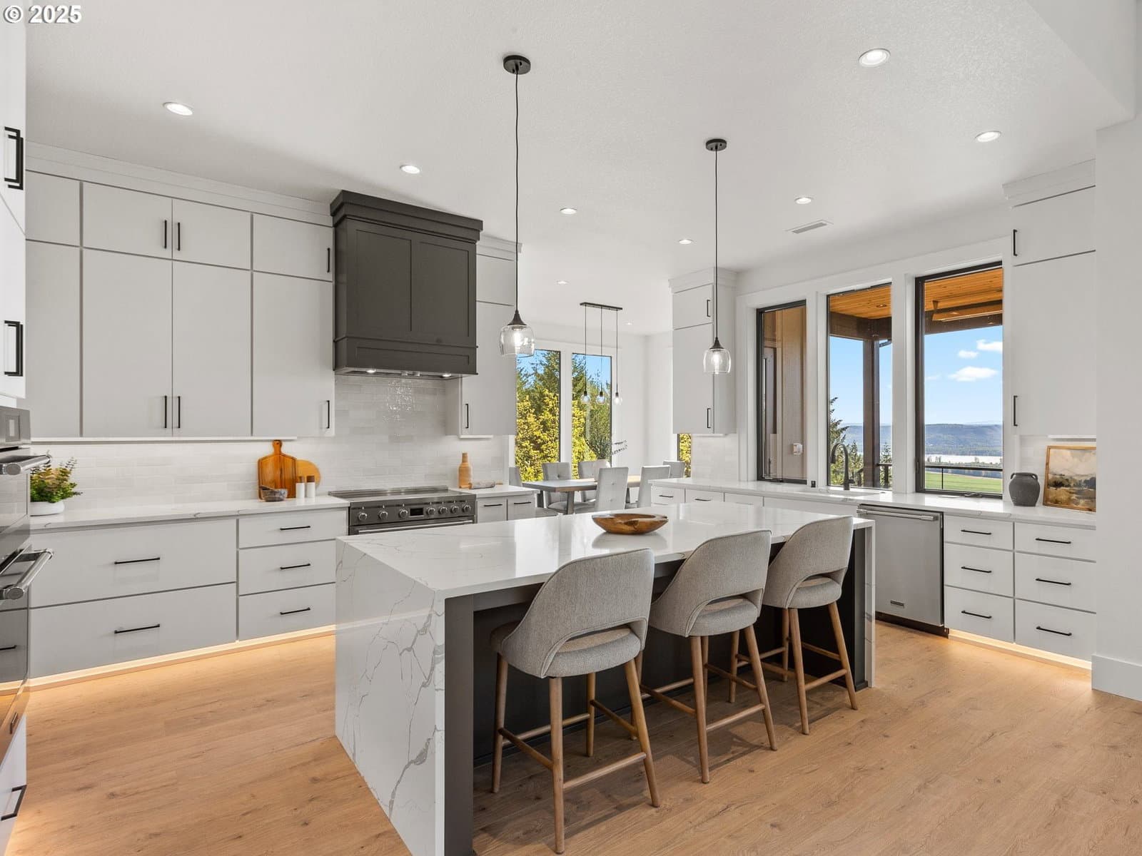 Another quality custom by Still Water Homes! Located in Columbia View Estates, this home has gorgeous views from dining room, kitchen, living room and primary! Deck overlooks valley and river with fan and heaters to enjoy outdoor dining. All the upgrades including induction range and Sub-Zero Refrigerator, plus pantry with appliance countertop, butler sink and beverage refrigerator. Luxurious primary suite includes soaking tub, plenty of closet space with vanity and stackable washer and dryer. Building site is level with plenty of room to add a shop!