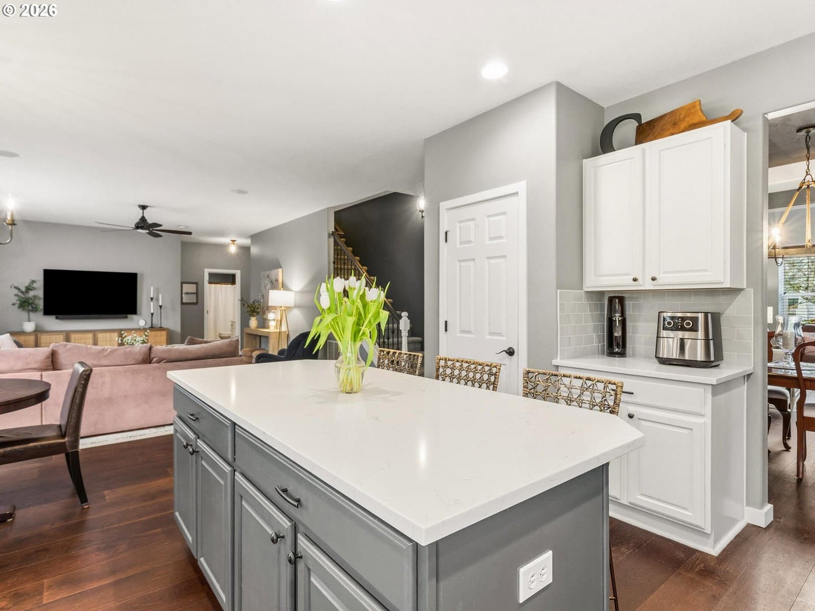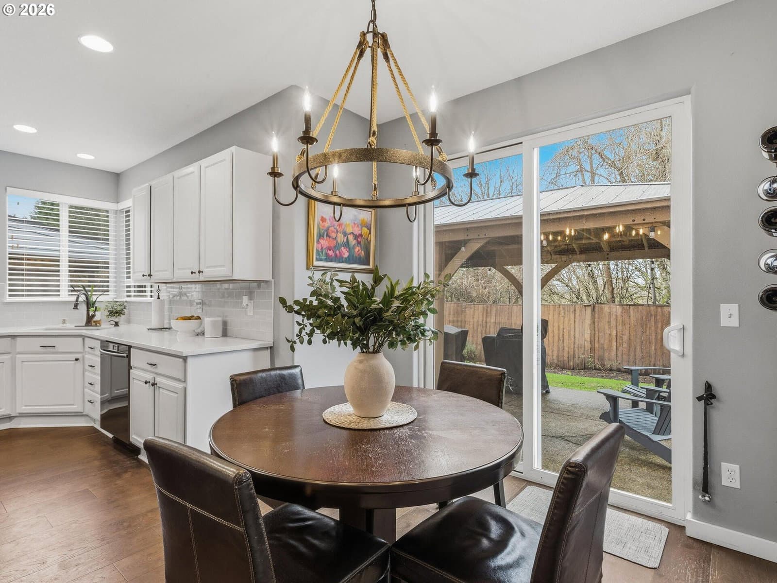 Interior Designer Remodeled Craftsman, Backing Peaceful Green Space, in Desirable Heron Ridge Estates! Feel like you are entering the pages of an interior design magazine, as you step into the grand entry, featuring the luxury engineered hardwood flooring & high ceilings of the family room with floor to ceiling stone fireplace with hand crafted wood mantle, and large windows, streaming natural light. Remodeled in 2016, with designs from a professional interior designer, this home boasts hand scraped engineered hardwood throughout the first level, custom designer paint colors, wood paneled ceiling in dining room, and luxury grade carpet. A chef and entertainers dream of a kitchen, complete with solid surface quartz countertops, pantry, abundant cabinet and counter space, large eat-in kitchen island, stainless steel appliances, electric range, and undermount farm sink, with windows overlooking the meticulously manicured backyard. Dining nook with sliders, leading to covered pergola patio. Full bath on the main with quartz countertops, tub, and shower, and full bedroom, perfect for dual living, guests, or a bonus room. Living room with engineered hardwood floors, ceiling fan, and large windows framing the back yard and secluded green space. Rought iron staircase, with upgraded carpet, newly stretched and professionally cleaned, leads to oversized halls with a walk in storage closet, and separate large linen closet for optimal storage. Sanctuary primary suite features views of the green space, oversized walk-in closet, and ensuite full bathroom, complete with large soaking tub, separate shower, and double sinks. Three additional bedrooms and utility room upstairs. Extra wide hallways overlook the grandeur of the large stone fireplace and soaring ceilings. Back yard with covered pergola patio, storage shed, immaculately landscaped grounds, and hot tub. New roof, exterior paint, and meticulous upkeep make this a completely move in ready stunner! Open Sat, 2/14, 11-1.