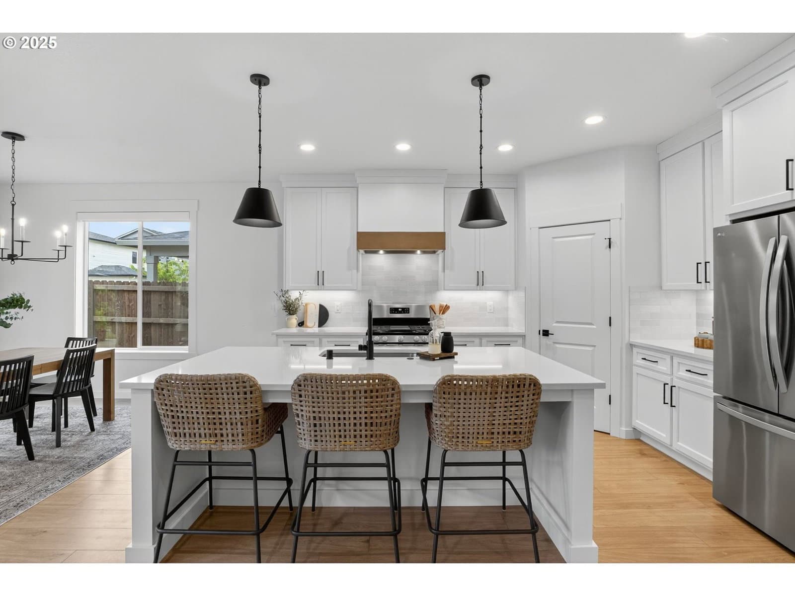 Multiple offers received. This house is pure perfection! Don't miss it! The pictures are great but it's even better in person! Custom built by award-winning Generations NW, it's a one level beauty loaded with upgrades. All you have to do is unpack and enjoy! The heart of the home is the great room, and this one delivers: the kitchen has a huge island with eating bar, quartz counters, stainless steel appliances, pantry big enough to stock up, plus pendant and under-cabinet lighting. The living room is modern, with a custom plaster fireplace, built-in cabinets, and floating shelves that look straight out of a designer magazine. Wide-plank floors flow, tying it all together with style. The primary suite is set apart from the other bedrooms for privacy, and comes with a motorized blackout shade for ultimate comfort and convenience. Step outside to your oversized covered patio and private backyard oasis, designed for maximum peace and quiet. Added Bonus: miles of walking trails just outside your door!
