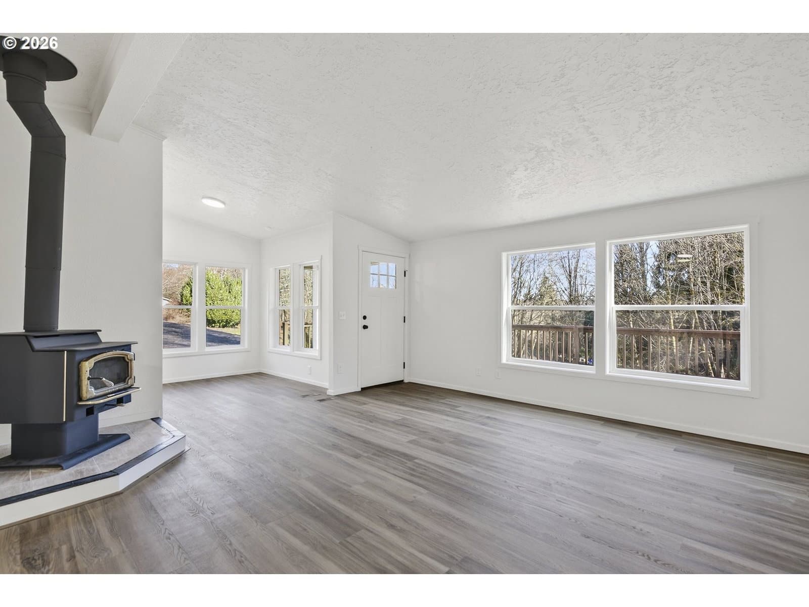 Tucked away in a quiet rural setting just outside of town, this fully renovated 3-bedroom, 2-bath home offers privacy, space, and a fresh start on over 2.5 acres. The interior has been completely refreshed and feels clean, bright, and welcoming, featuring new vinyl windows, sleek laminate flooring, and fresh carpet throughout. The open living area is centered around a cozy wood stove and flows easily for everyday living.The kitchen has been thoughtfully updated with quartz countertops, soft-close shaker cabinets, and stainless steel appliances, combining modern style with functionality. The layout is simple and comfortable, offering well-designed living spaces throughout the home. Major updates include a new roof, a brand-new septic system, and a newly built deck, providing peace of mind and added outdoor living space. Outside, the property features a medium-sized shop and an additional work shed, along with open land and wooded surroundings that create a peaceful, private setting. A rare opportunity to own a truly move-in-ready home on private acreage—seize it while it lasts.