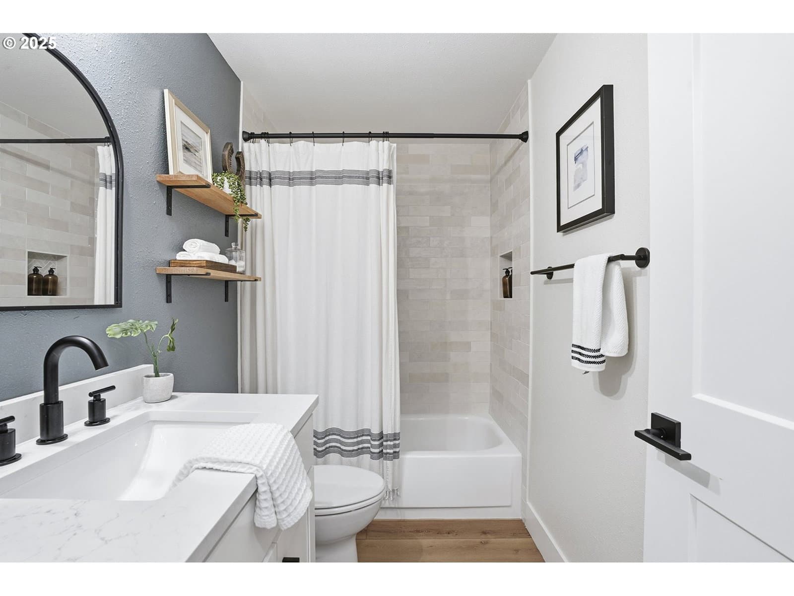 Remodeled Single Level Living in Tualatin! Move right in & enjoy this completely dialed home! Dream kitchen w/Quartz counters, eating bar, gas range, & SS appliances. Open yet cozy living room features wood-burning fireplace. Primary suite w/remodeled bathroom & backyard views. Spacious fenced yard w/covered patio. Convenient location w/easy access to downtown Tualatin & I-5. Highly rated Tualatin schools!