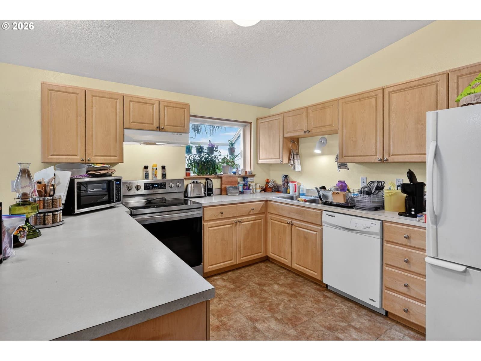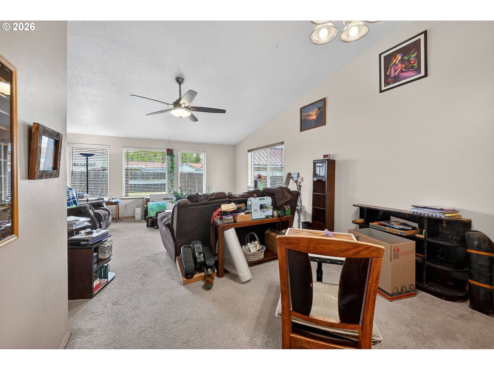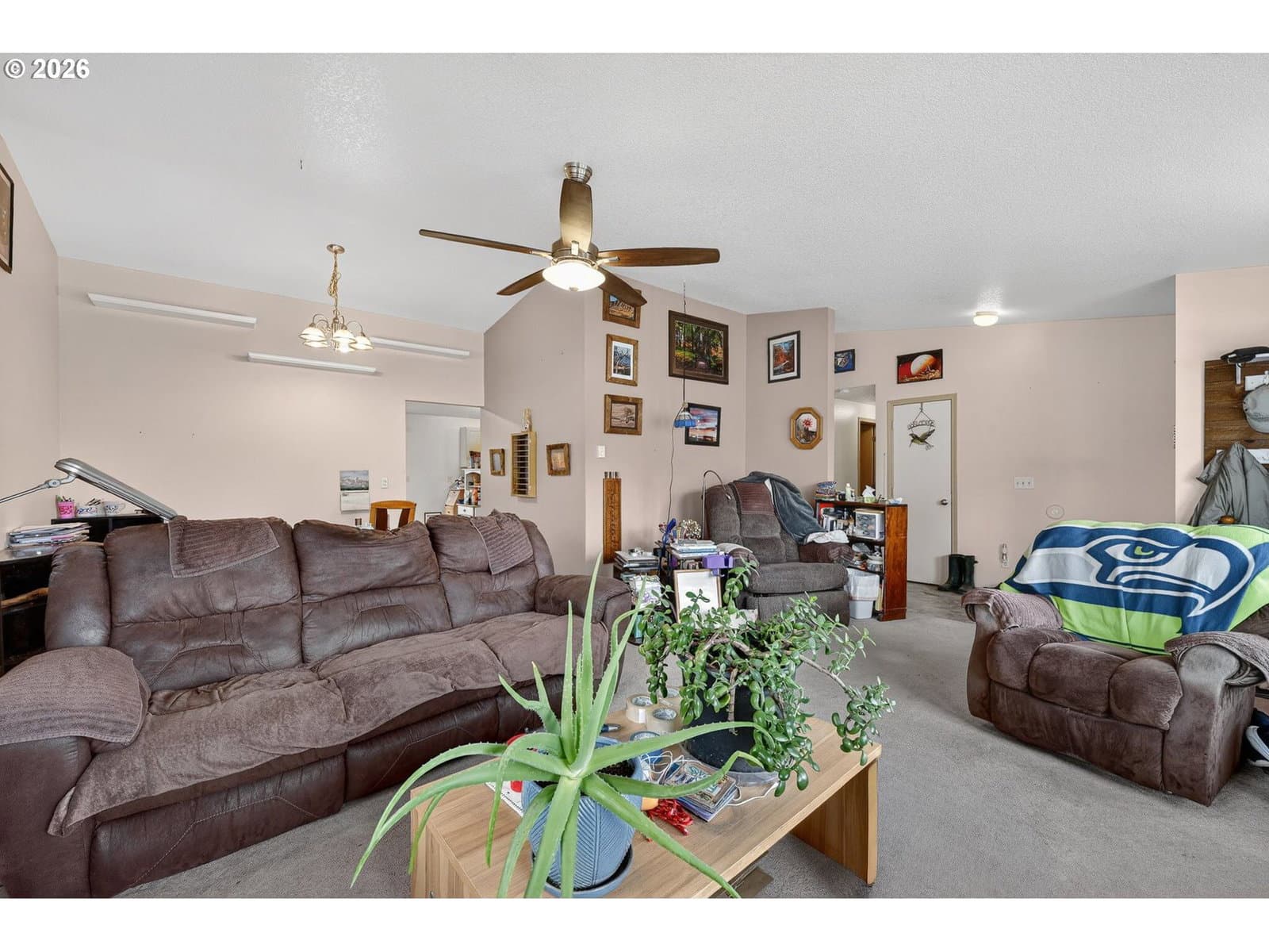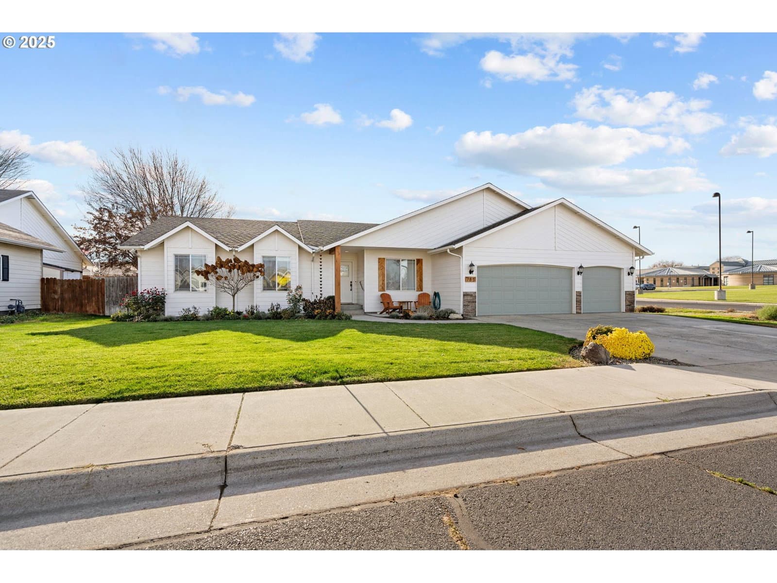 This beautifully maintained one-level home offers comfort, space, and stunning surroundings, featuring 3 bedrooms and 2 bathrooms with an easy, accessible layout ideal for a variety of lifestyles. High vaulted ceilings and generously sized rooms create an open and airy feel throughout the home.The living room is warm and inviting with wall-to-wall carpet, a ceiling fan, and plenty of space to relax or entertain. The dining area features sliding doors that bring in natural light and provide seamless access to the outdoors. The kitchen is both functional and welcoming, complete with a built-in dishwasher, pantry, and ample workspace. All bedrooms offer wall-to-wall carpet, including the spacious primary suite, which features a ceiling fan and a private ensuite bathroom for added comfort.Step outside to enjoy the beautiful yard, complete with a tool shed and plenty of space for gardening or outdoor activities. An attached garage adds convenience, while the home’s location on the edge of town provides peaceful living with amazing, unobstructed mountain views—protected by the nearby school and football field. With easy access and a layout suited for limited mobility, this home combines practicality, charm, and a truly special setting.