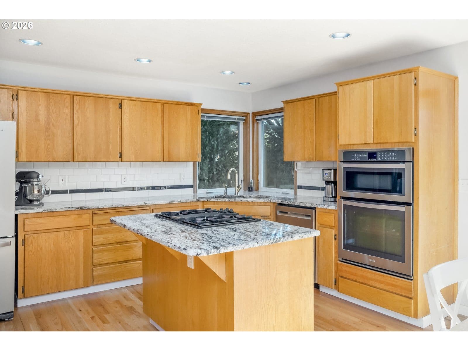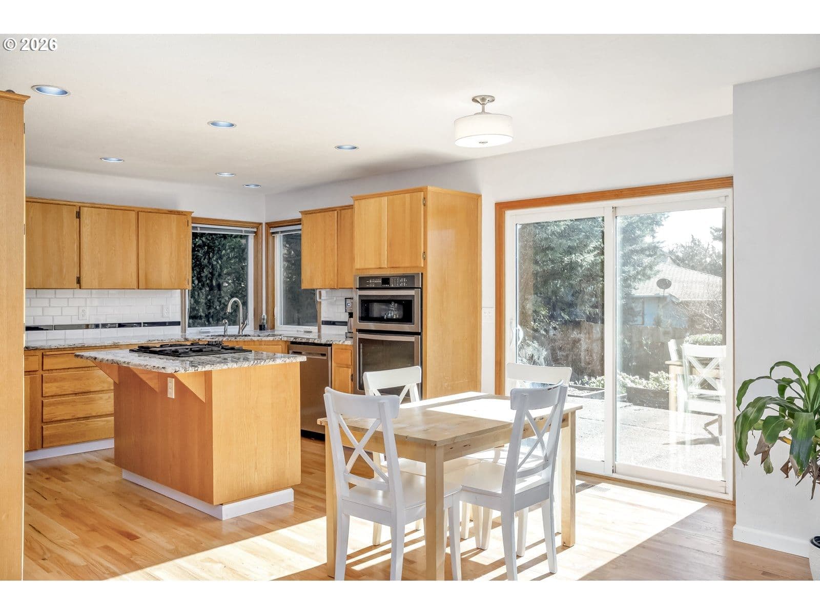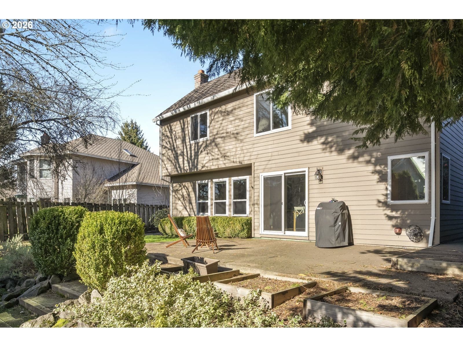 Welcome to this charming two-story well-maintained home offering timeless curb appeal and a bright inviting interior. Nestled on a quiet street surrounded by mature trees, this home offers flexibility for both everyday living and entertaining.Beautiful hardwood floors, vaulted ceilings, a formal dining room, family room, and a gas fireplace sure to keep you cozy throughout the PNW winters. Whip up your favorite new recipe in the sun-filled kitchen--the highlight of the home featuring granite and quartz countertops, stainless steel gas appliances, and ample workspace for cooking and gathering. Upstairs you’ll find four bedrooms, including a large primary suite with vaulted ceilings, a relaxing soaking tub, and ample closet space with organizers for added convenience and functionality. The three additional bedrooms provide space for family, guests, or a home office.Step outside to a large private fenced backyard complete with a patio, raised garden beds, and a storage shed — perfect for outdoor gatherings, gardening, or peaceful evenings at home. With a 50-year composition roof, triple-pane windows, and a spacious two car garage, this move-in ready home offers comfort, efficiency, and style while close to shops and restaurants of Murrayhill and Progress Ridge. Welcome Home!